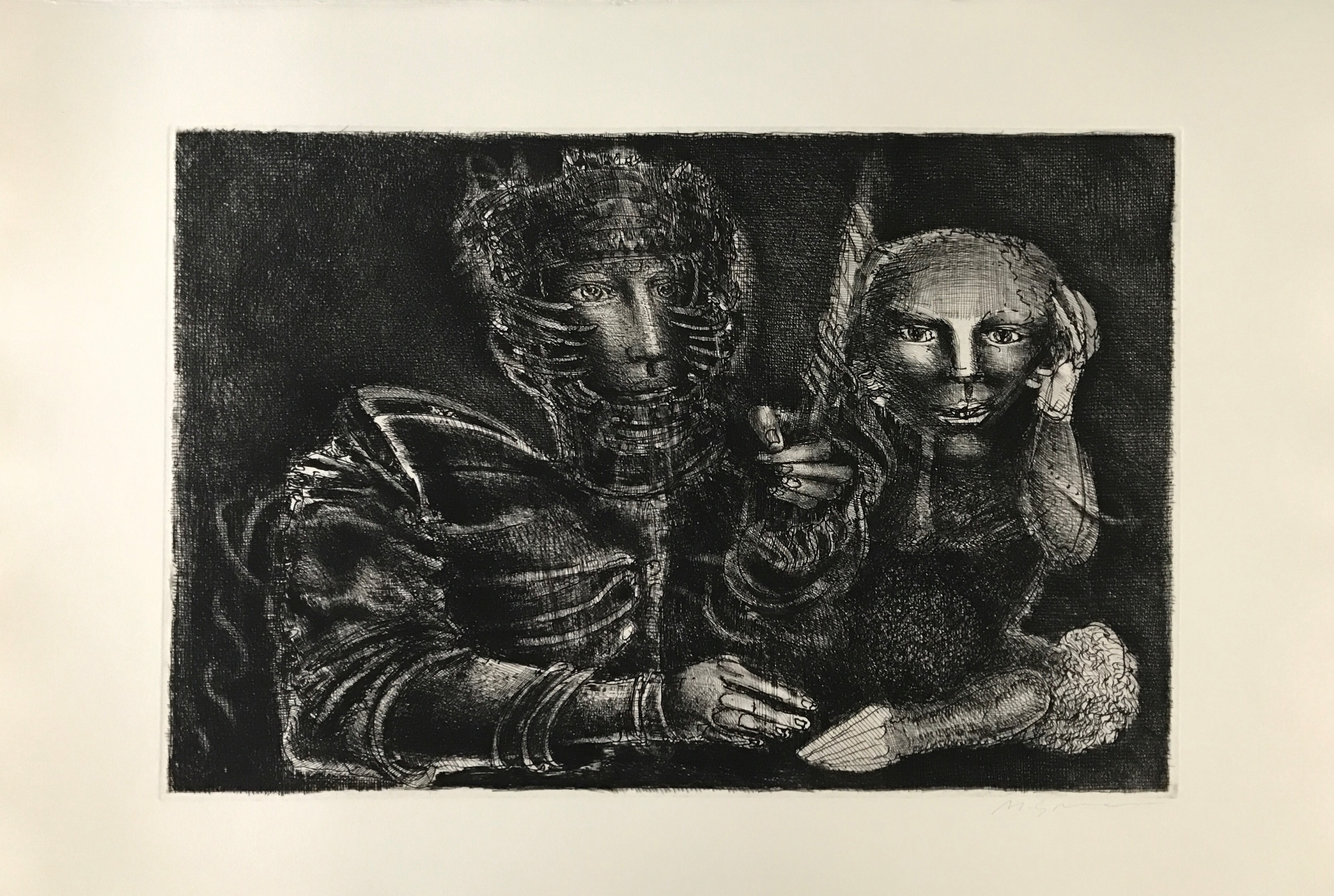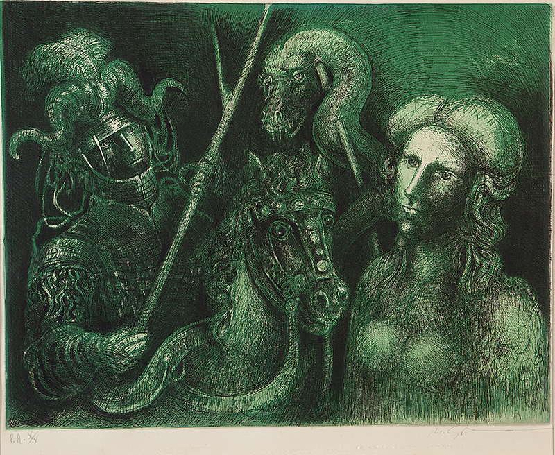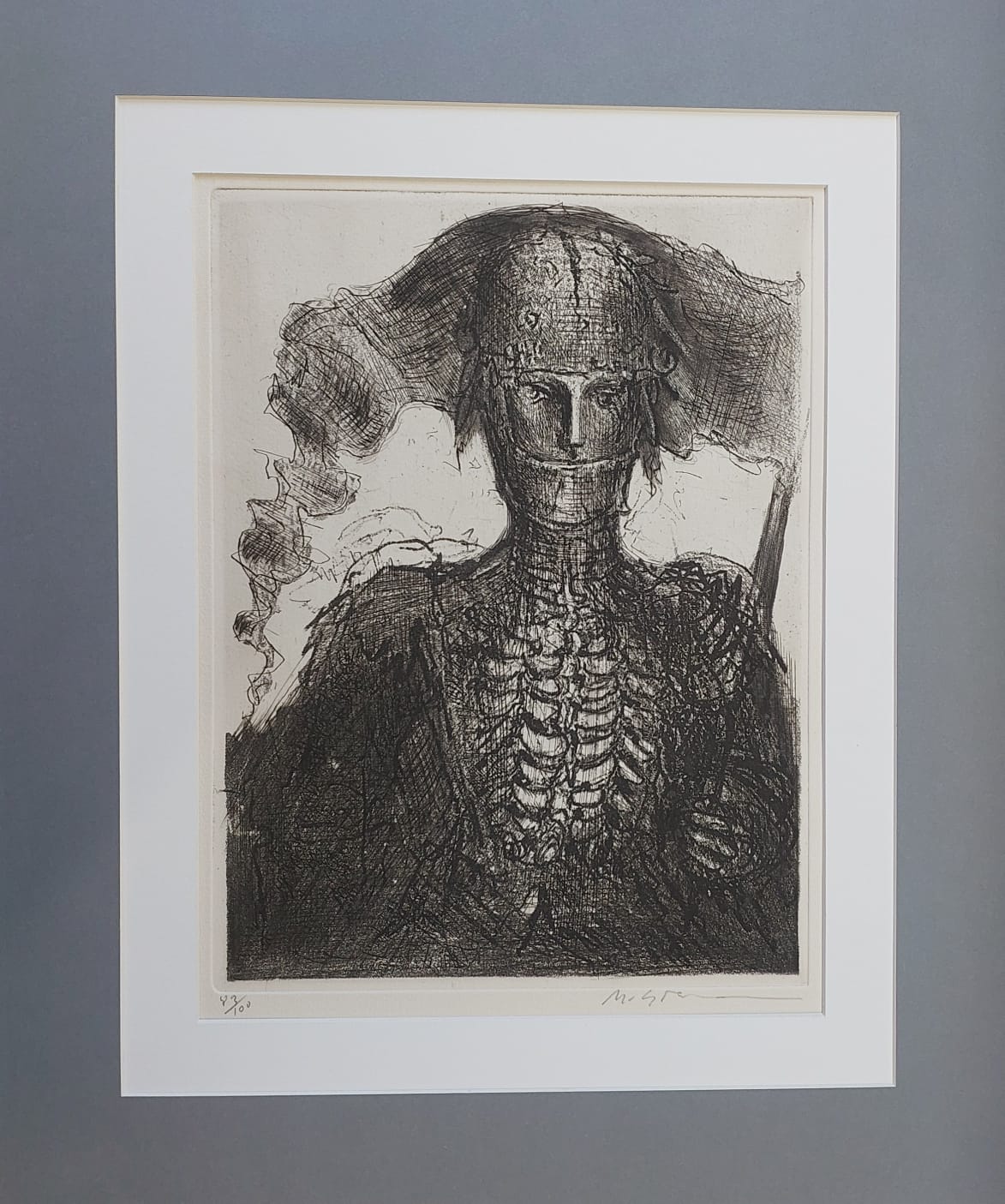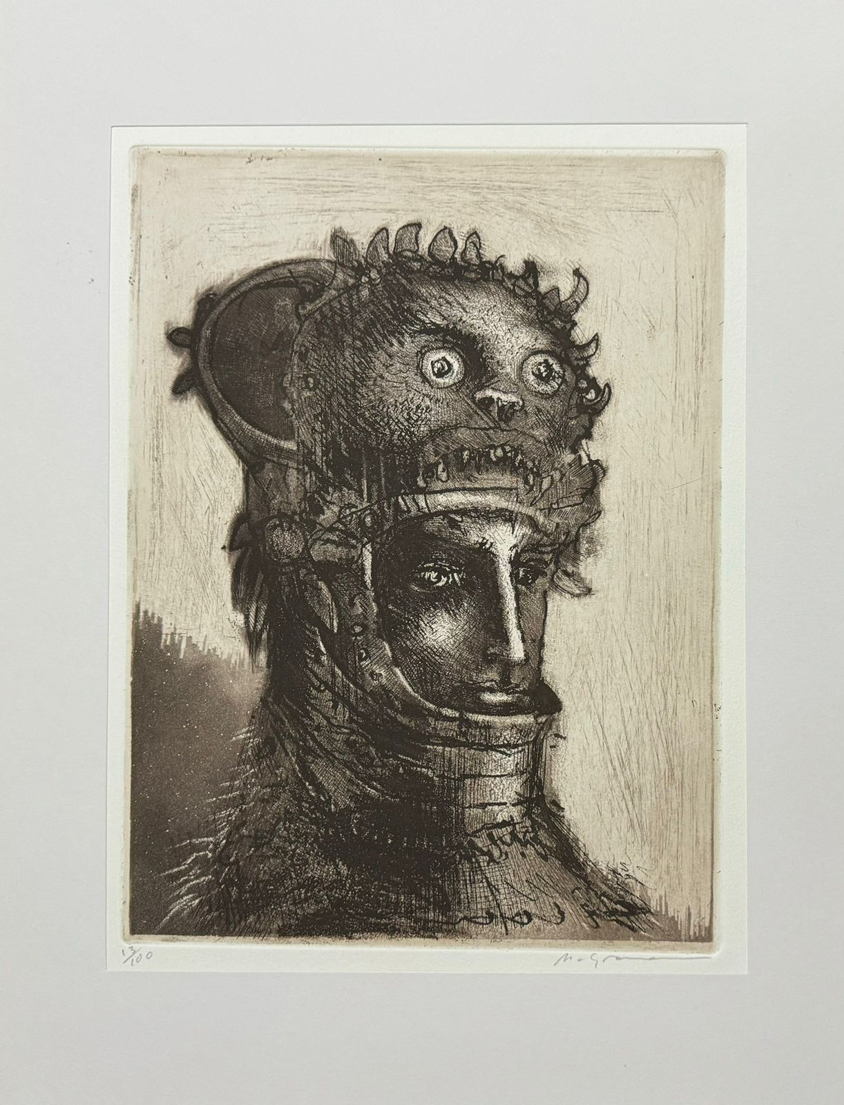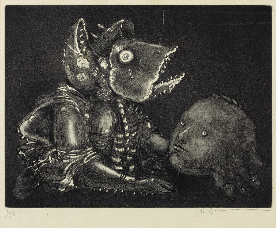 Marcelo Grassmann (1925–2013) – Figura. Gravura em metal, prova do artista (P.A.). Gravador, desenhista, ilustrador e professor brasileiro, referência central da gravura no Brasil, com formação técnica sólida e atuação como ilustrador da imprensa. Ass. CID. Dimensões: 42 × 32 cm.