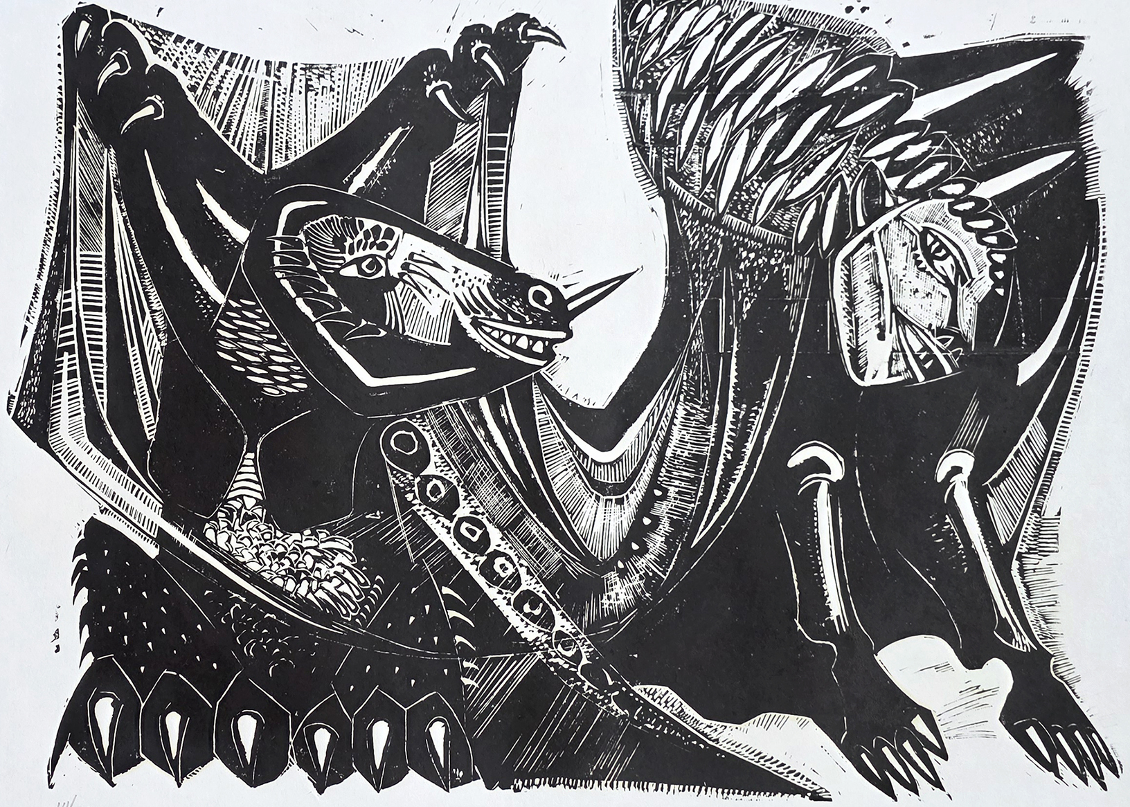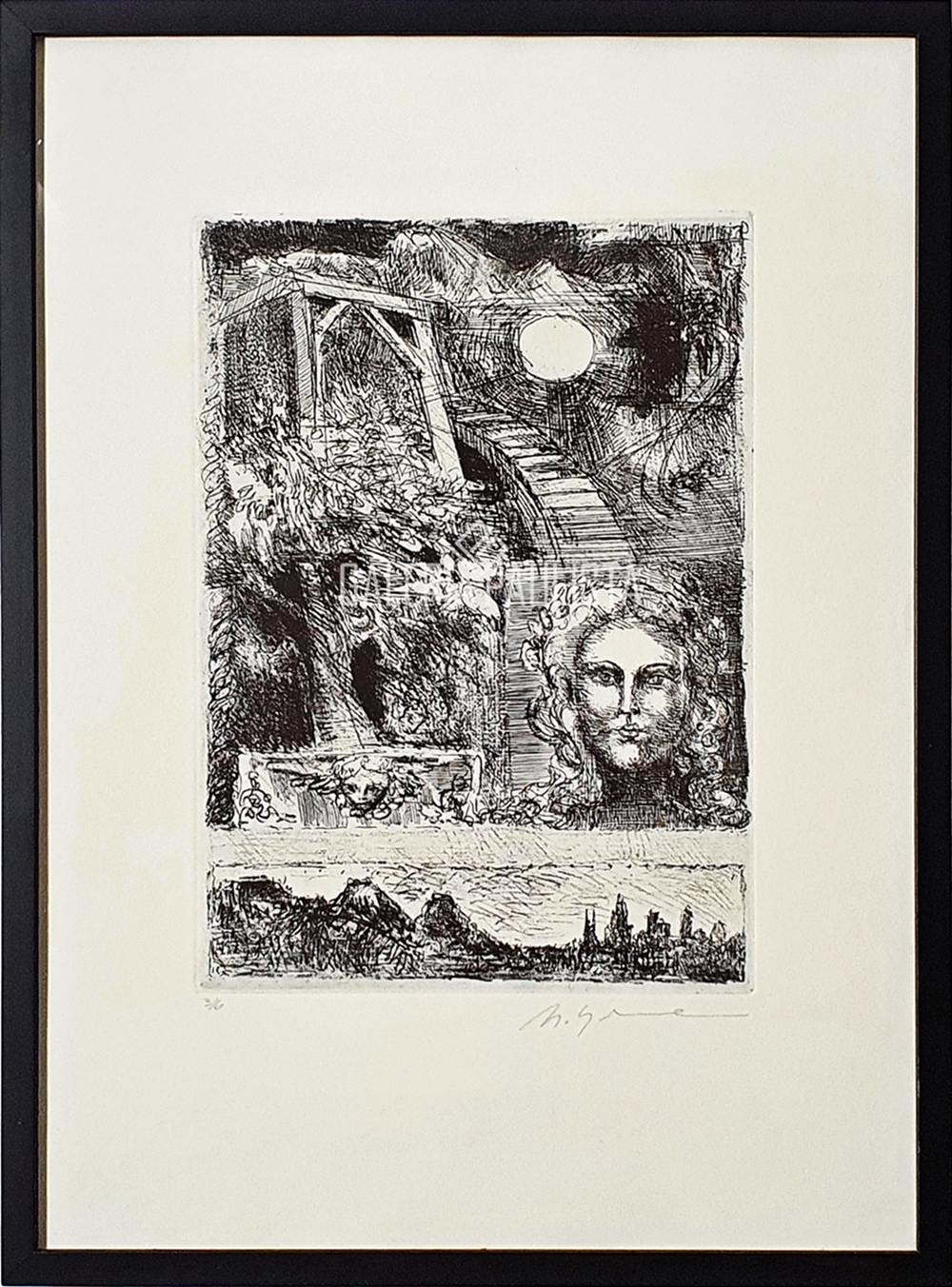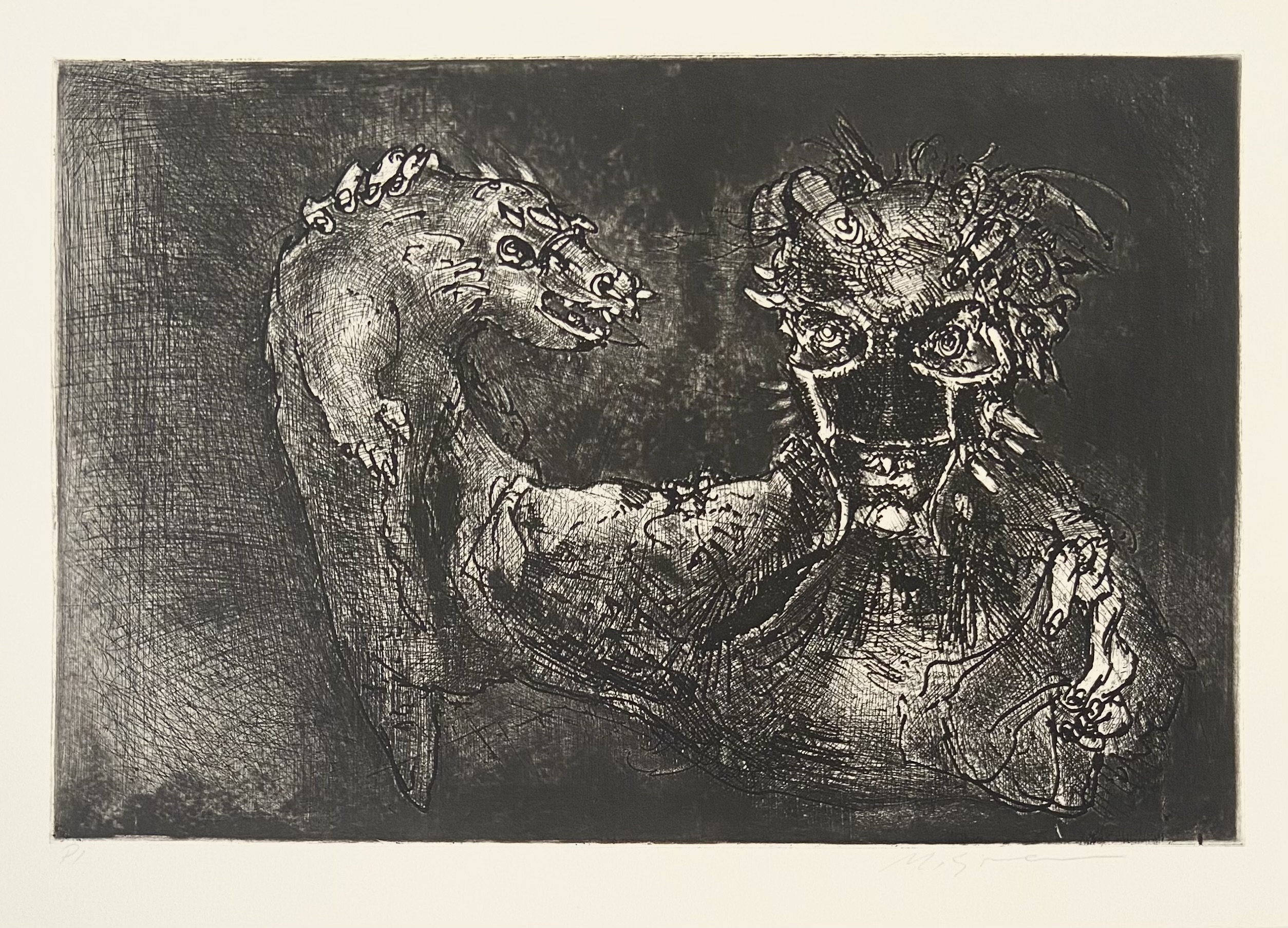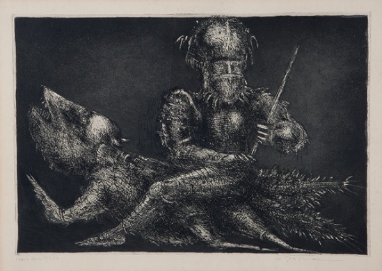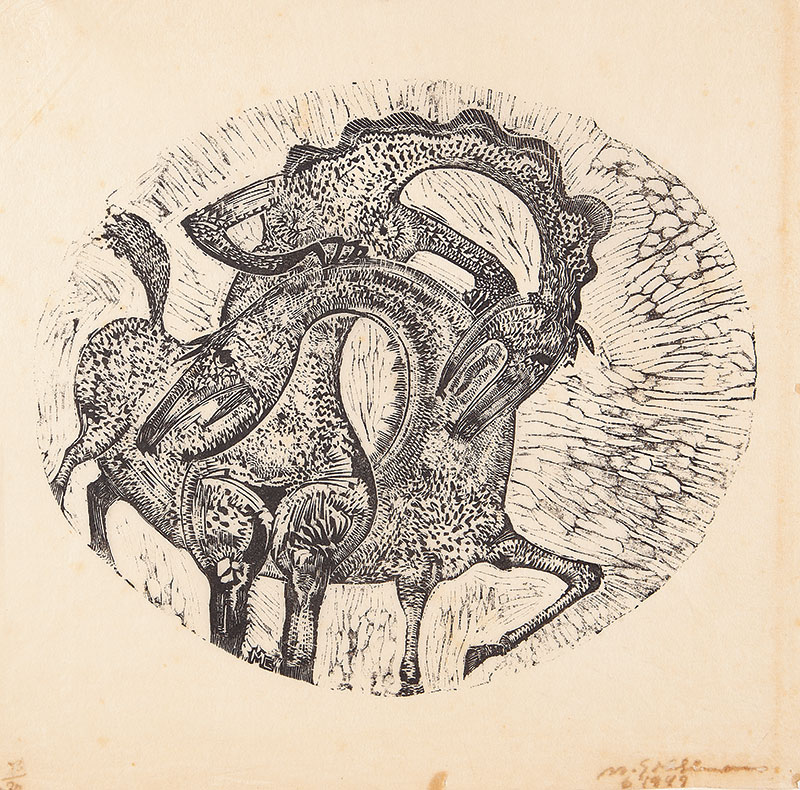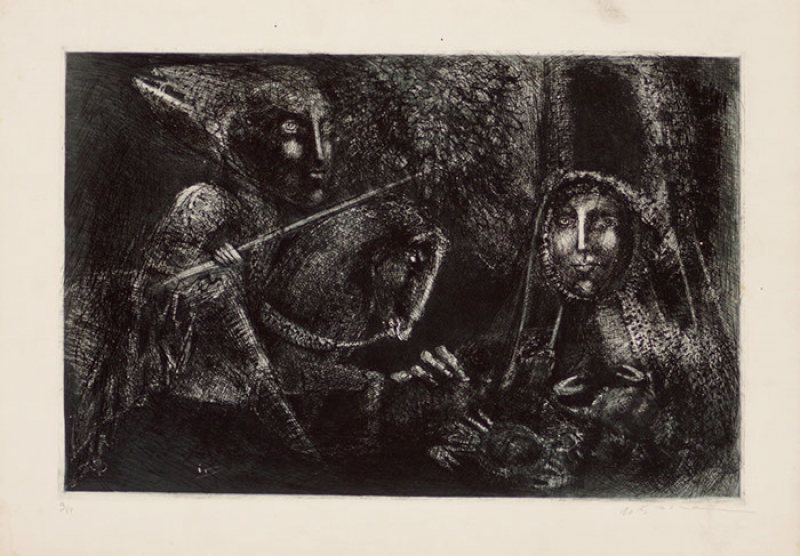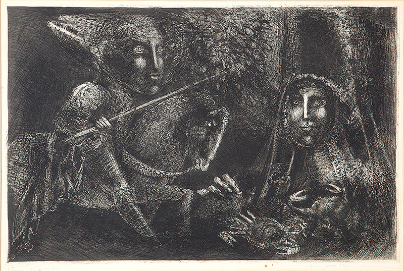 Marcelo Grassmann (1925–2013) – Figura. Gravura em metal, prova do artista (P.A.). Gravador, desenhista, ilustrador e professor brasileiro, referência central da gravura no Brasil, com formação técnica sólida e atuação como ilustrador da imprensa. Ass. CID. Dimensões: 42 × 32 cm.