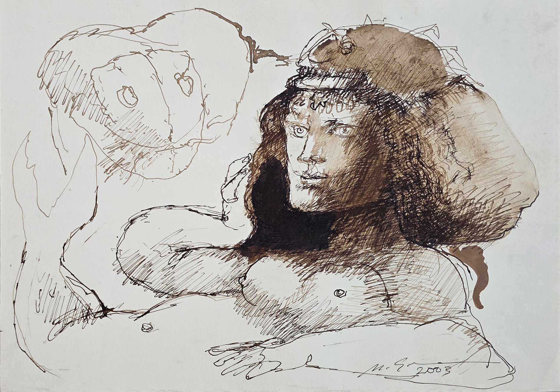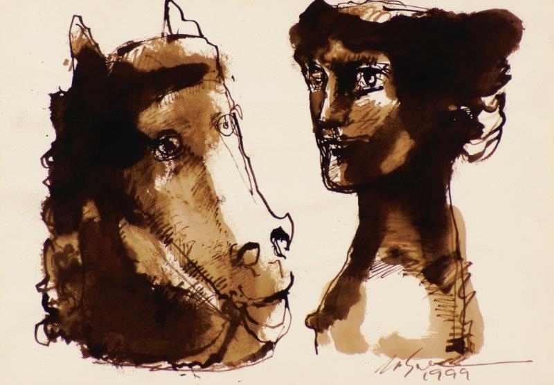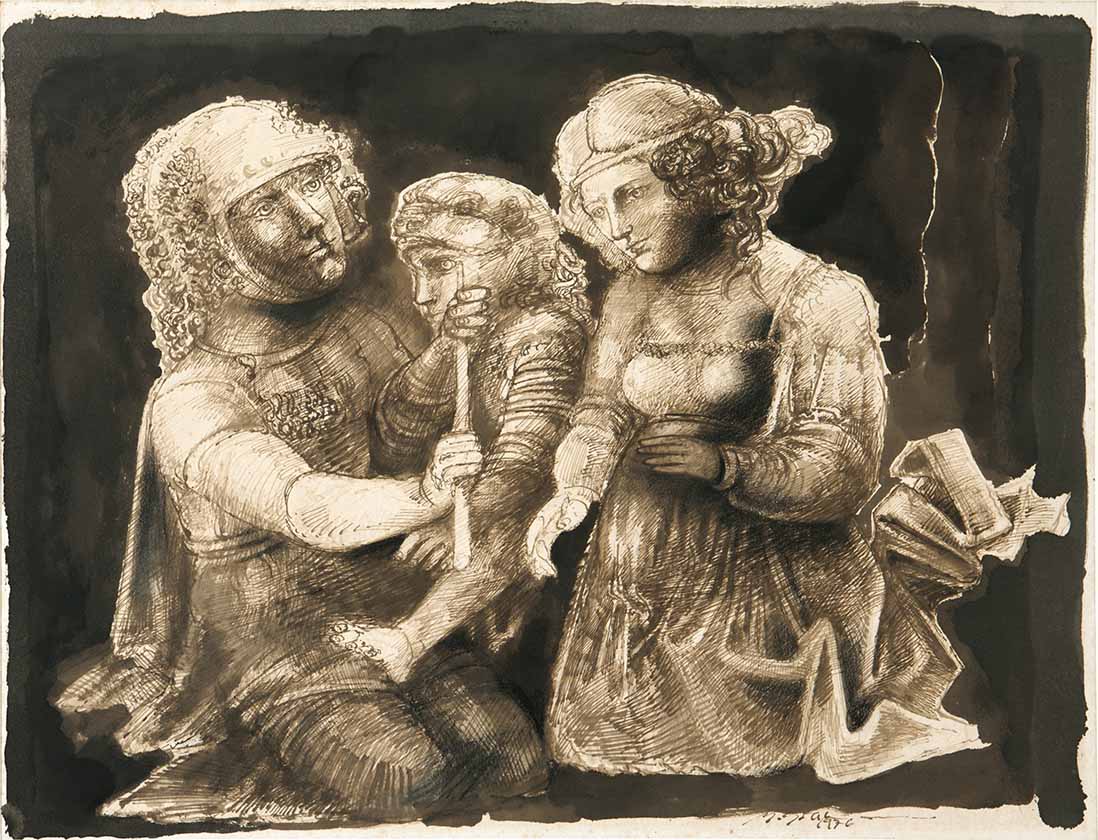 Marcelo Grassmann - Guerreiro. Nanquim e aguada sobre papel, 40x49,5 cm, 2000, A.C.I.D. Sem moldura