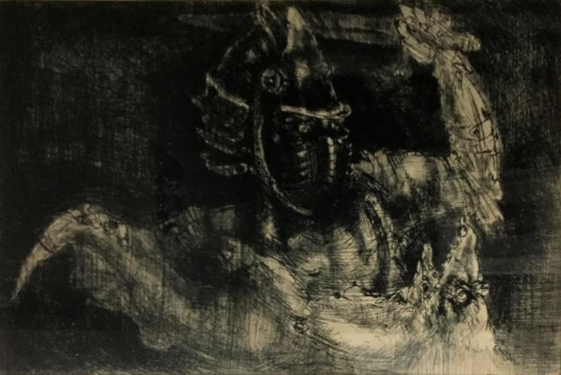 Marcelo Grassmann - Guerreiro. Nanquim, aguada e lápis de cera sobre papel, 35x50 cm, 2008, A.C.I.D. Sem moldura