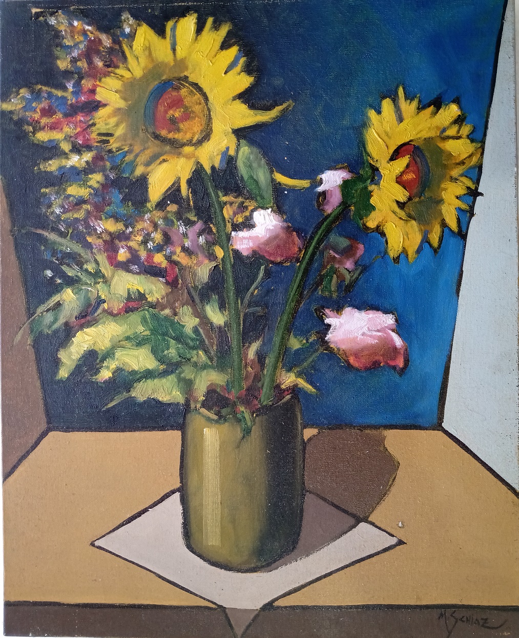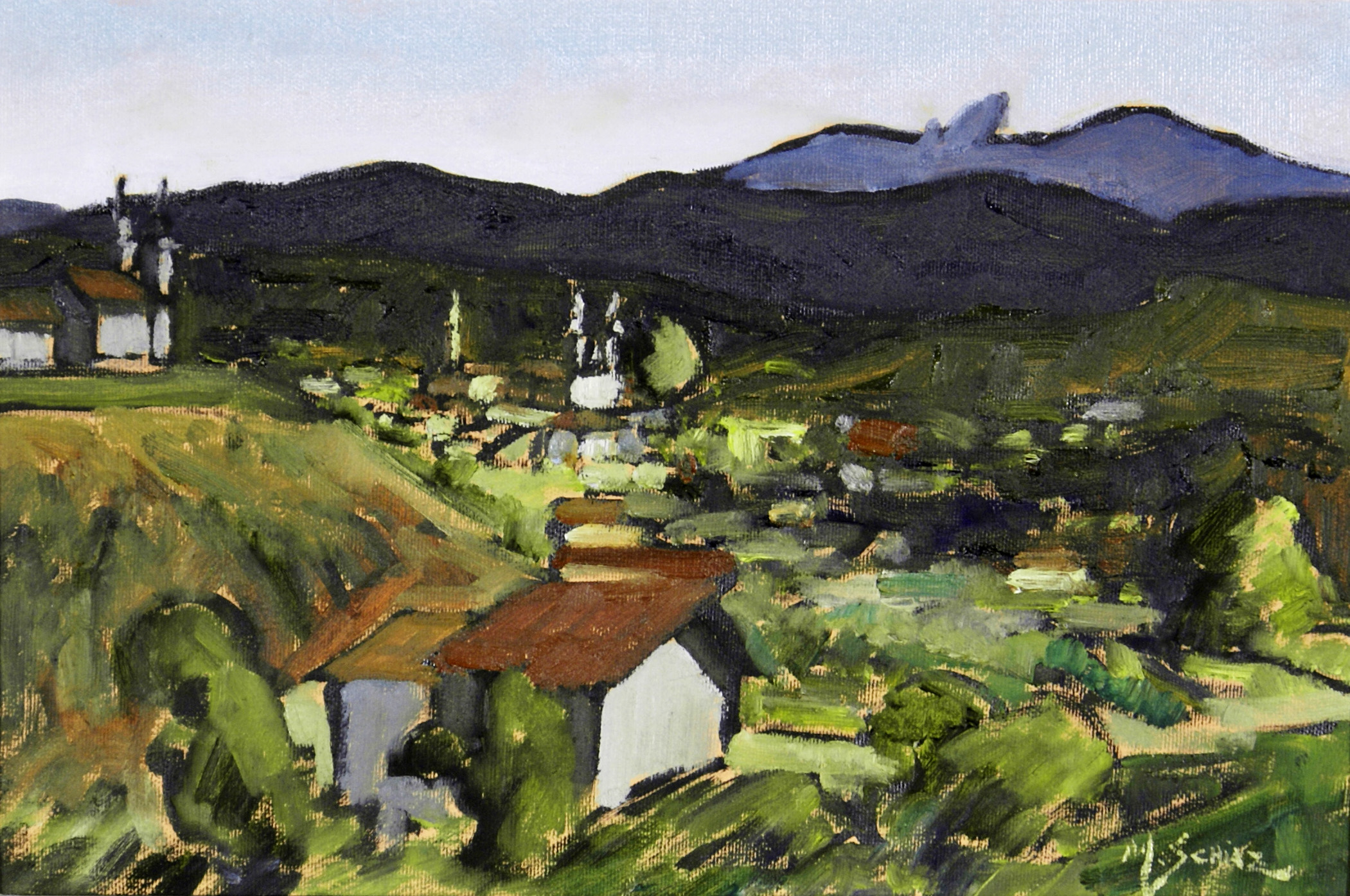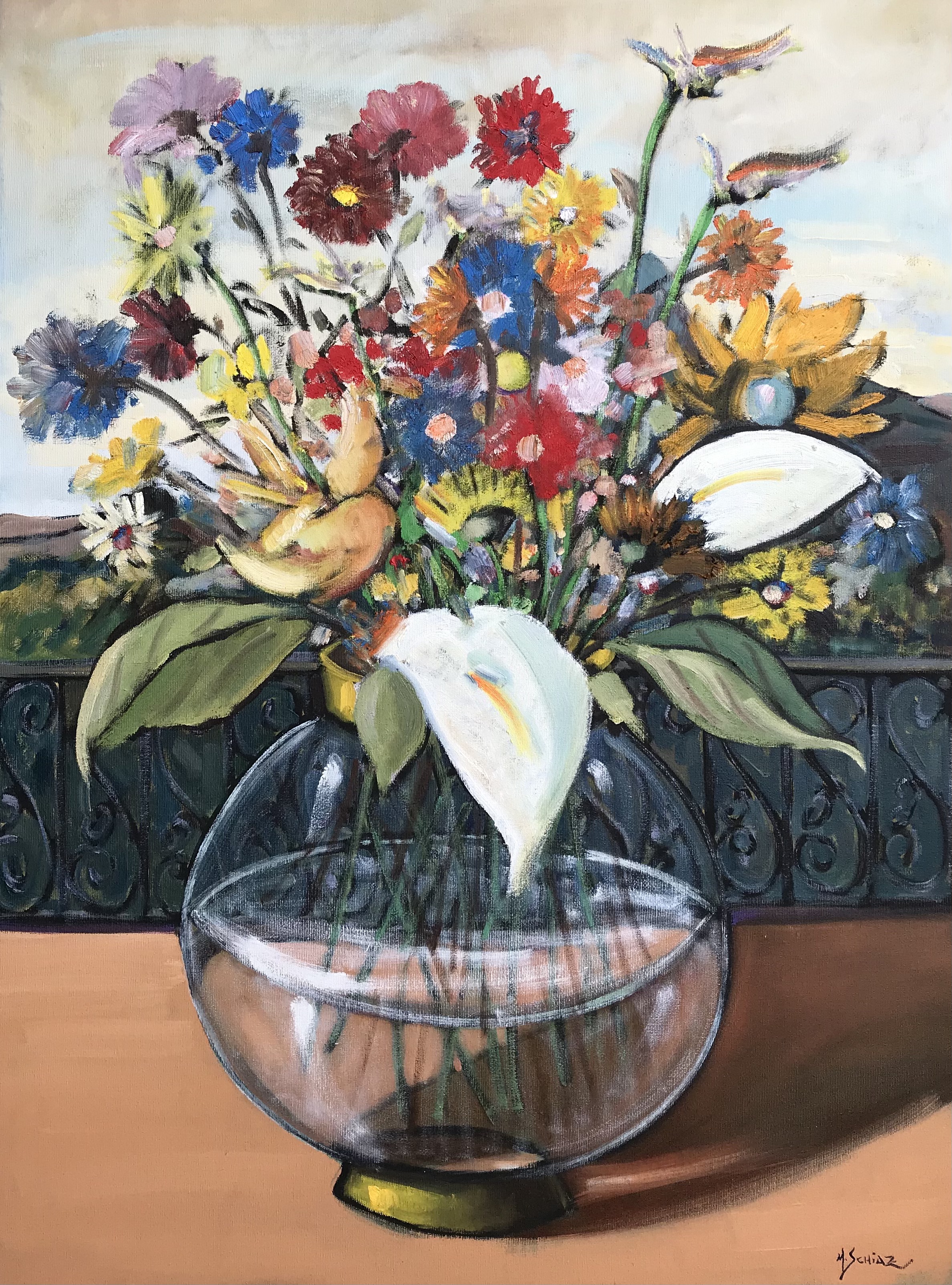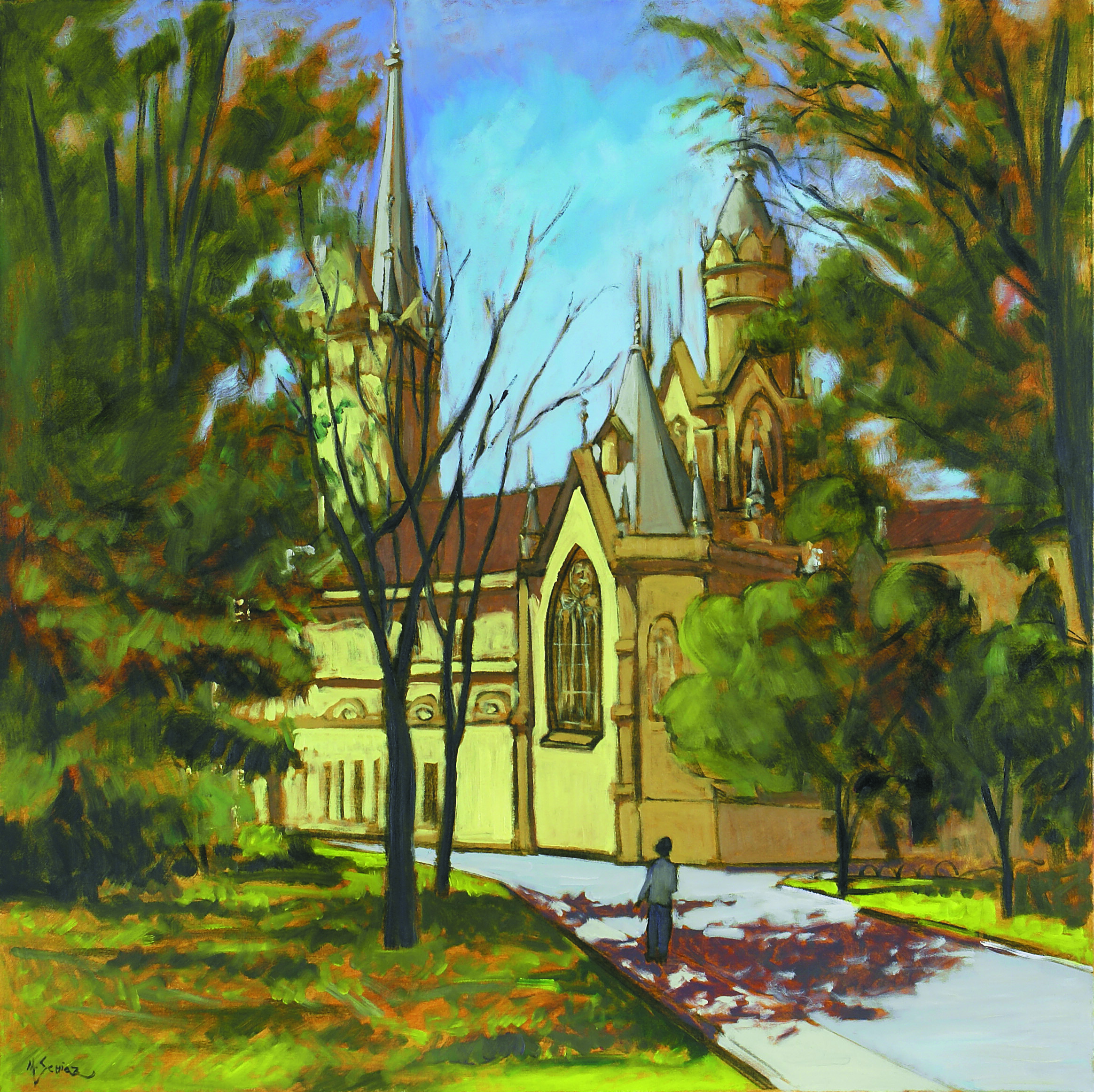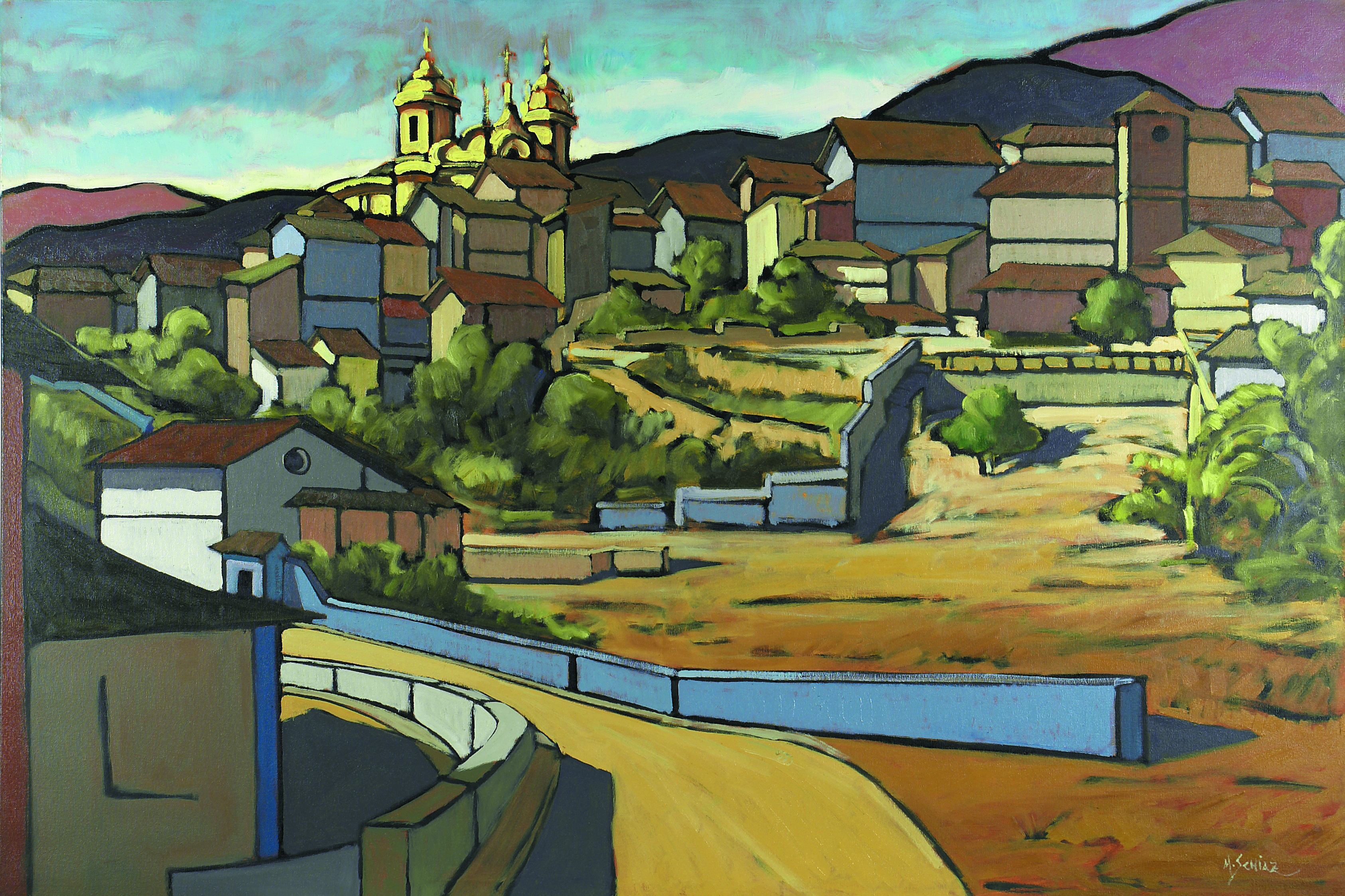 O tema mais presente nas suas obras são as paisagens. sempre viaja para as cidades históricas de Minas Gerais a fim de pintar suas velhas ruas e famosas igrejas. Outro tema recorrente na obra de Schiaz é a paisagem urbana, em que focaliza principalmente o centro de São Paulo e Rio de Janeiro.