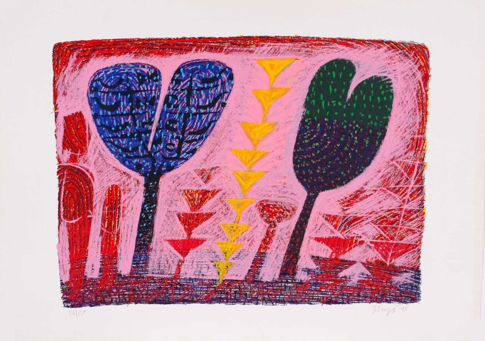 Composição – 72 x 101 cm – Gravura sem Moldura – Ass. Canto Inferior Direito e Dat. 1995 – Exemplar P.A - Bom estado