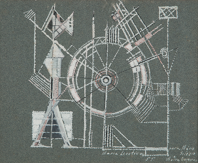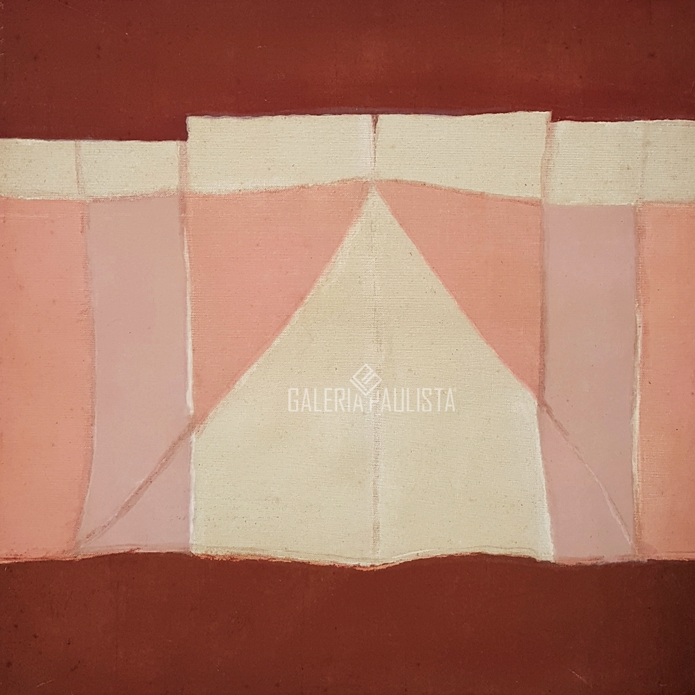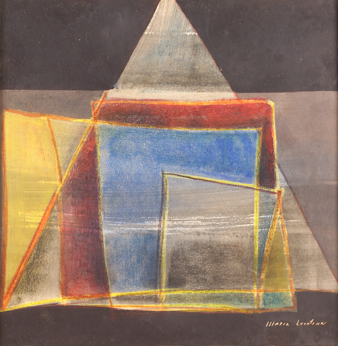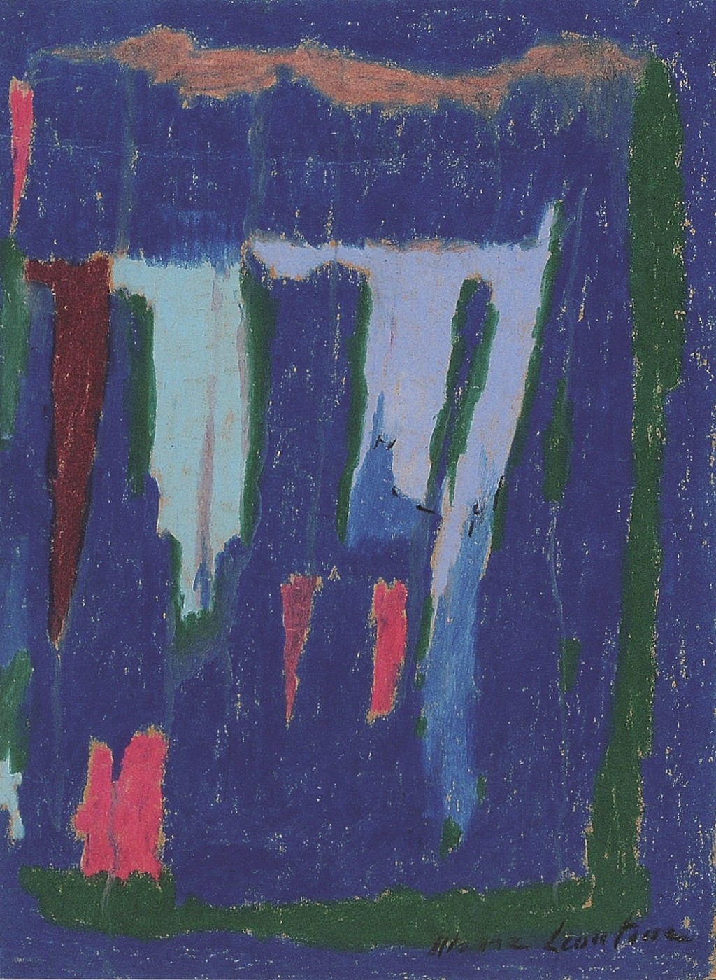 Maria Leontina - Estandarte, azul e rosa - déc. 1960 - Pastel oleoso sobre papel - Assinado canto inferior direito - 30 x 22 cm.