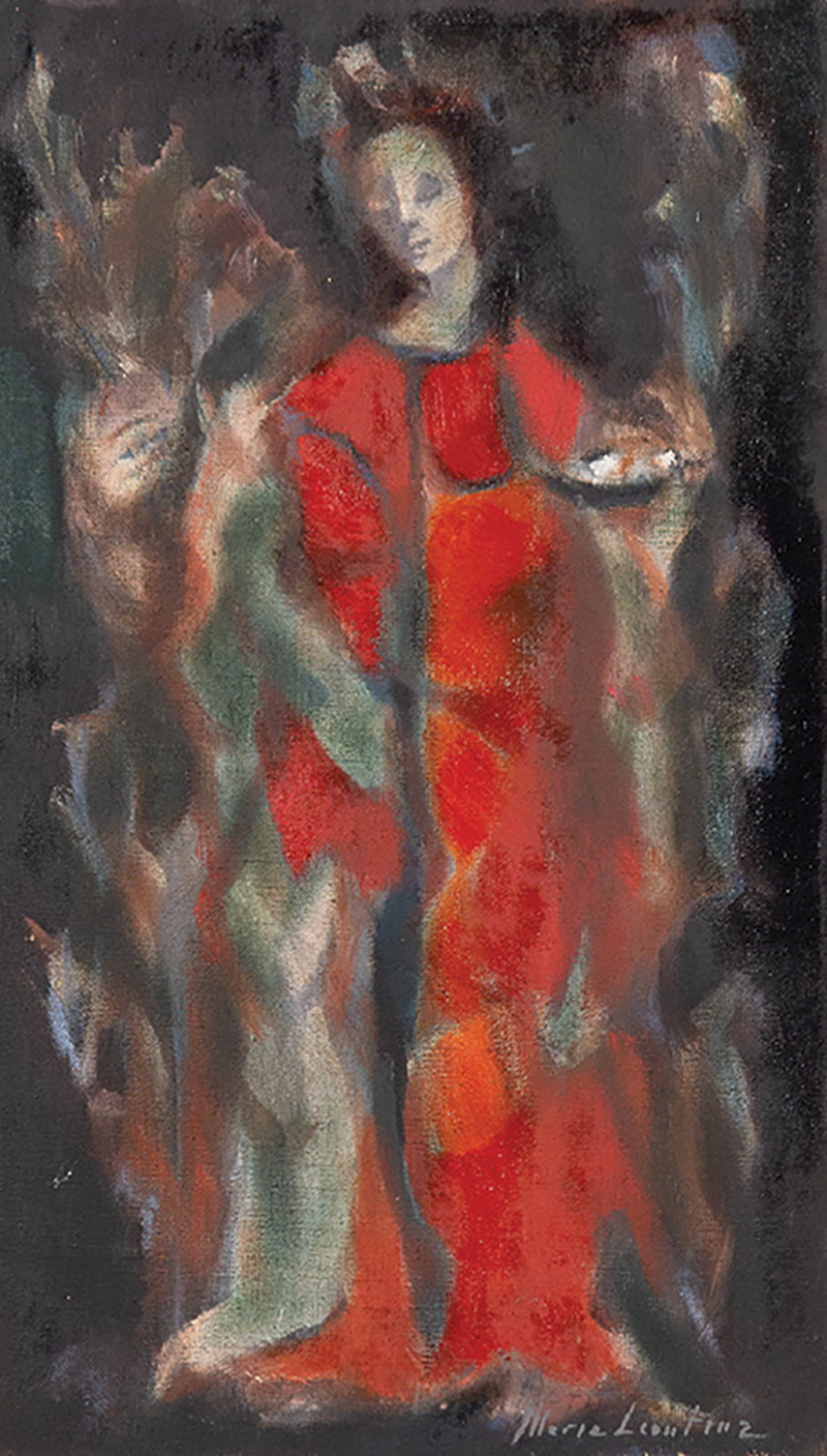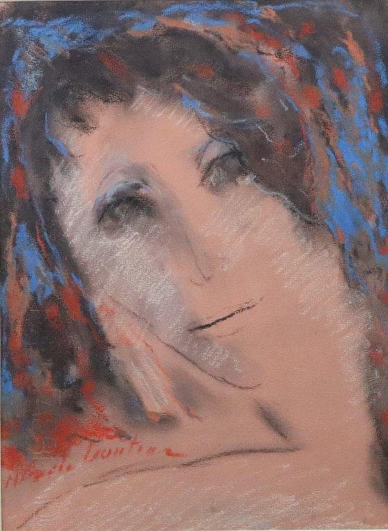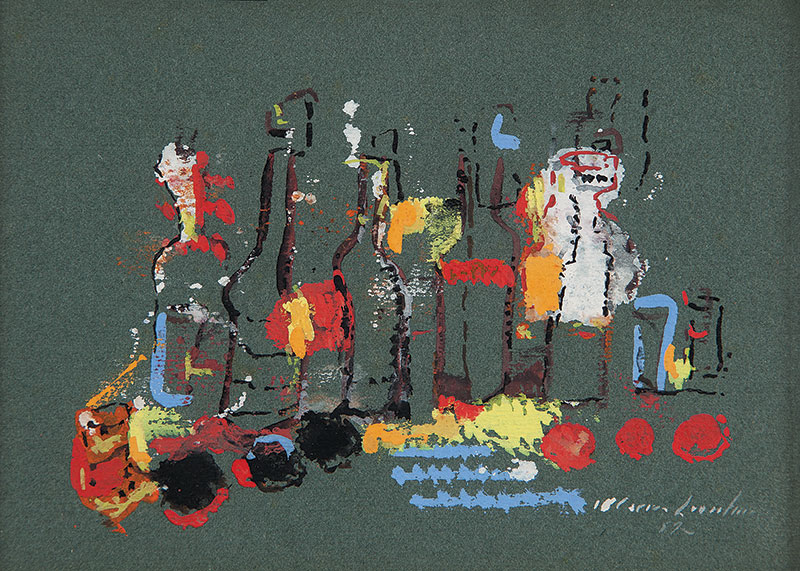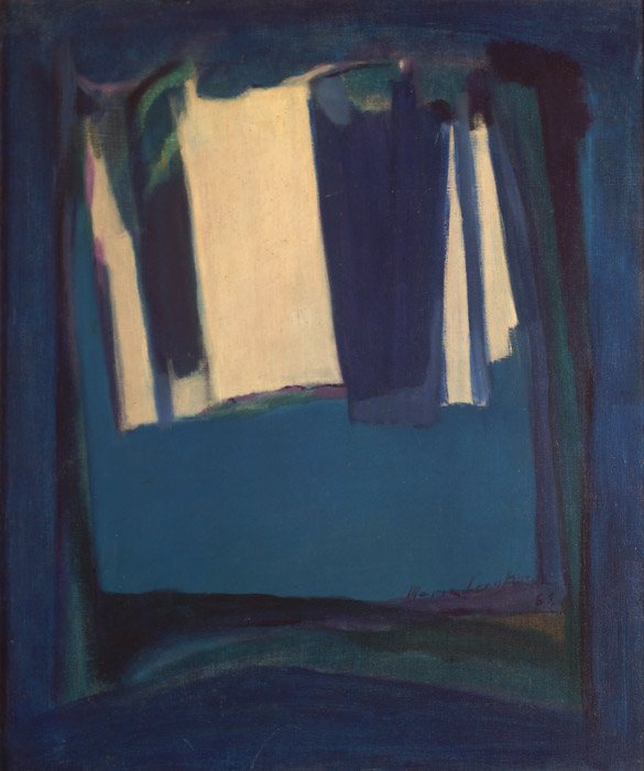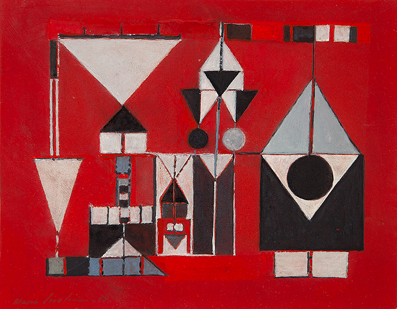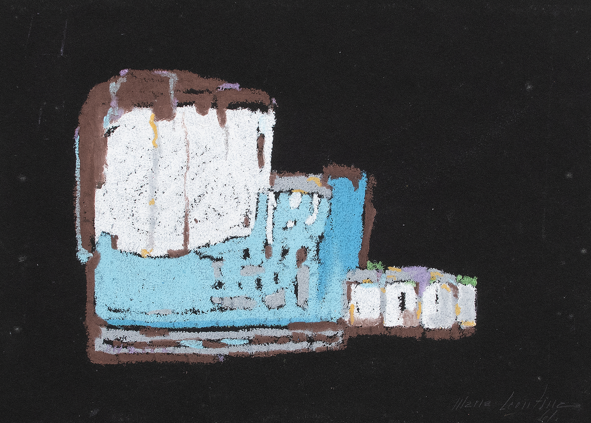 Maria Leontina - Estandarte, azul e rosa - déc. 1960 - Pastel oleoso sobre papel - Assinado canto inferior direito - 30 x 22 cm.