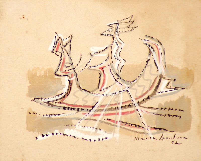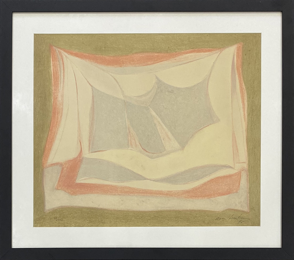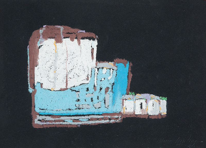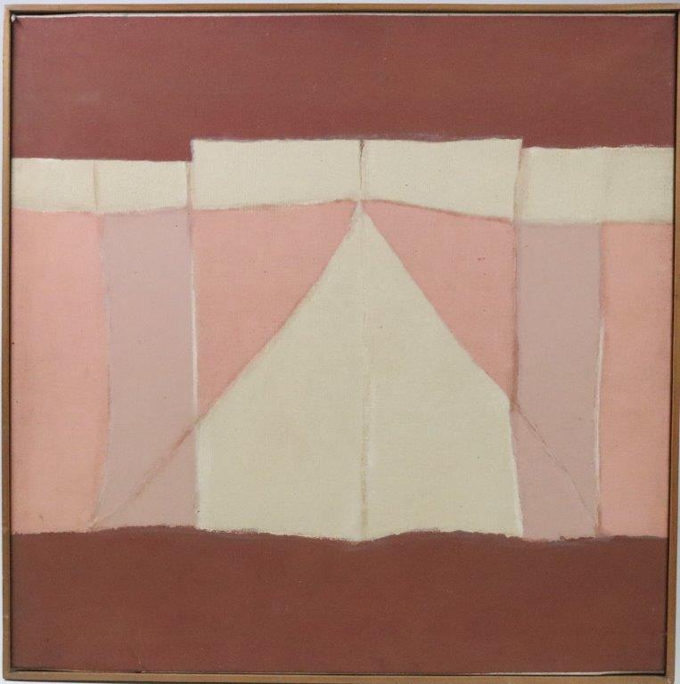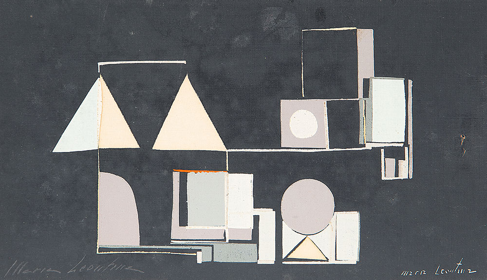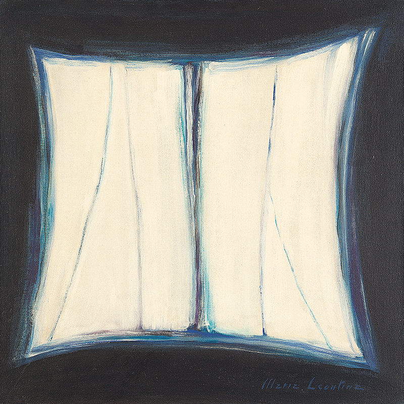Maria Leontina - Estandarte, azul e rosa - déc. 1960 - Pastel oleoso sobre papel - Assinado canto inferior direito - 30 x 22 cm.