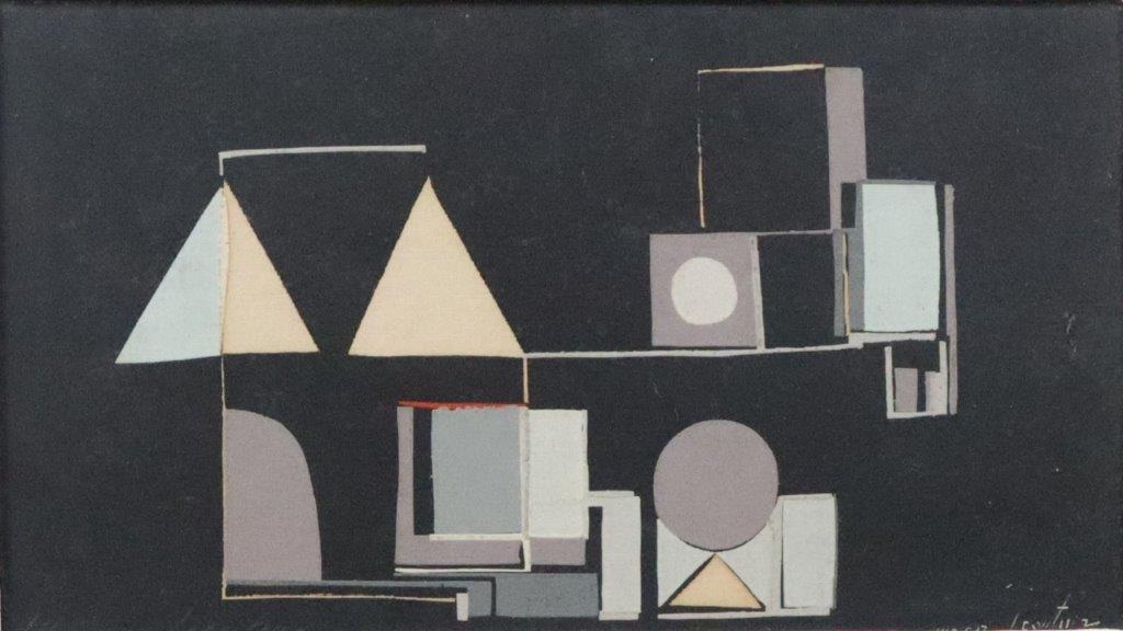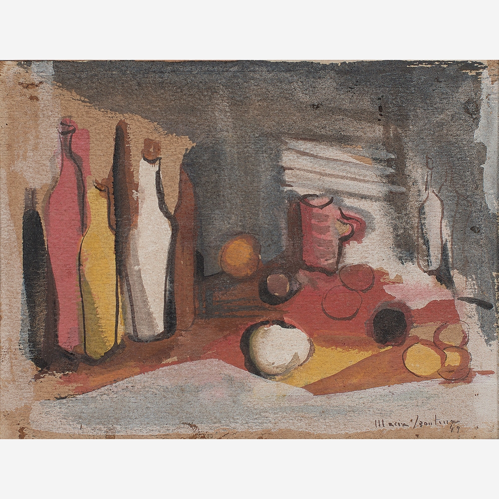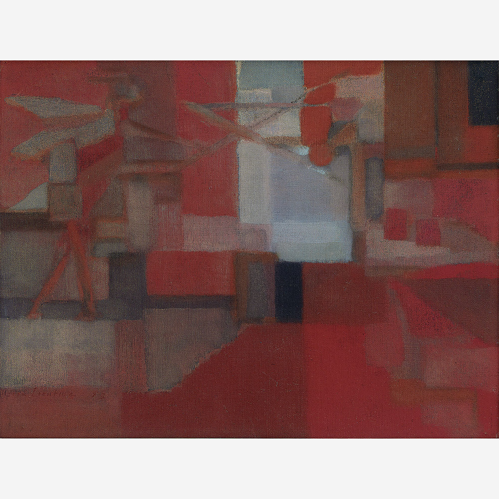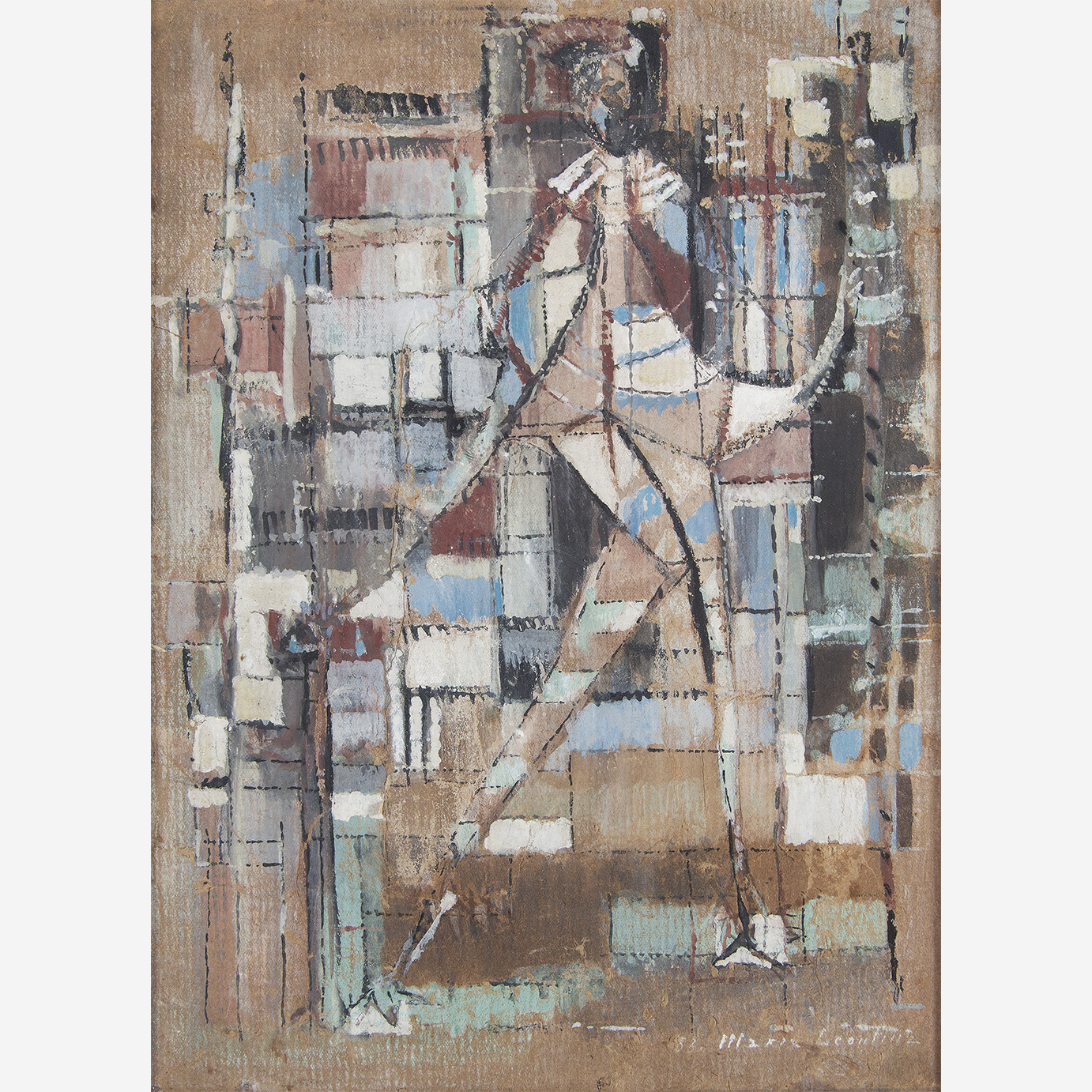 Maria Leontina - Estandarte, azul e rosa - déc. 1960 - Pastel oleoso sobre papel - Assinado canto inferior direito - 30 x 22 cm.