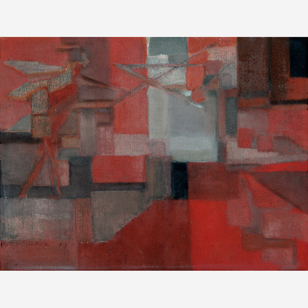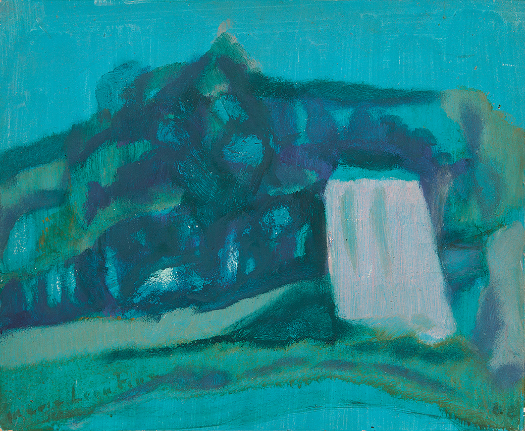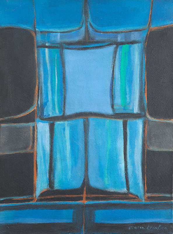 Maria Leontina - Estandarte, azul e rosa - déc. 1960 - Pastel oleoso sobre papel - Assinado canto inferior direito - 30 x 22 cm.