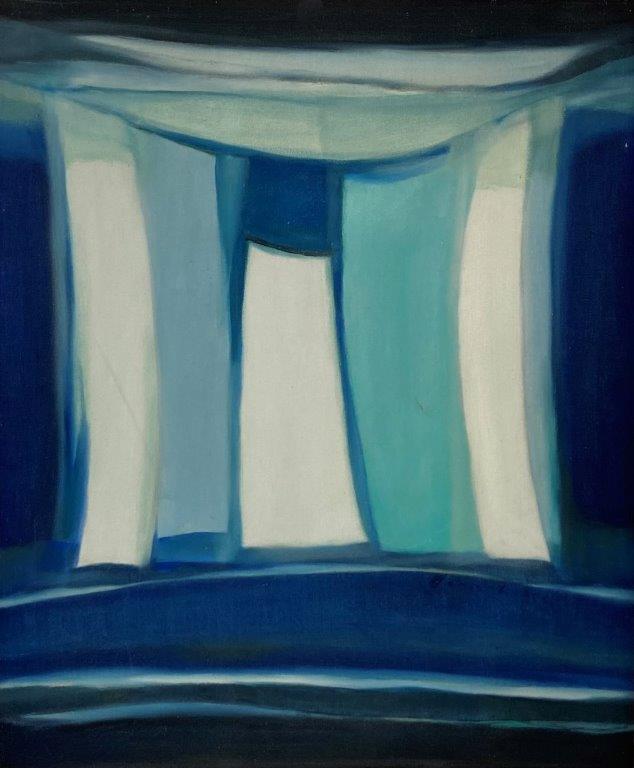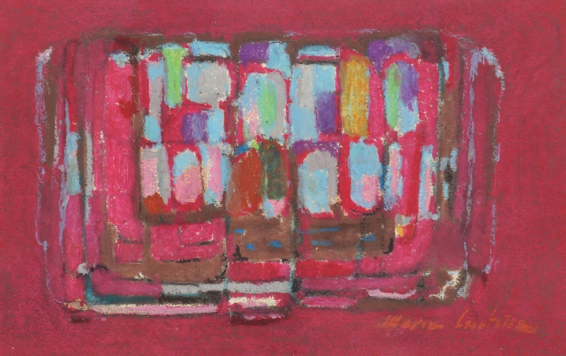 Maria Leontina - Estandarte, azul e rosa - déc. 1960 - Pastel oleoso sobre papel - Assinado canto inferior direito - 30 x 22 cm.