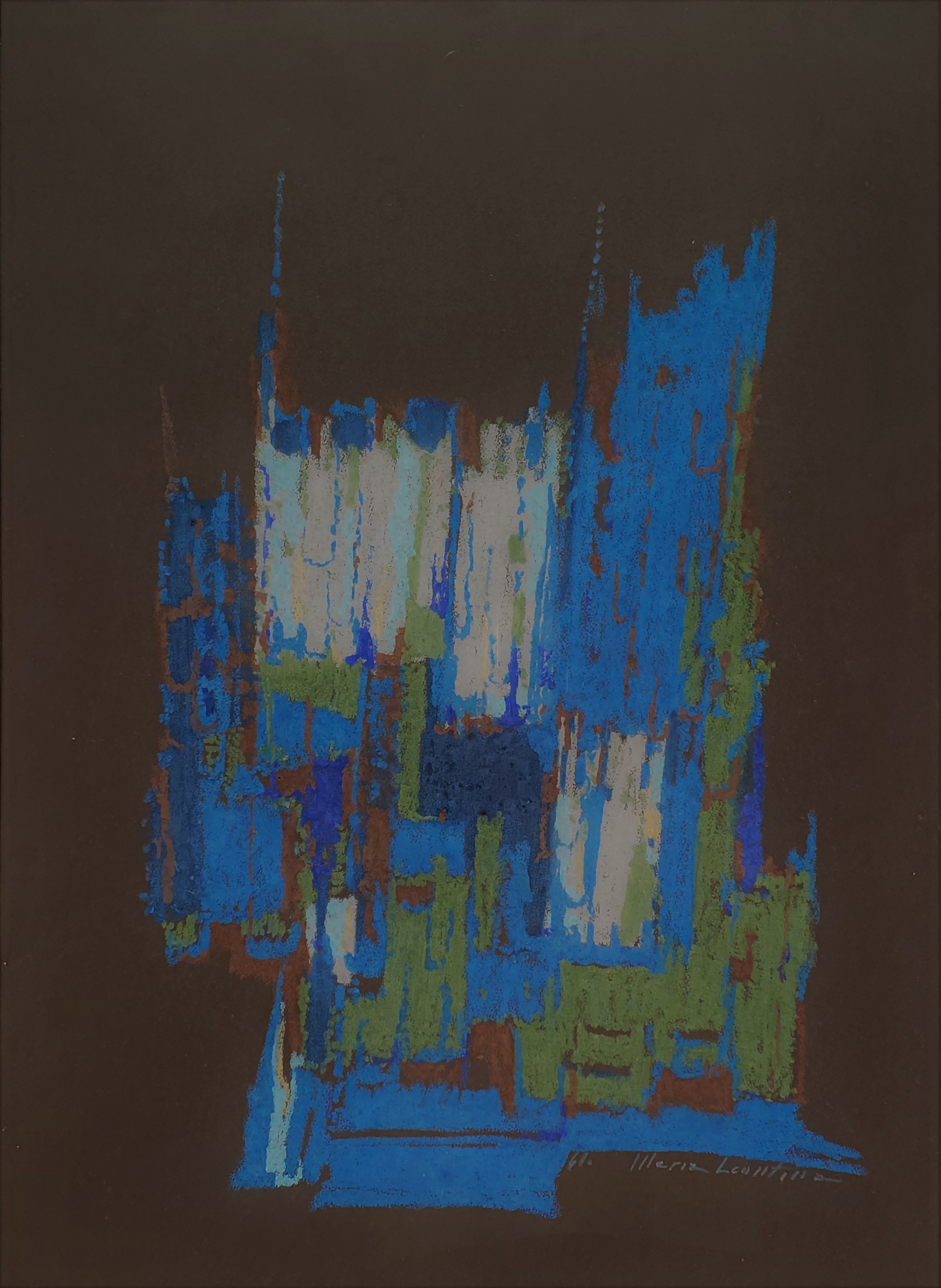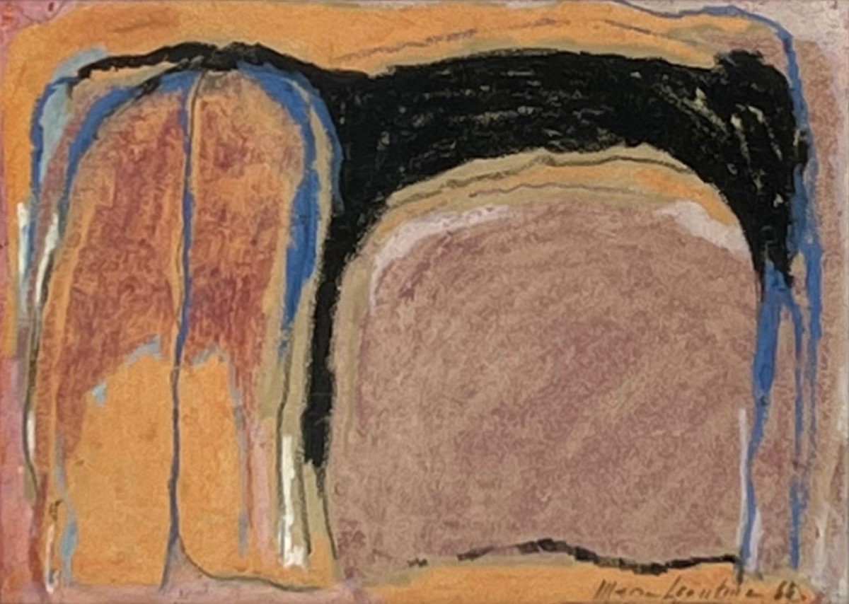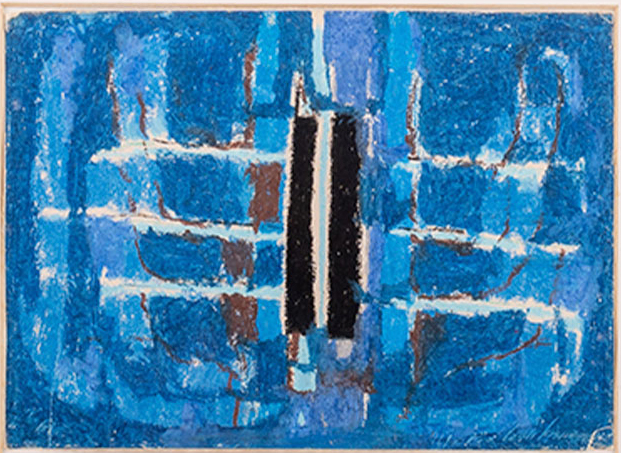 Maria Leontina - Estandarte, azul e rosa - déc. 1960 - Pastel oleoso sobre papel - Assinado canto inferior direito - 30 x 22 cm.