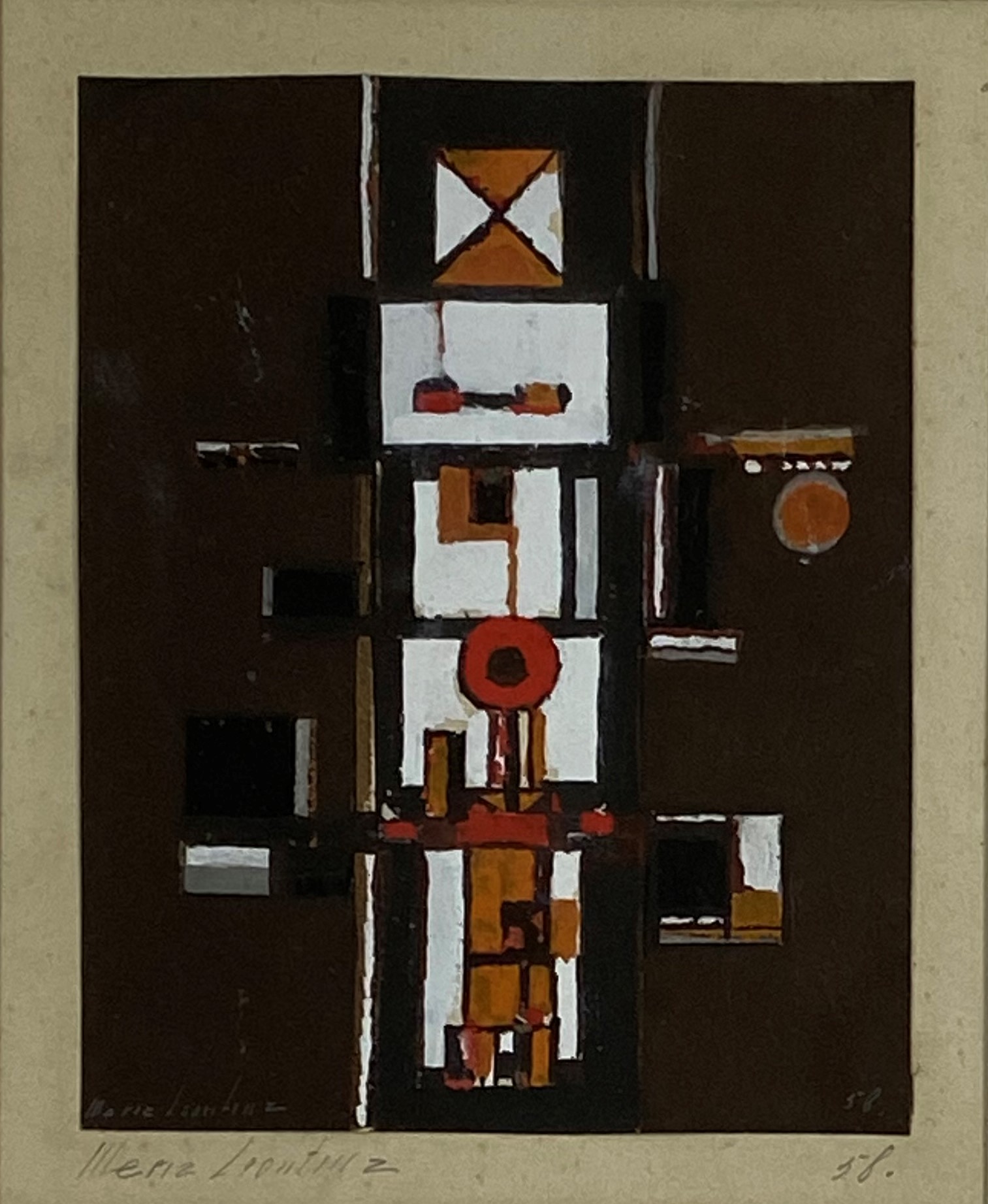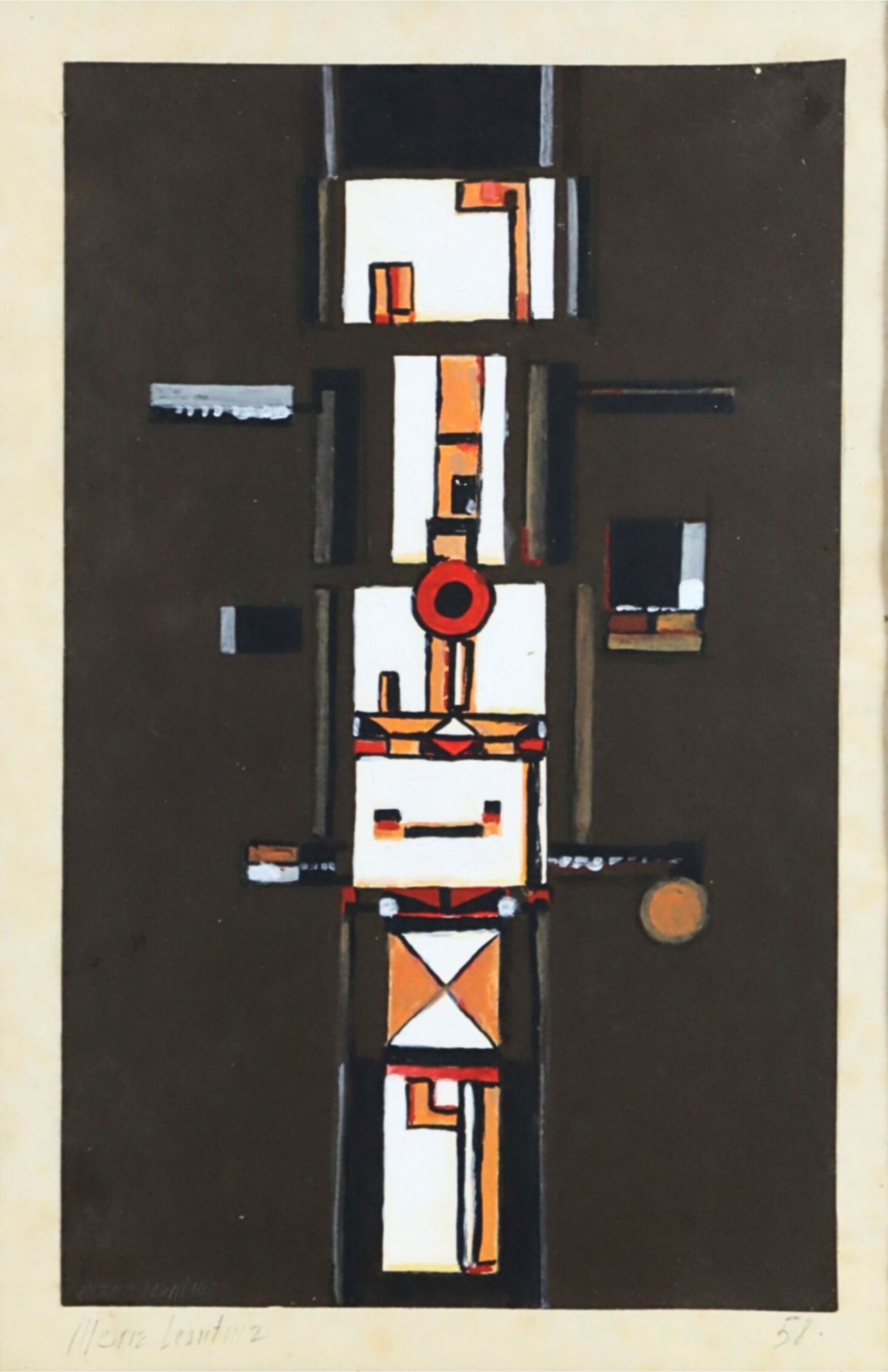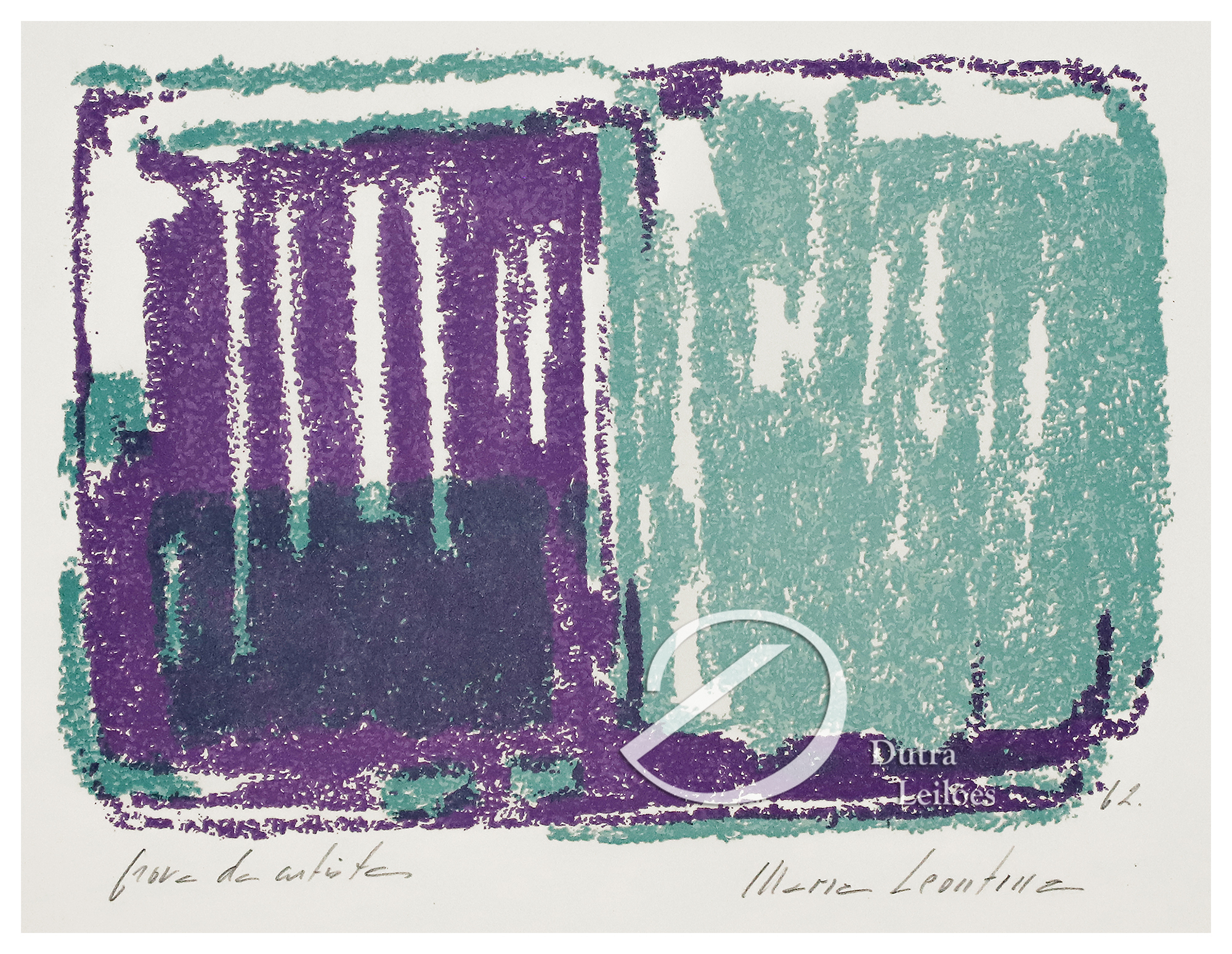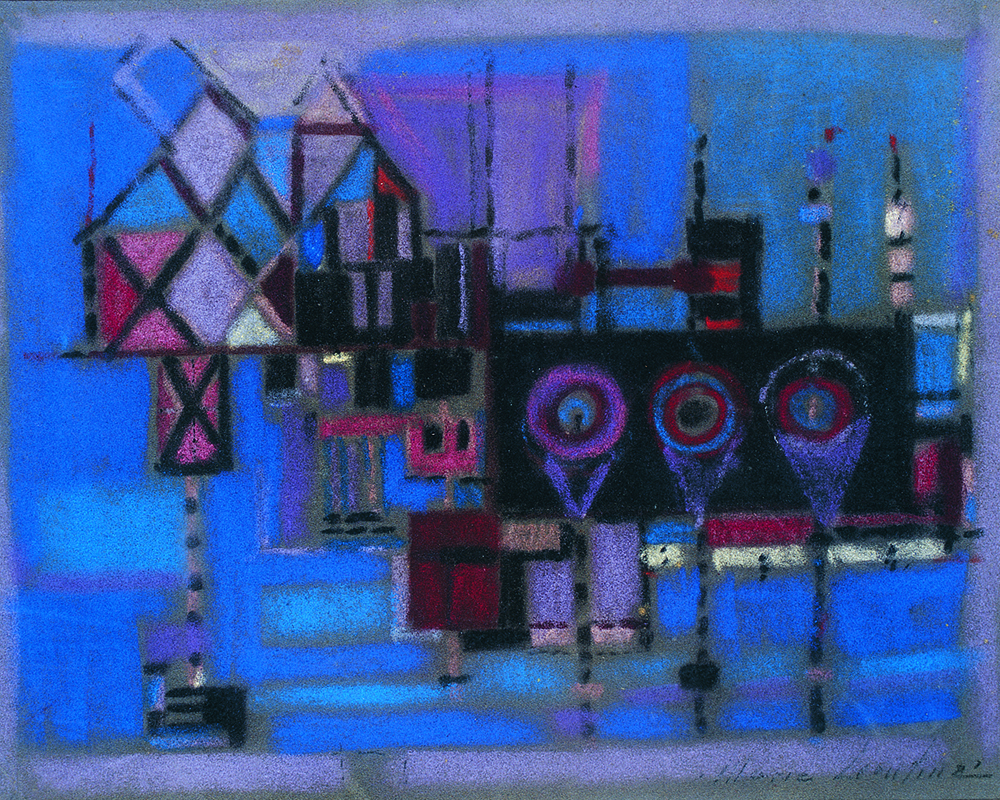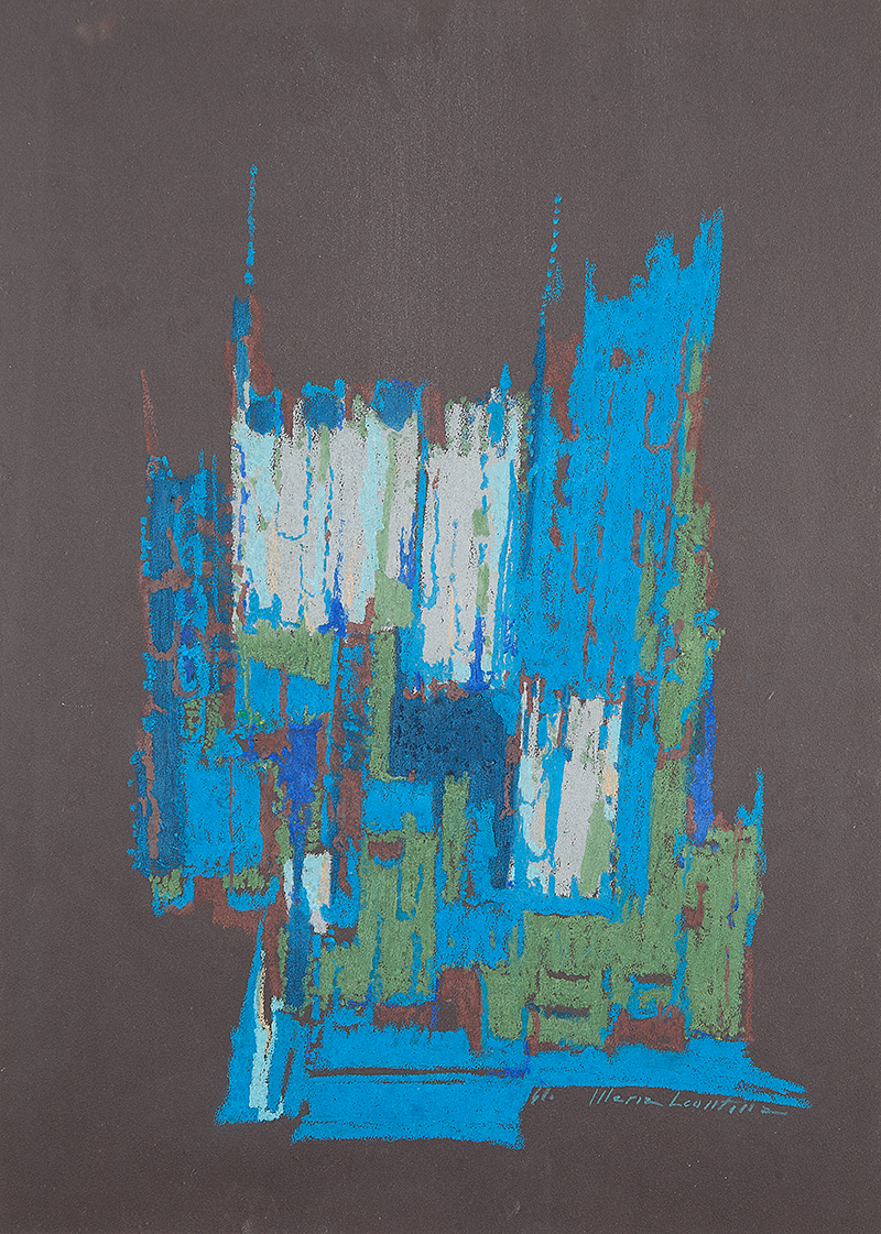 Maria Leontina - Estandarte, azul e rosa - déc. 1960 - Pastel oleoso sobre papel - Assinado canto inferior direito - 30 x 22 cm.