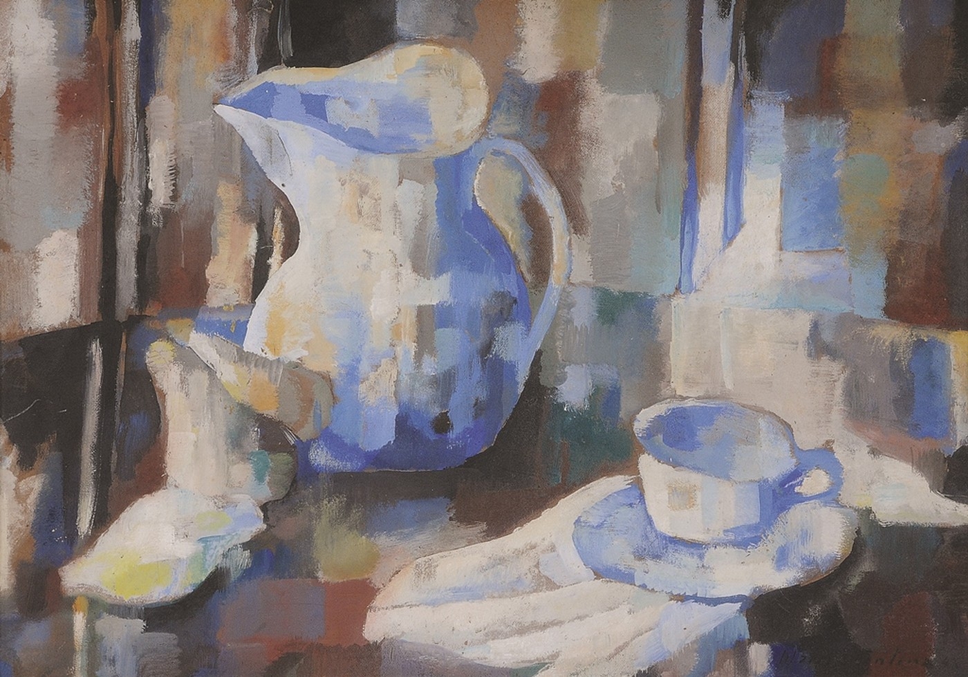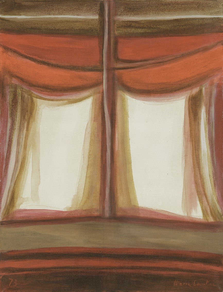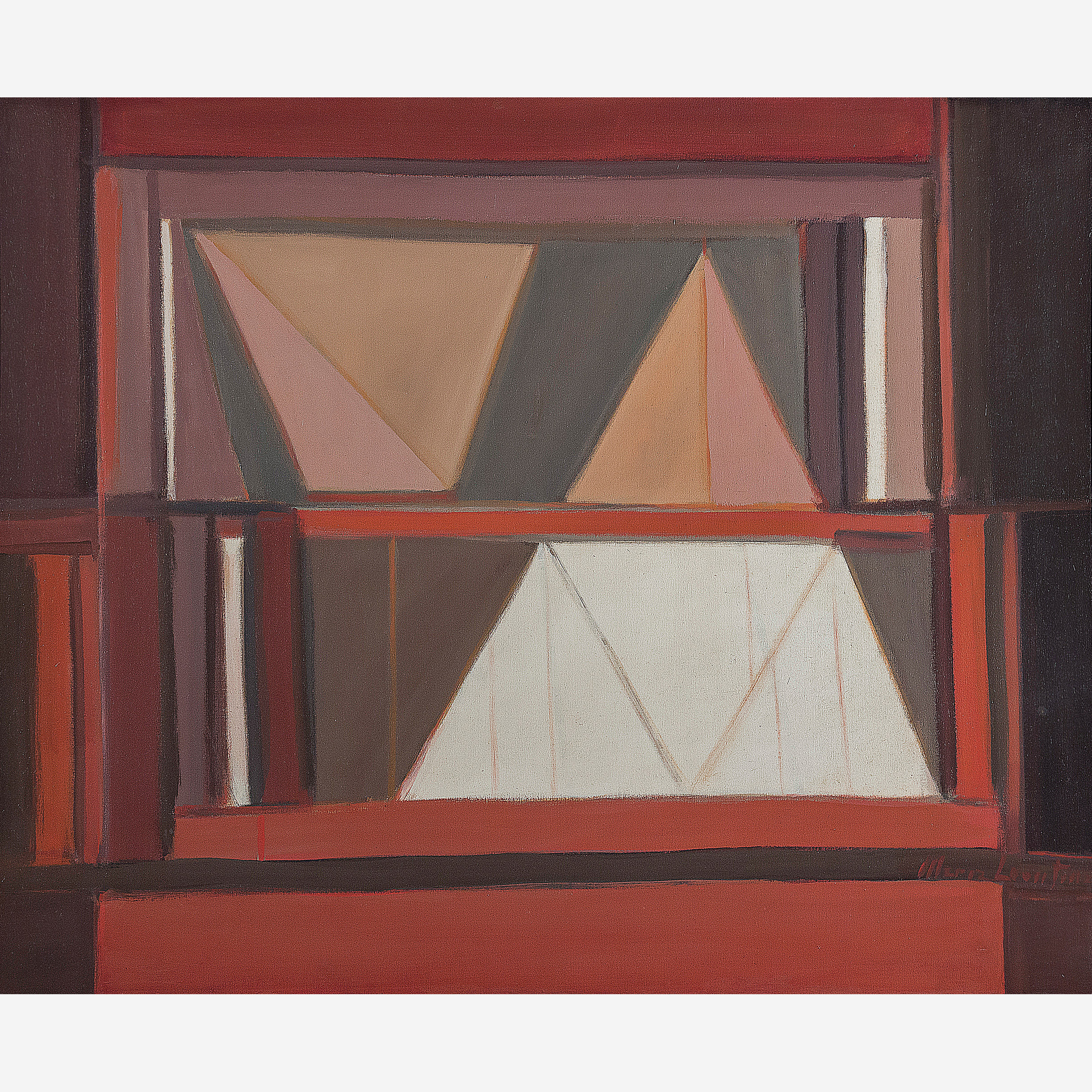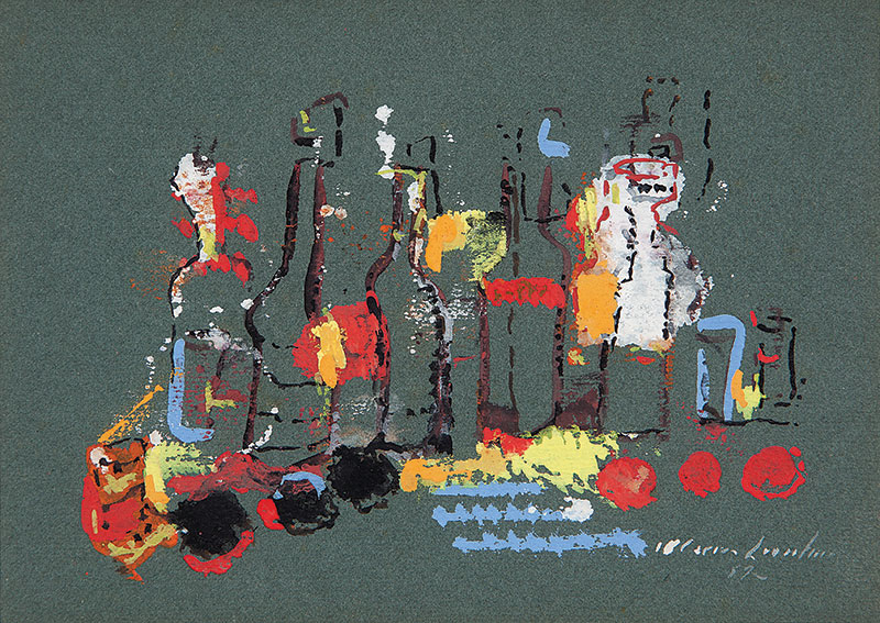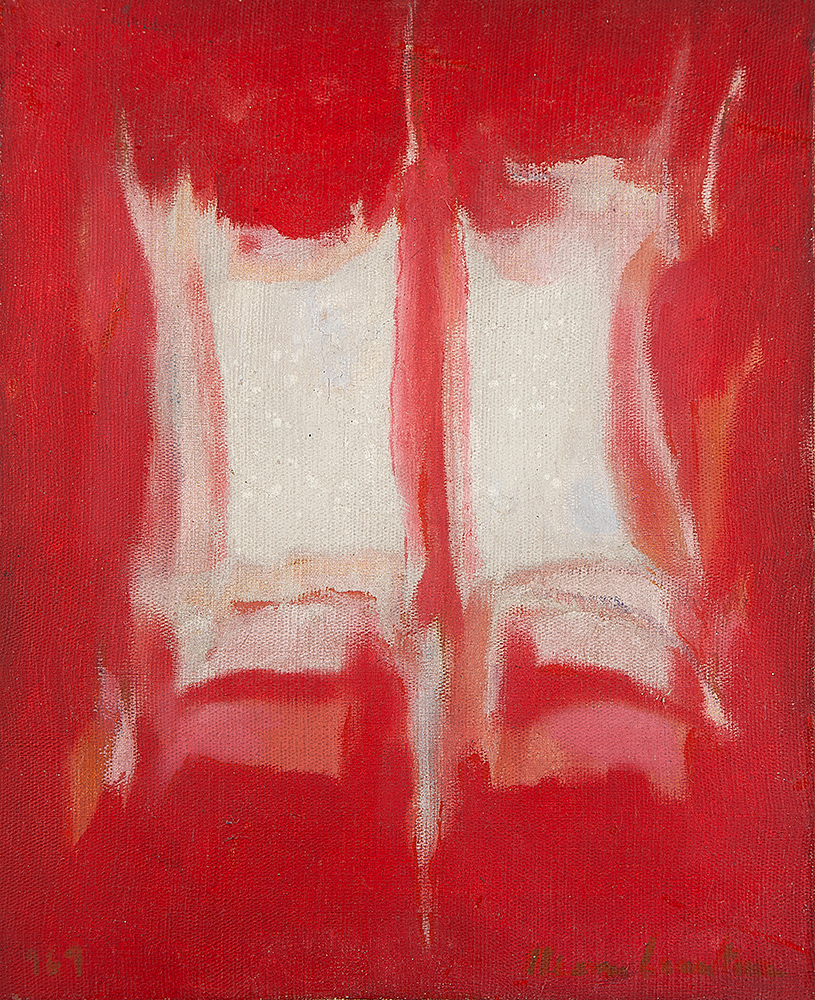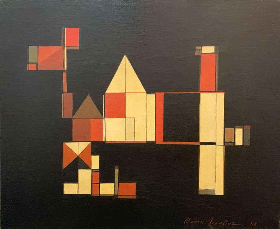 Maria Leontina - Estandarte, azul e rosa - déc. 1960 - Pastel oleoso sobre papel - Assinado canto inferior direito - 30 x 22 cm.