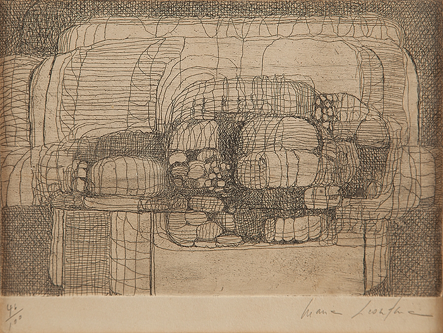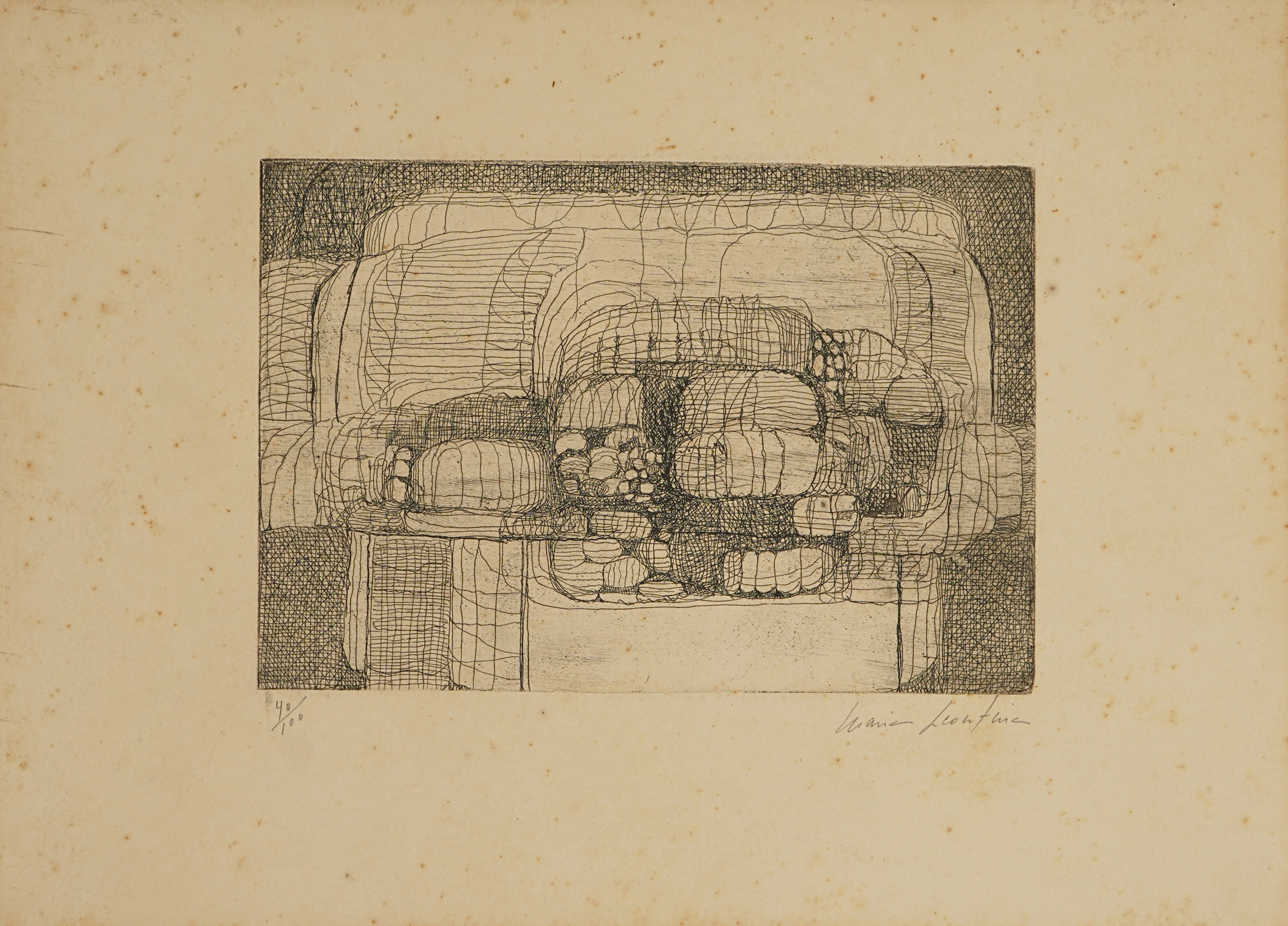 Maria Leontina - Lençóis - P.A. Gravura em metal, 26x29,5 cm, sem data, A.C.I.D. a lápis. Sem moldura