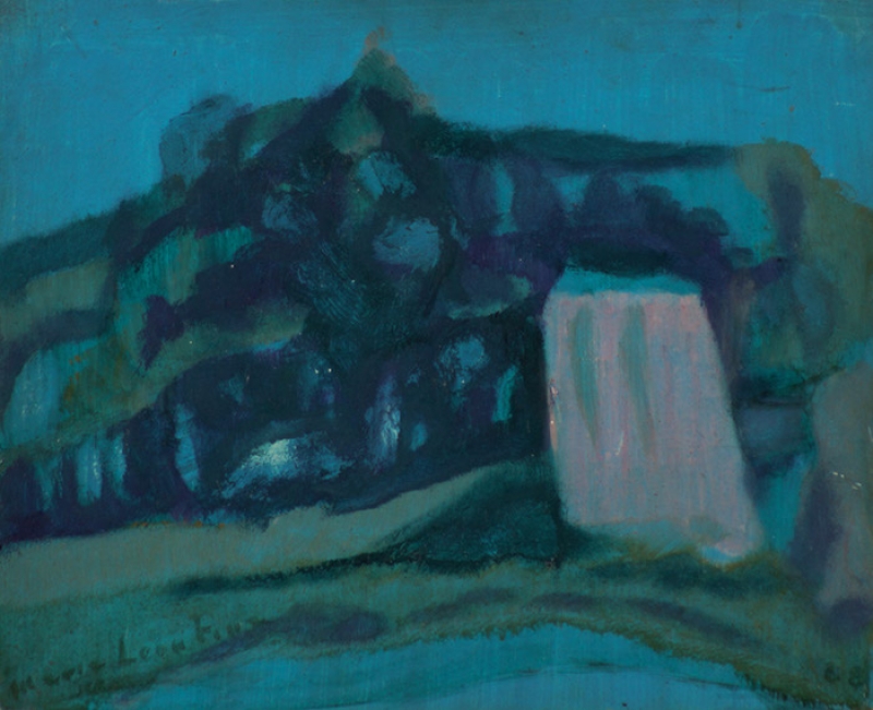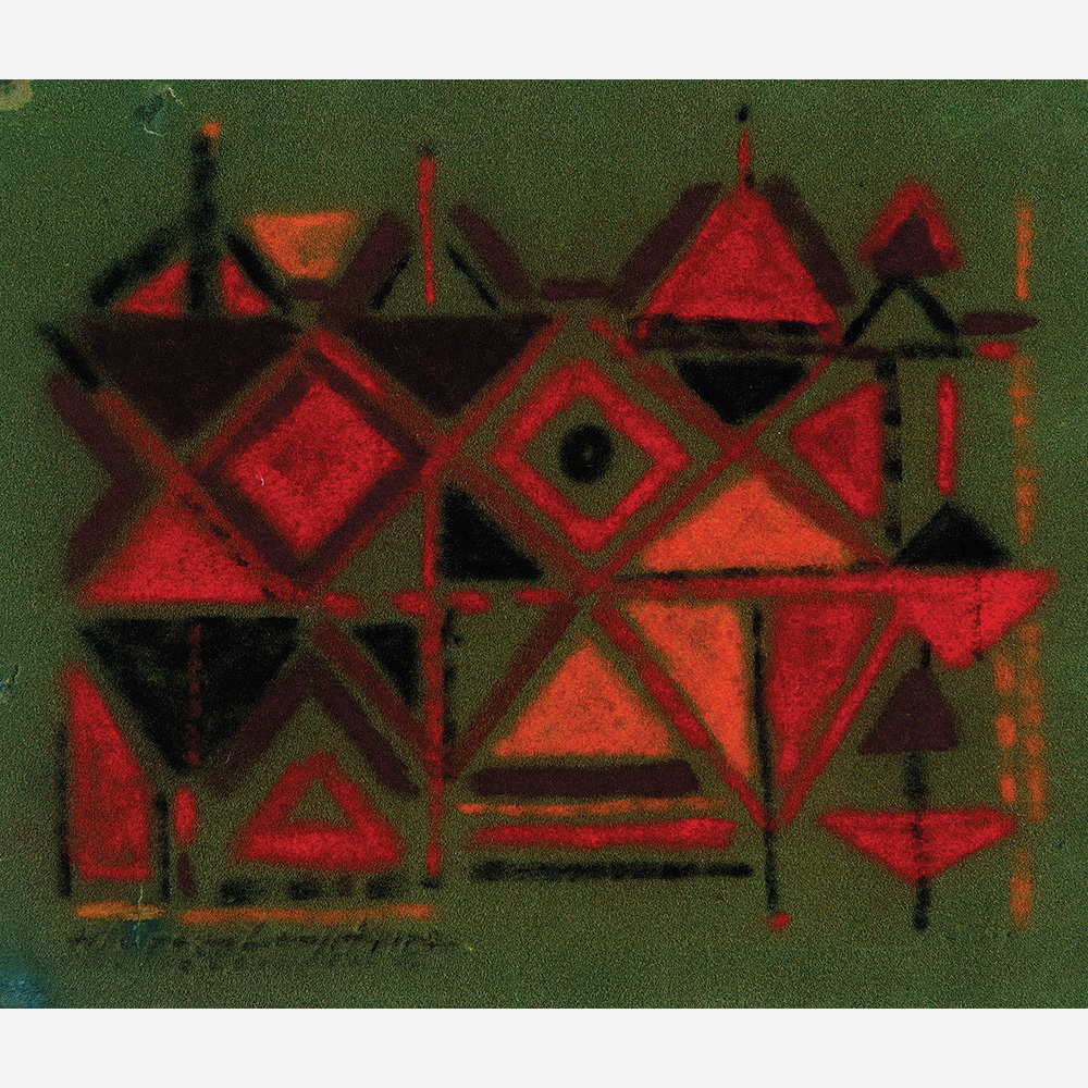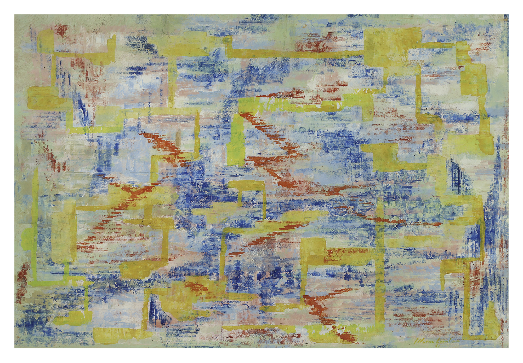 Maria Leontina - Estandarte, azul e rosa - déc. 1960 - Pastel oleoso sobre papel - Assinado canto inferior direito - 30 x 22 cm.