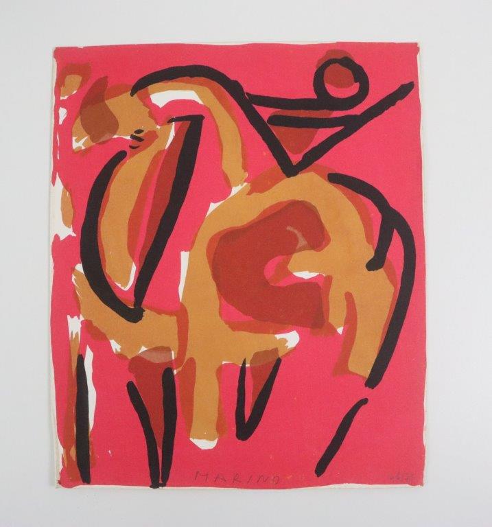 A partir dos anos 50 Marini volta a praticar a pintura com maior intensidade. Com cores brilhantes e encorpadas, fechadas em um campir geometrizante que se destaca sobre o fundo plano e com formas sempre mais desagregadas, as obras pictóricas definem, assim como a escultura, uma evidente mudança de chave expressiva.