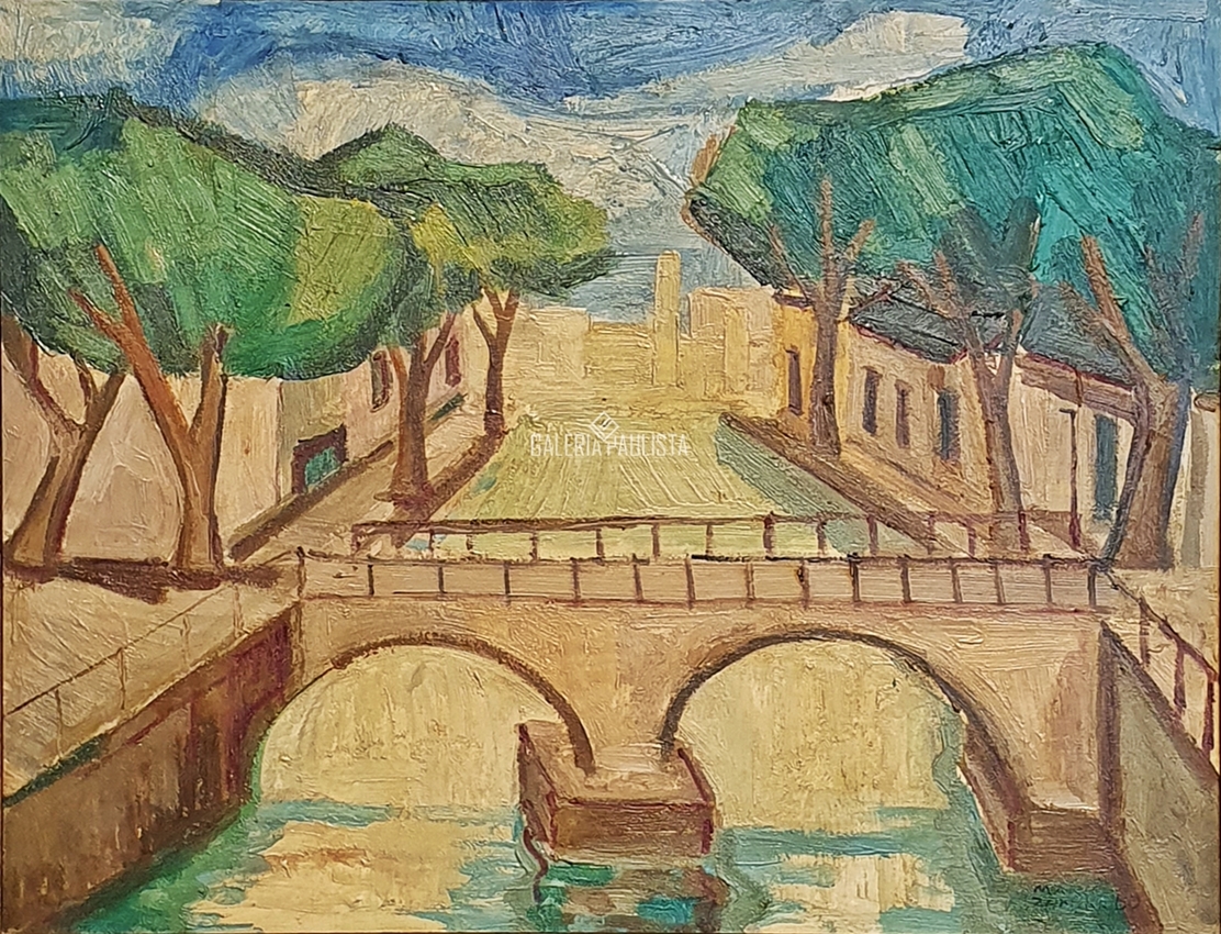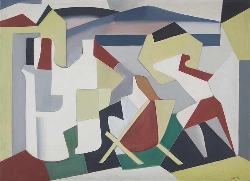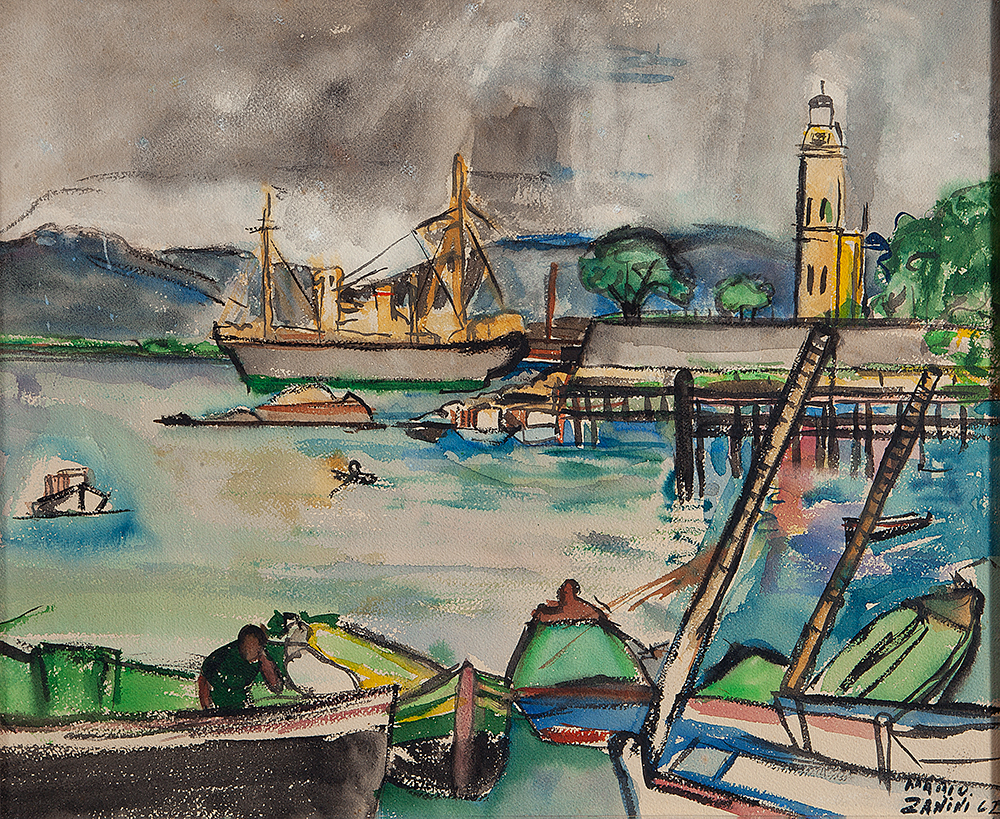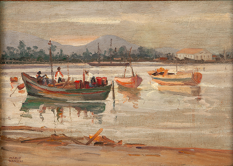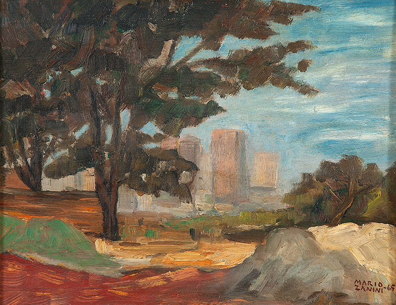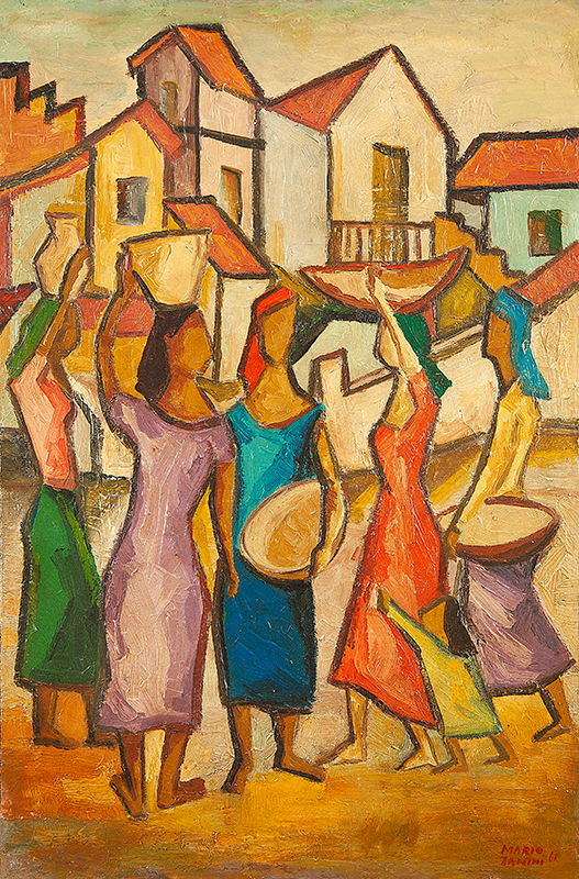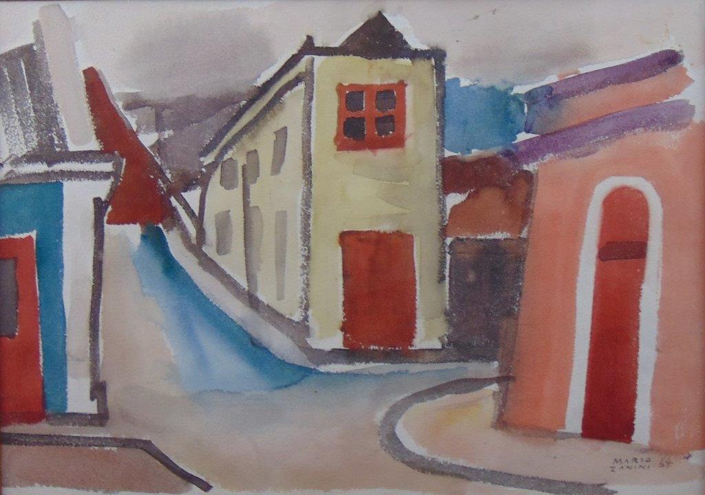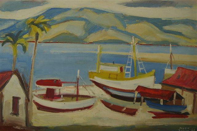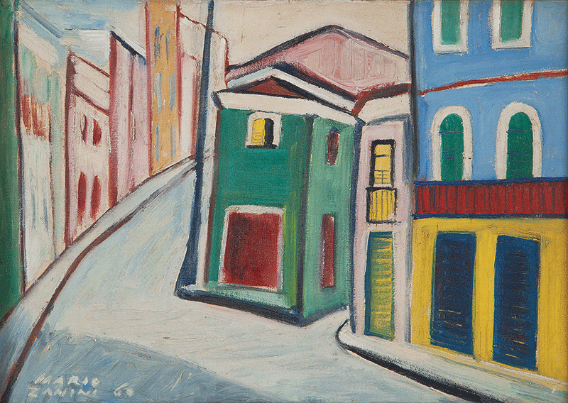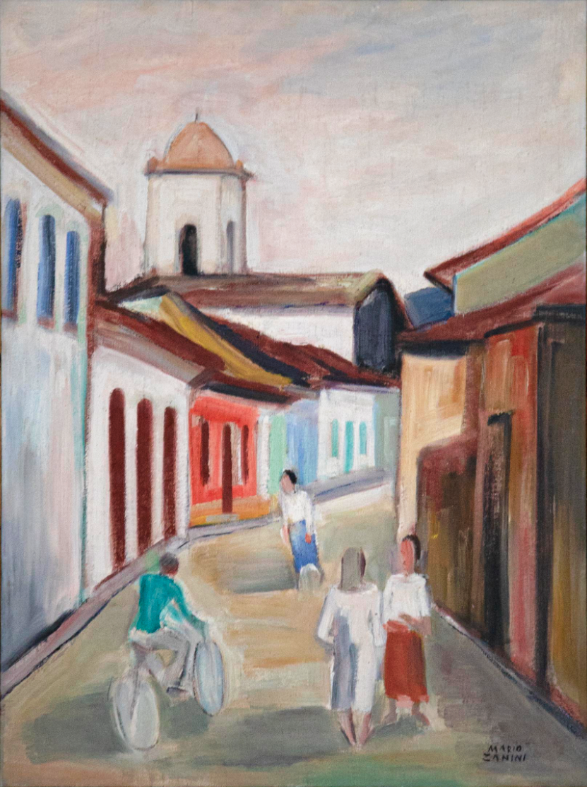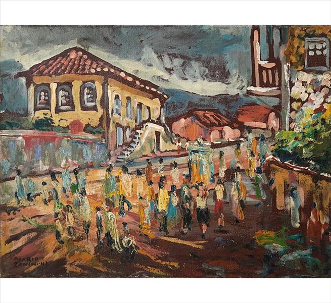 Mário Zanini (São Paulo SP 1907 - idem 1971). Pintor, decorador, ceramista, professor. Aos 13 anos, inicia curso de pintura da Escola Profissional Masculina do Brás, em São Paulo. Trabalha como letrista na Companhia Antarctica Paulista, entre 1922 e 1924. Em 1924, matricula-se no curso noturno de desenho e artes do Liceu de Artes e Ofícios de São Paulo - Laosp, que conclui em 1926. Conhece Alfredo Volpi em 1927 e no ano seguinte estuda com o pintor Georg Elpons. Trabalha no escritório de decoração de Francisco Rebolo entre 1933 e 1938. Em 1935, instala-se no palacete Santa Helena, na praça da Sé, onde divide, a partir de 1936, uma sala com Manoel Martins e Clóvis Graciano. Da reunião desses e de outros artistas, surge o Grupo Santa Helena. Em 1940 recebe medalha de prata no 46º Salão Nacional de Belas Artes - SNBA e é convidado por Rossi Osir a trabalhar em seu ateliê de azulejos artísticos, o Osirarte. Sua primeira exposição individual acontece em 1944, na galeria da Livraria Brasiliense, em São Paulo. Em 1950, viaja por seis meses pela Itália, em companhia de Volpi e Osir. Ensina gravura na Associação Paulista de Belas Artes e na Escola Carlos de Campos em 1958. A partir de 1968 leciona na Faculdade de Belas Artes de São Paulo. Sua família doa 108 de suas obras ao Museu de Arte Contemporânea da Universidade de São Paulo - MAC/USP em 1974.
