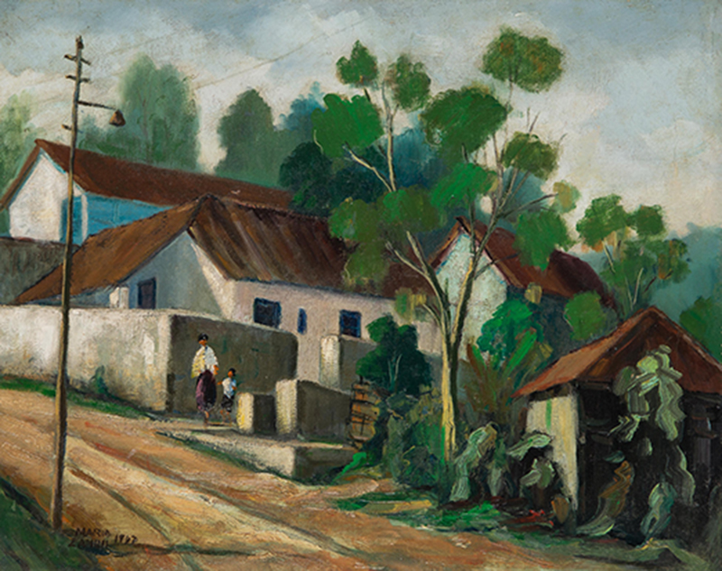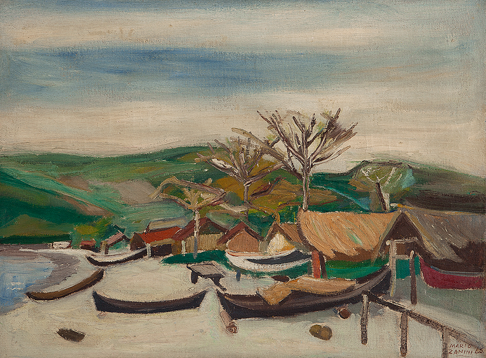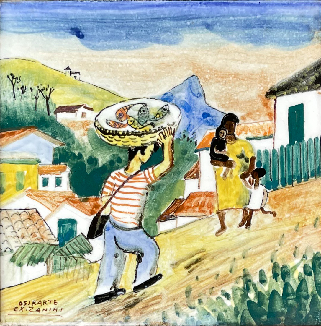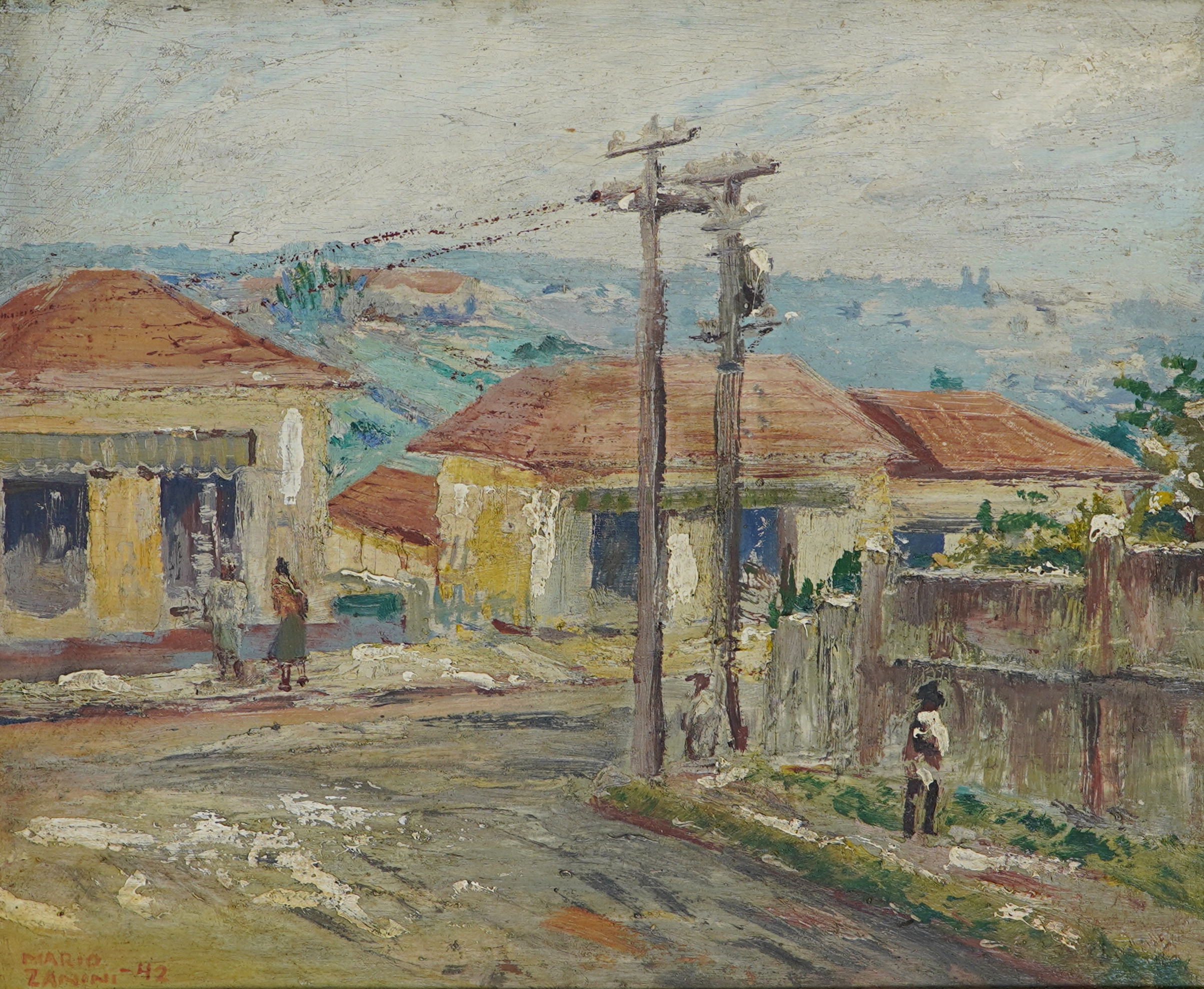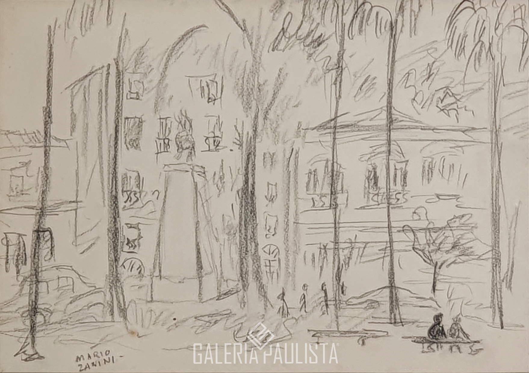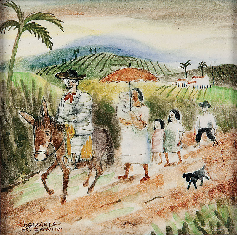 Mário Zanini (São Paulo SP 1907 - idem 1971). Pintor, decorador, ceramista, professor. Aos 13 anos, inicia curso de pintura da Escola Profissional Masculina do Brás, em São Paulo. Trabalha como letrista na Companhia Antarctica Paulista, entre 1922 e 1924. Em 1924, matricula-se no curso noturno de desenho e artes do Liceu de Artes e Ofícios de São Paulo - Laosp, que conclui em 1926. Conhece Alfredo Volpi em 1927 e no ano seguinte estuda com o pintor Georg Elpons. Trabalha no escritório de decoração de Francisco Rebolo entre 1933 e 1938. Em 1935, instala-se no palacete Santa Helena, na praça da Sé, onde divide, a partir de 1936, uma sala com Manoel Martins e Clóvis Graciano. Da reunião desses e de outros artistas, surge o Grupo Santa Helena. Em 1940 recebe medalha de prata no 46º Salão Nacional de Belas Artes - SNBA e é convidado por Rossi Osir a trabalhar em seu ateliê de azulejos artísticos, o Osirarte. Sua primeira exposição individual acontece em 1944, na galeria da Livraria Brasiliense, em São Paulo. Em 1950, viaja por seis meses pela Itália, em companhia de Volpi e Osir. Ensina gravura na Associação Paulista de Belas Artes e na Escola Carlos de Campos em 1958. A partir de 1968 leciona na Faculdade de Belas Artes de São Paulo. Sua família doa 108 de suas obras ao Museu de Arte Contemporânea da Universidade de São Paulo - MAC/USP em 1974.