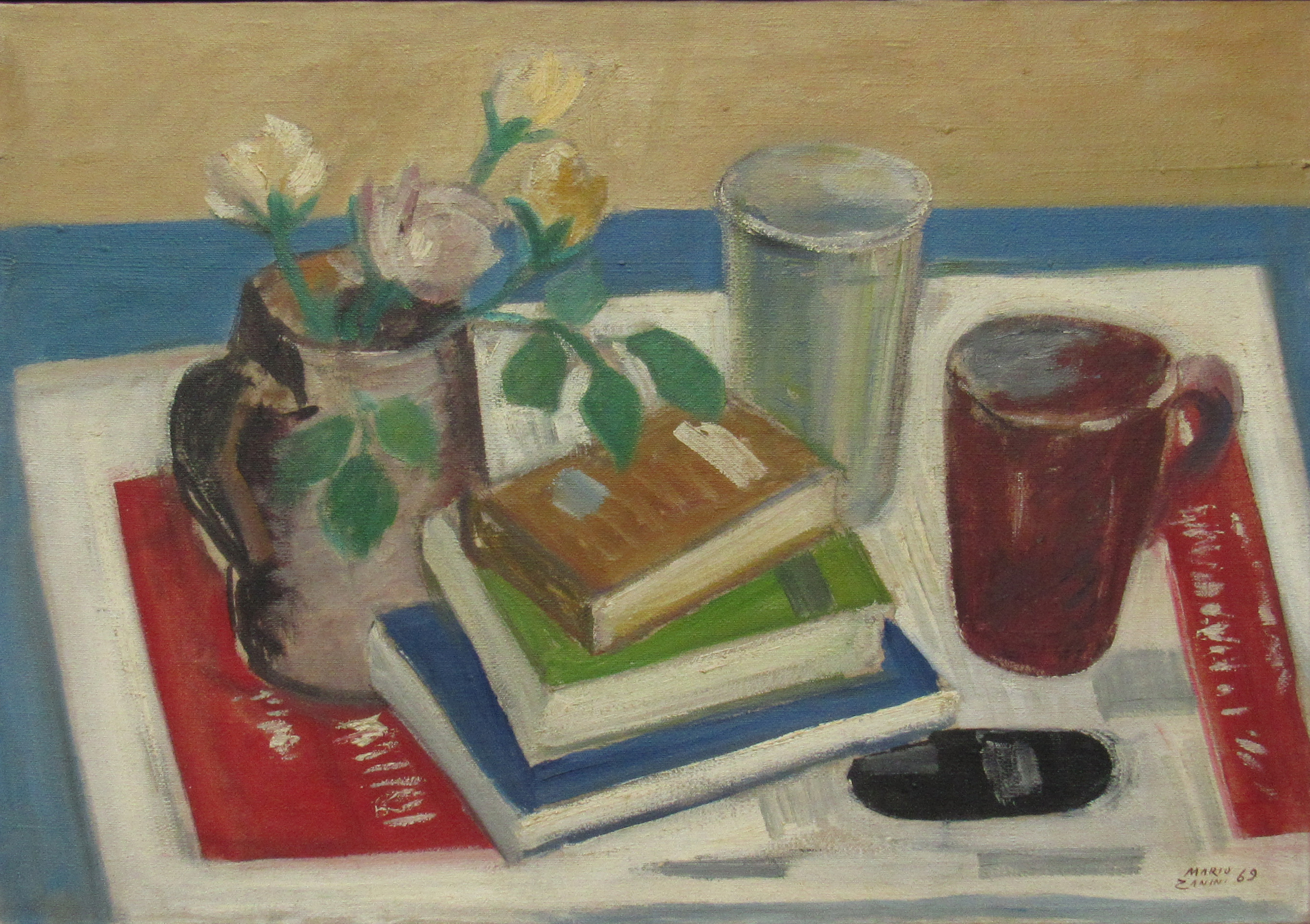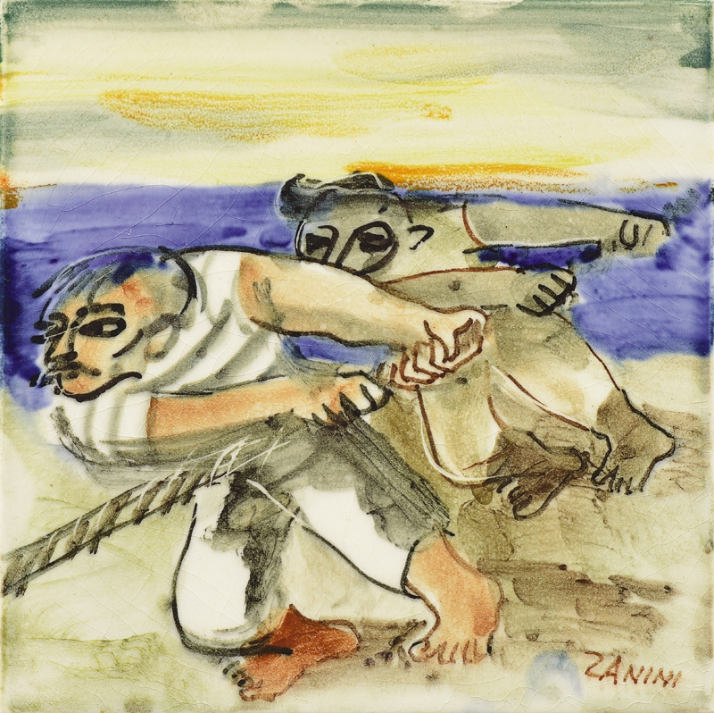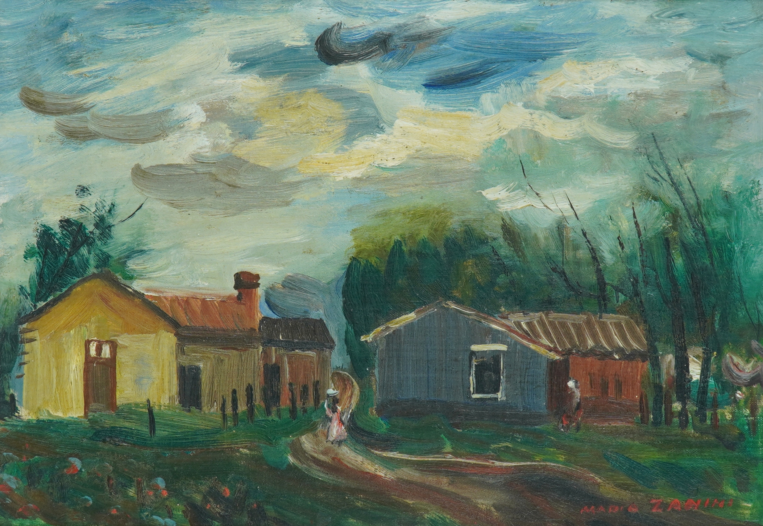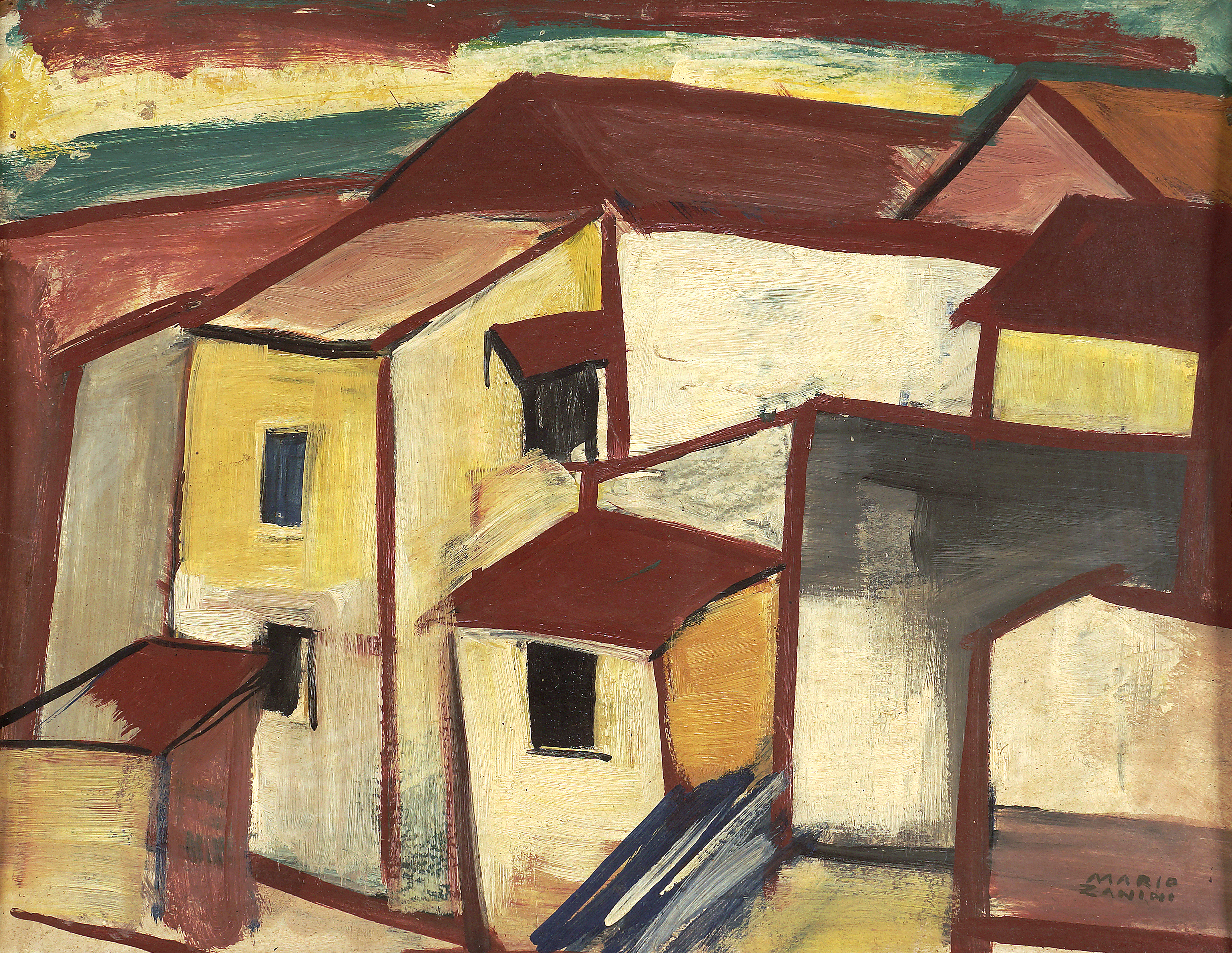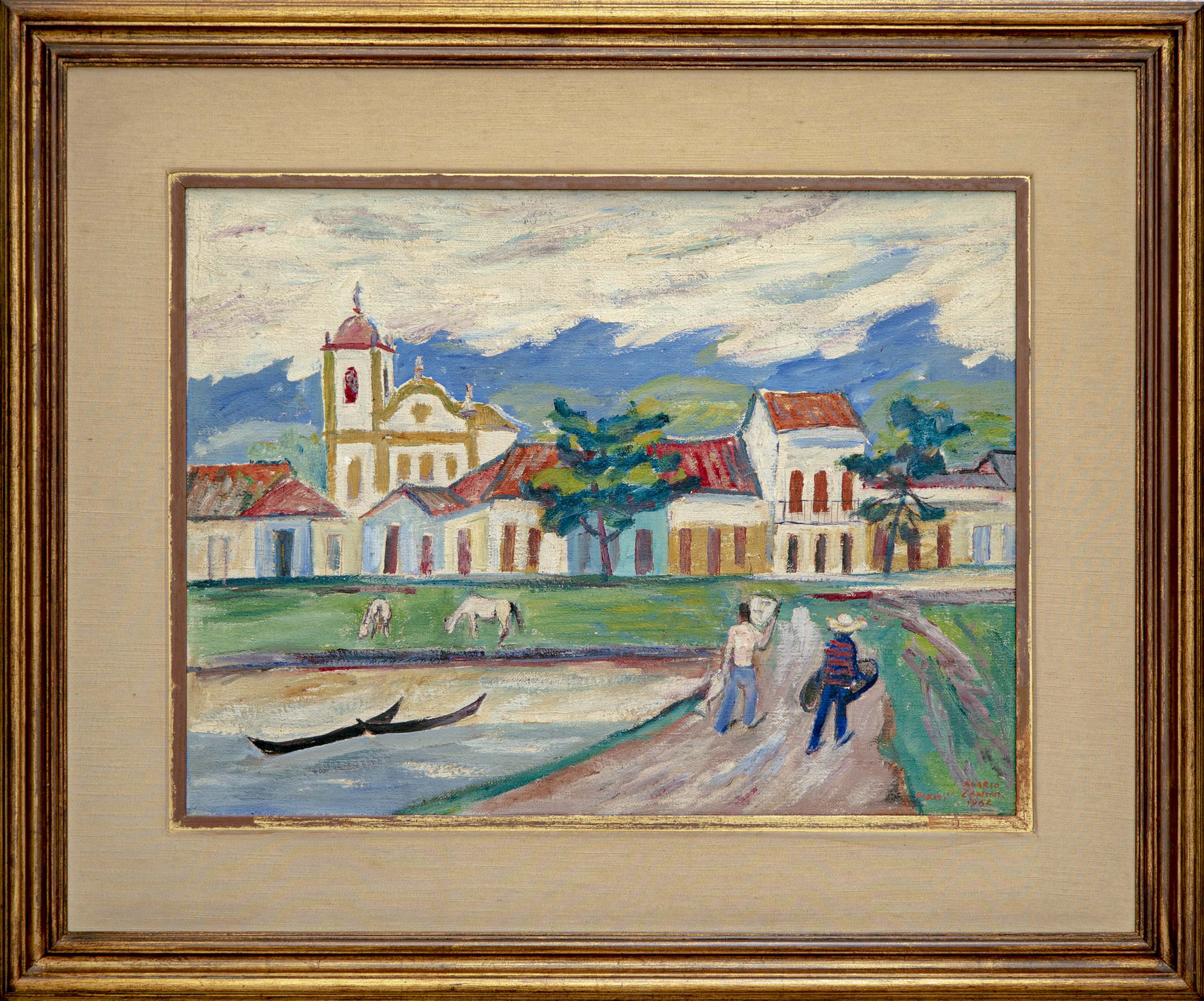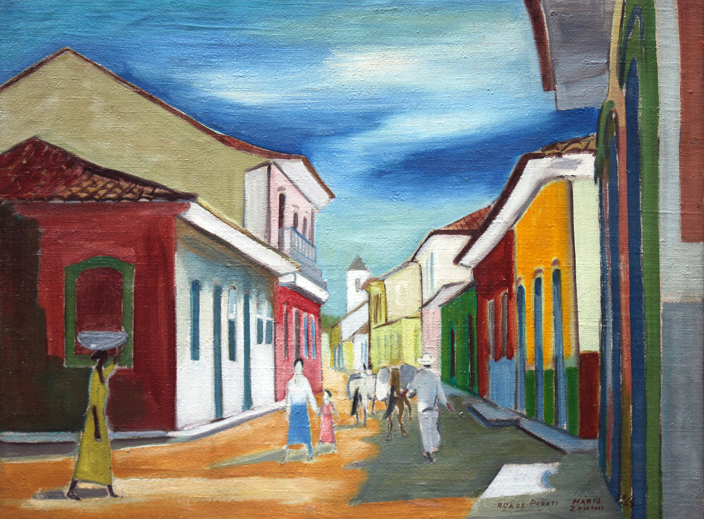 Mário Zanini (São Paulo SP 1907 - idem 1971). Pintor, decorador, ceramista, professor. Aos 13 anos, inicia curso de pintura da Escola Profissional Masculina do Brás, em São Paulo. Trabalha como letrista na Companhia Antarctica Paulista, entre 1922 e 1924. Em 1924, matricula-se no curso noturno de desenho e artes do Liceu de Artes e Ofícios de São Paulo - Laosp, que conclui em 1926. Conhece Alfredo Volpi em 1927 e no ano seguinte estuda com o pintor Georg Elpons. Trabalha no escritório de decoração de Francisco Rebolo entre 1933 e 1938. Em 1935, instala-se no palacete Santa Helena, na praça da Sé, onde divide, a partir de 1936, uma sala com Manoel Martins e Clóvis Graciano. Da reunião desses e de outros artistas, surge o Grupo Santa Helena. Em 1940 recebe medalha de prata no 46º Salão Nacional de Belas Artes - SNBA e é convidado por Rossi Osir a trabalhar em seu ateliê de azulejos artísticos, o Osirarte. Sua primeira exposição individual acontece em 1944, na galeria da Livraria Brasiliense, em São Paulo. Em 1950, viaja por seis meses pela Itália, em companhia de Volpi e Osir. Ensina gravura na Associação Paulista de Belas Artes e na Escola Carlos de Campos em 1958. A partir de 1968 leciona na Faculdade de Belas Artes de São Paulo. Sua família doa 108 de suas obras ao Museu de Arte Contemporânea da Universidade de São Paulo - MAC/USP em 1974.