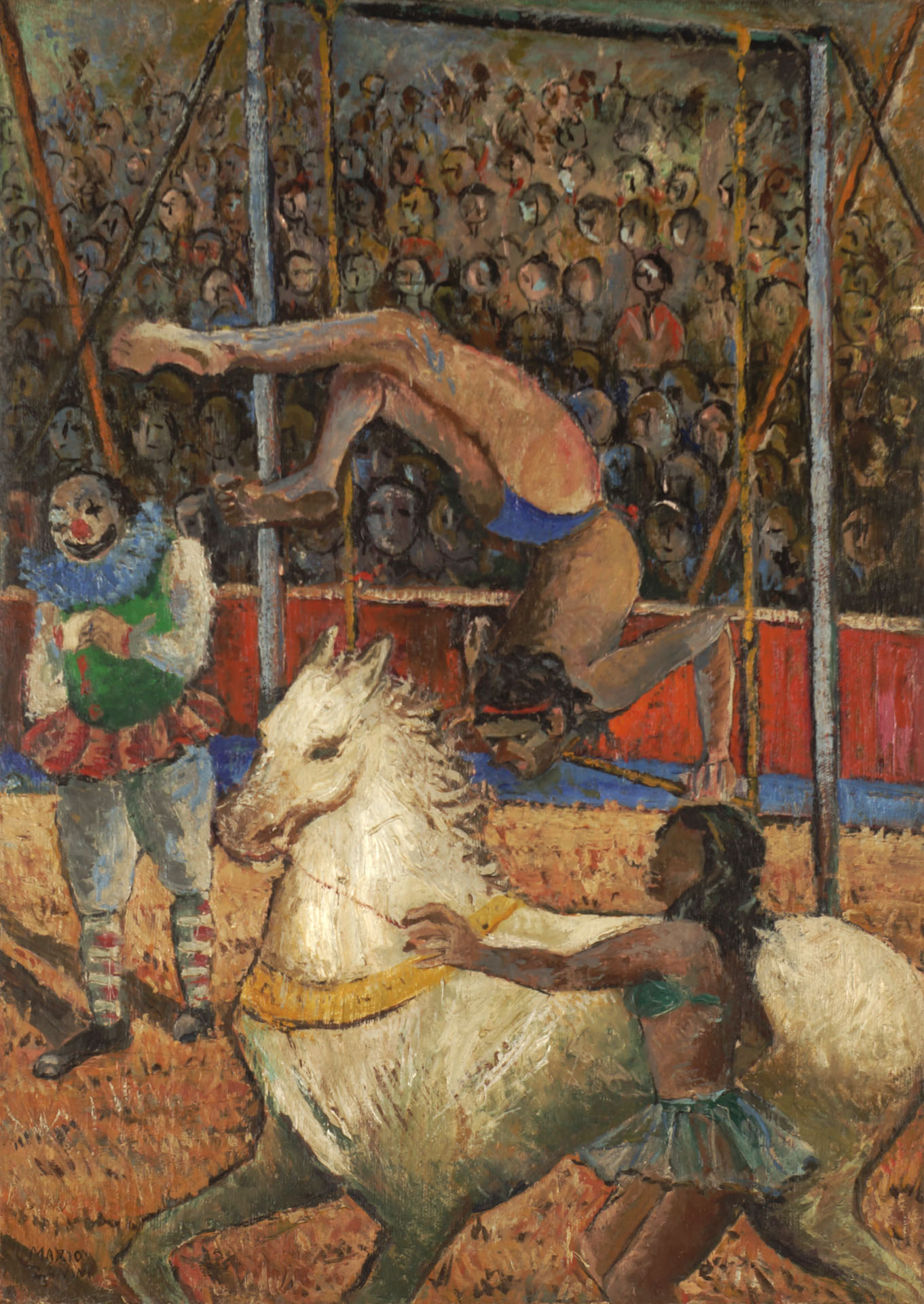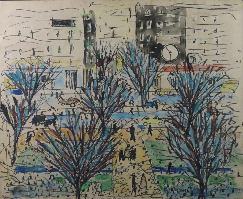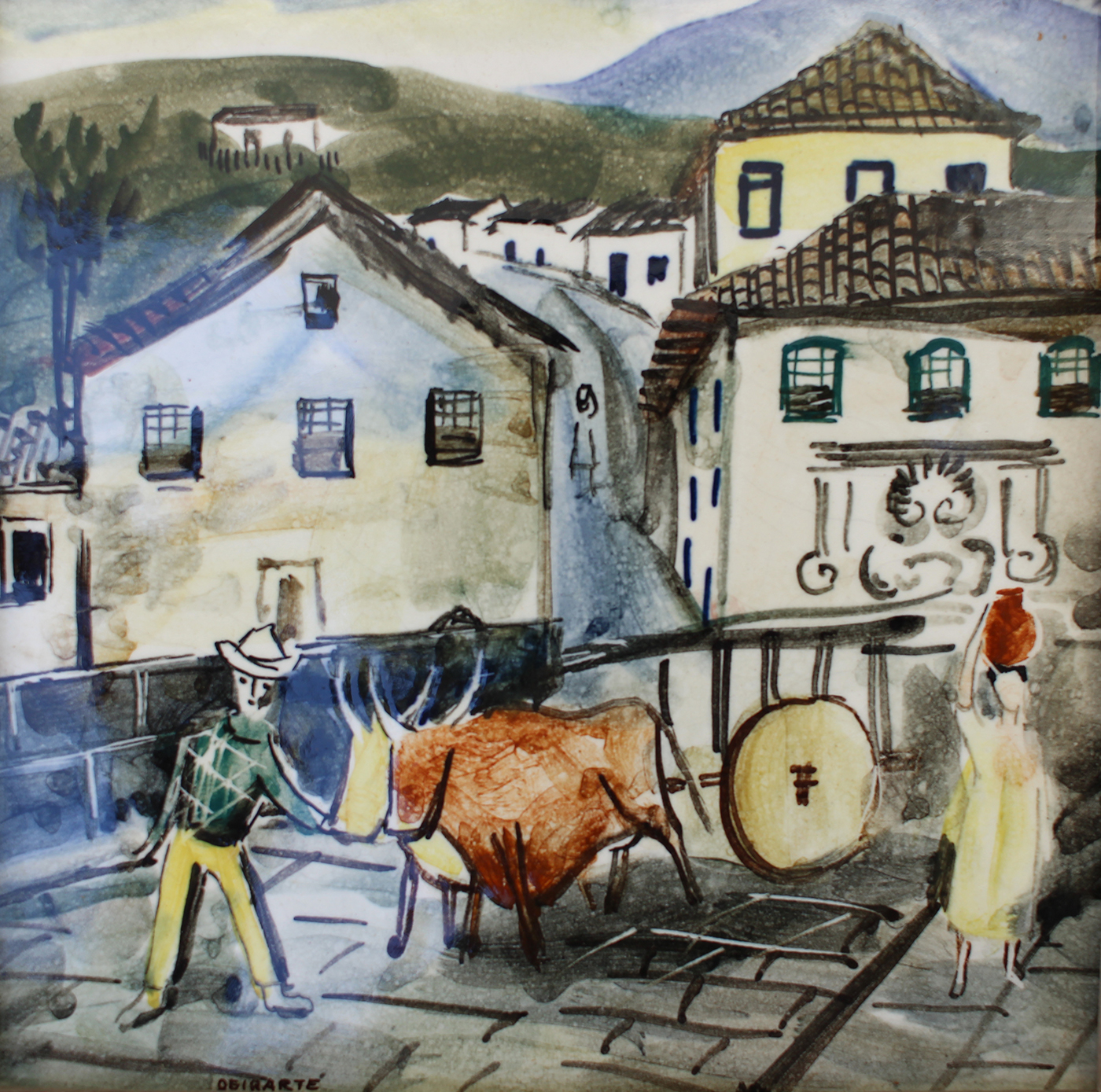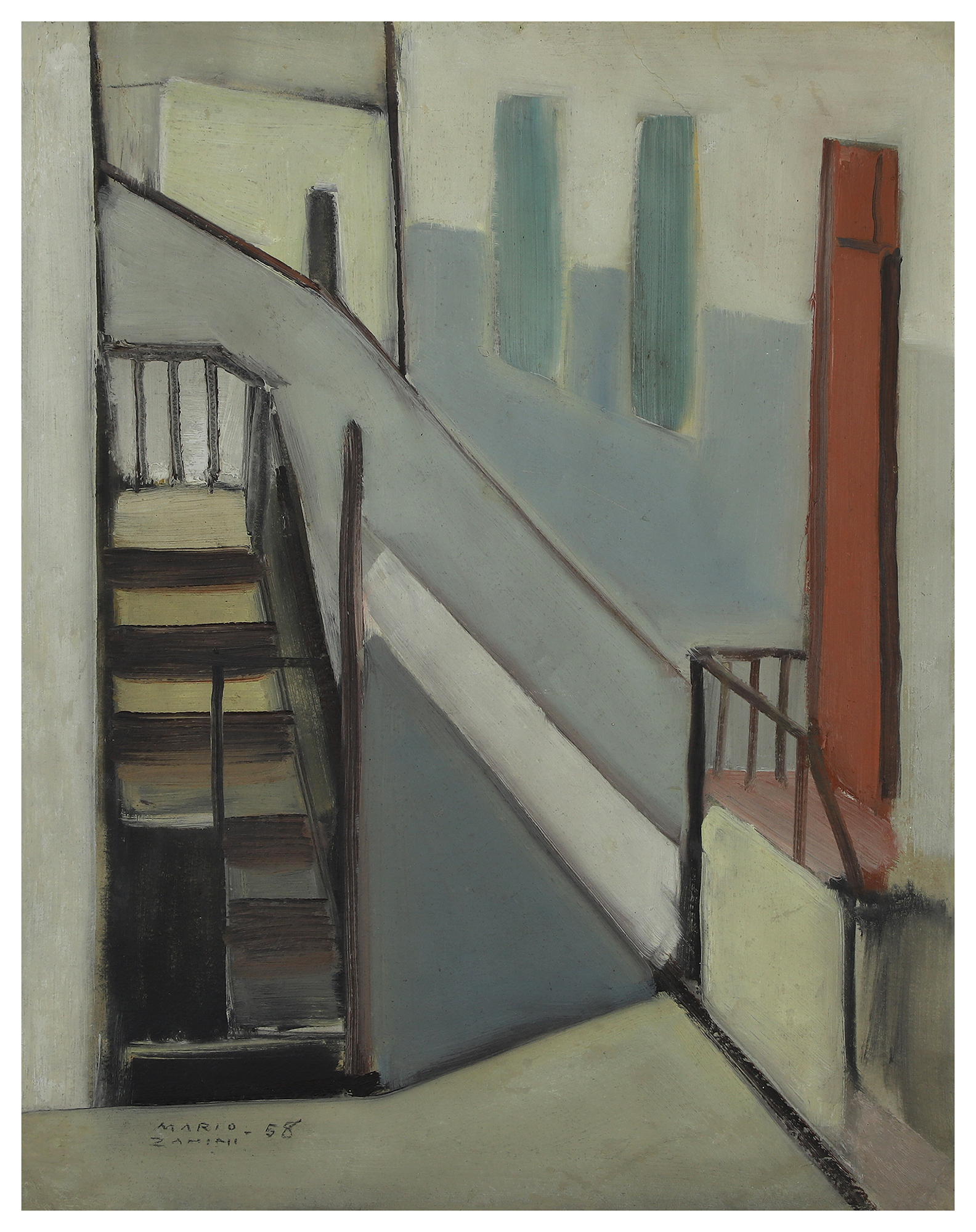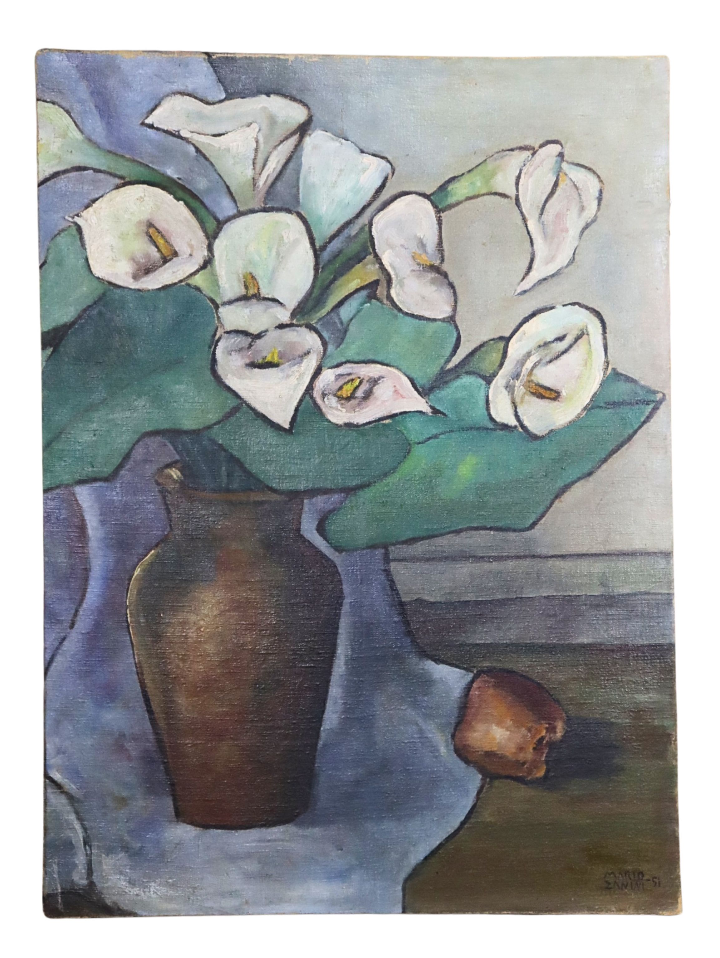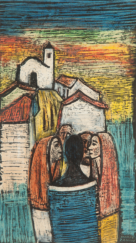 Mário Zanini (São Paulo SP 1907 - idem 1971). Pintor, decorador, ceramista, professor. Aos 13 anos, inicia curso de pintura da Escola Profissional Masculina do Brás, em São Paulo. Trabalha como letrista na Companhia Antarctica Paulista, entre 1922 e 1924. Em 1924, matricula-se no curso noturno de desenho e artes do Liceu de Artes e Ofícios de São Paulo - Laosp, que conclui em 1926. Conhece Alfredo Volpi em 1927 e no ano seguinte estuda com o pintor Georg Elpons. Trabalha no escritório de decoração de Francisco Rebolo entre 1933 e 1938. Em 1935, instala-se no palacete Santa Helena, na praça da Sé, onde divide, a partir de 1936, uma sala com Manoel Martins e Clóvis Graciano. Da reunião desses e de outros artistas, surge o Grupo Santa Helena. Em 1940 recebe medalha de prata no 46º Salão Nacional de Belas Artes - SNBA e é convidado por Rossi Osir a trabalhar em seu ateliê de azulejos artísticos, o Osirarte. Sua primeira exposição individual acontece em 1944, na galeria da Livraria Brasiliense, em São Paulo. Em 1950, viaja por seis meses pela Itália, em companhia de Volpi e Osir. Ensina gravura na Associação Paulista de Belas Artes e na Escola Carlos de Campos em 1958. A partir de 1968 leciona na Faculdade de Belas Artes de São Paulo. Sua família doa 108 de suas obras ao Museu de Arte Contemporânea da Universidade de São Paulo - MAC/USP em 1974.