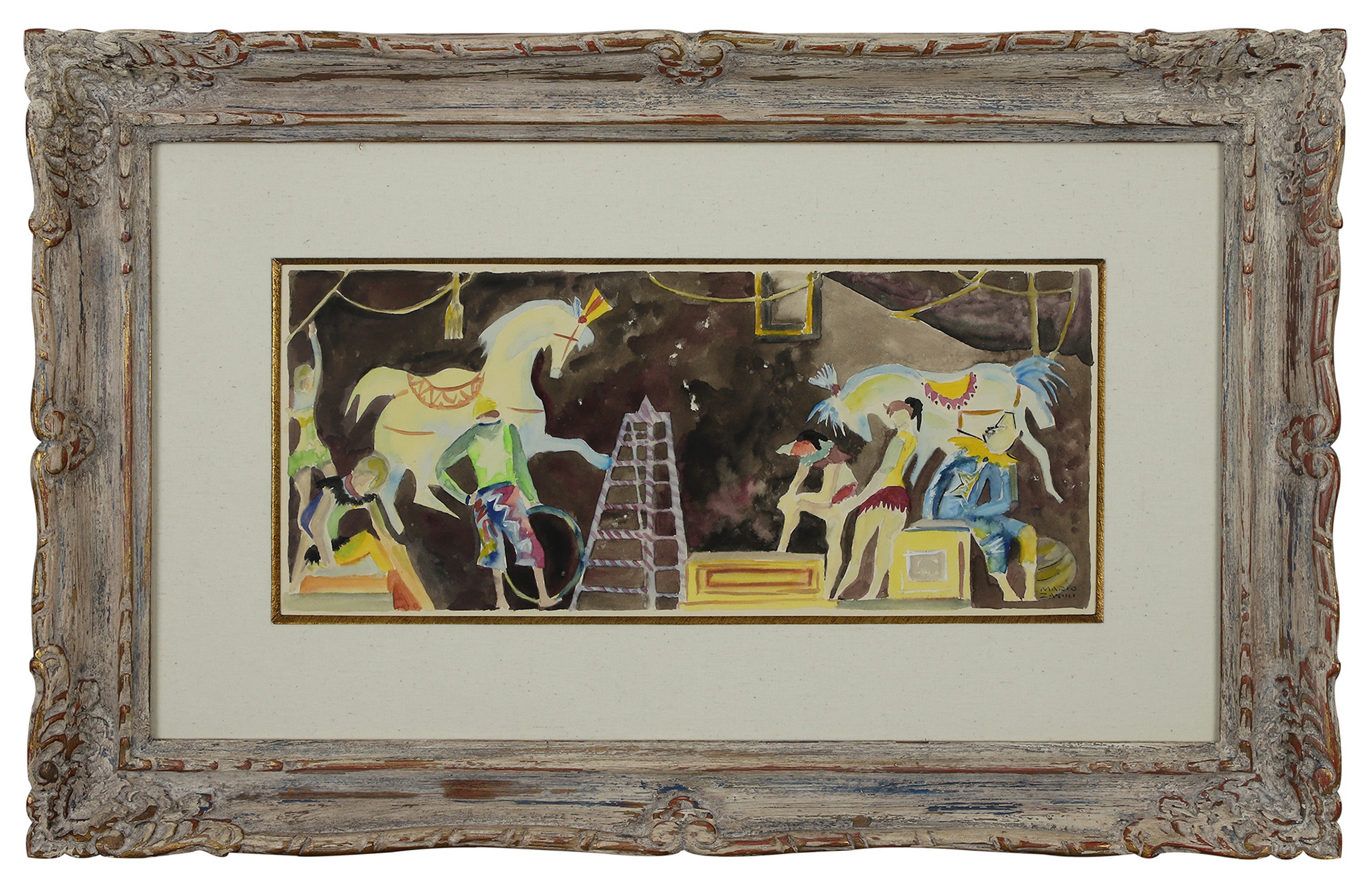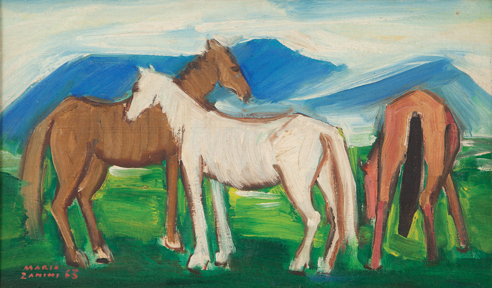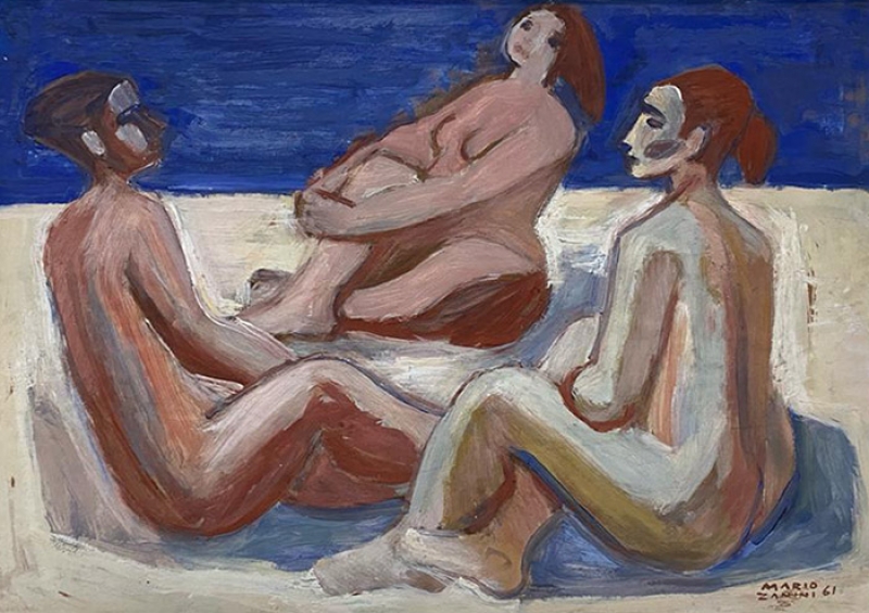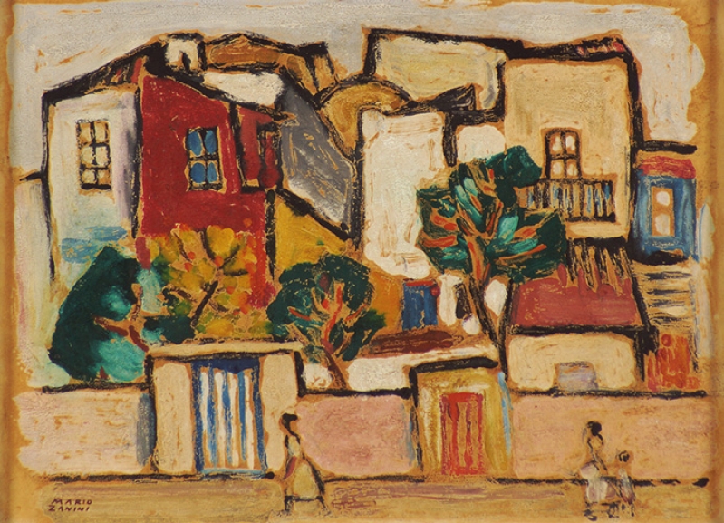 Mário Zanini (São Paulo SP 1907 - idem 1971). Pintor, decorador, ceramista, professor. Aos 13 anos, inicia curso de pintura da Escola Profissional Masculina do Brás, em São Paulo. Trabalha como letrista na Companhia Antarctica Paulista, entre 1922 e 1924. Em 1924, matricula-se no curso noturno de desenho e artes do Liceu de Artes e Ofícios de São Paulo - Laosp, que conclui em 1926. Conhece Alfredo Volpi em 1927 e no ano seguinte estuda com o pintor Georg Elpons. Trabalha no escritório de decoração de Francisco Rebolo entre 1933 e 1938. Em 1935, instala-se no palacete Santa Helena, na praça da Sé, onde divide, a partir de 1936, uma sala com Manoel Martins e Clóvis Graciano. Da reunião desses e de outros artistas, surge o Grupo Santa Helena. Em 1940 recebe medalha de prata no 46º Salão Nacional de Belas Artes - SNBA e é convidado por Rossi Osir a trabalhar em seu ateliê de azulejos artísticos, o Osirarte. Sua primeira exposição individual acontece em 1944, na galeria da Livraria Brasiliense, em São Paulo. Em 1950, viaja por seis meses pela Itália, em companhia de Volpi e Osir. Ensina gravura na Associação Paulista de Belas Artes e na Escola Carlos de Campos em 1958. A partir de 1968 leciona na Faculdade de Belas Artes de São Paulo. Sua família doa 108 de suas obras ao Museu de Arte Contemporânea da Universidade de São Paulo - MAC/USP em 1974.