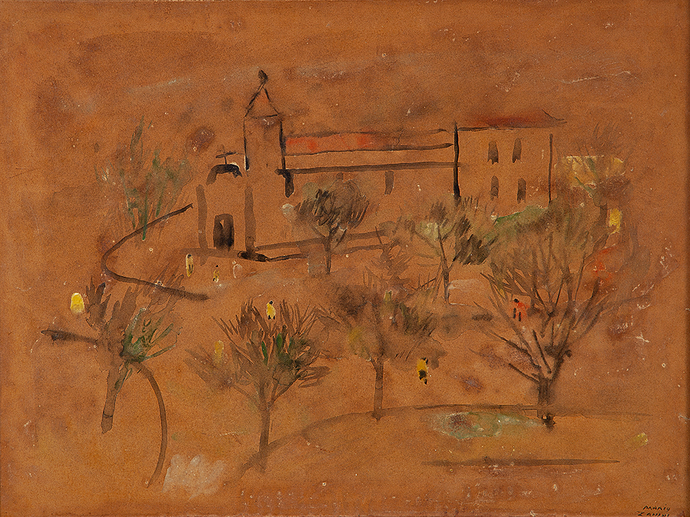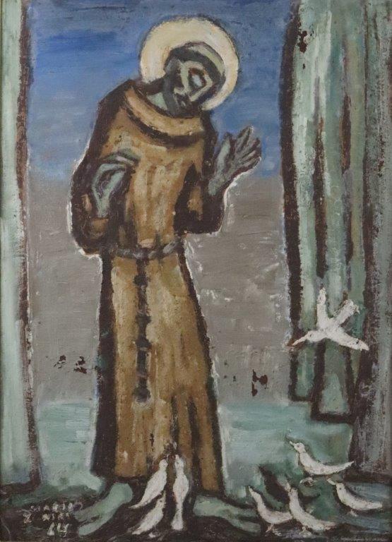 Mário Zanini (São Paulo SP 1907 - idem 1971). Pintor, decorador, ceramista, professor. Aos 13 anos, inicia curso de pintura da Escola Profissional Masculina do Brás, em São Paulo. Trabalha como letrista na Companhia Antarctica Paulista, entre 1922 e 1924. Em 1924, matricula-se no curso noturno de desenho e artes do Liceu de Artes e Ofícios de São Paulo - Laosp, que conclui em 1926. Conhece Alfredo Volpi em 1927 e no ano seguinte estuda com o pintor Georg Elpons. Trabalha no escritório de decoração de Francisco Rebolo entre 1933 e 1938. Em 1935, instala-se no palacete Santa Helena, na praça da Sé, onde divide, a partir de 1936, uma sala com Manoel Martins e Clóvis Graciano. Da reunião desses e de outros artistas, surge o Grupo Santa Helena. Em 1940 recebe medalha de prata no 46º Salão Nacional de Belas Artes - SNBA e é convidado por Rossi Osir a trabalhar em seu ateliê de azulejos artísticos, o Osirarte. Sua primeira exposição individual acontece em 1944, na galeria da Livraria Brasiliense, em São Paulo. Em 1950, viaja por seis meses pela Itália, em companhia de Volpi e Osir. Ensina gravura na Associação Paulista de Belas Artes e na Escola Carlos de Campos em 1958. A partir de 1968 leciona na Faculdade de Belas Artes de São Paulo. Sua família doa 108 de suas obras ao Museu de Arte Contemporânea da Universidade de São Paulo - MAC/USP em 1974.