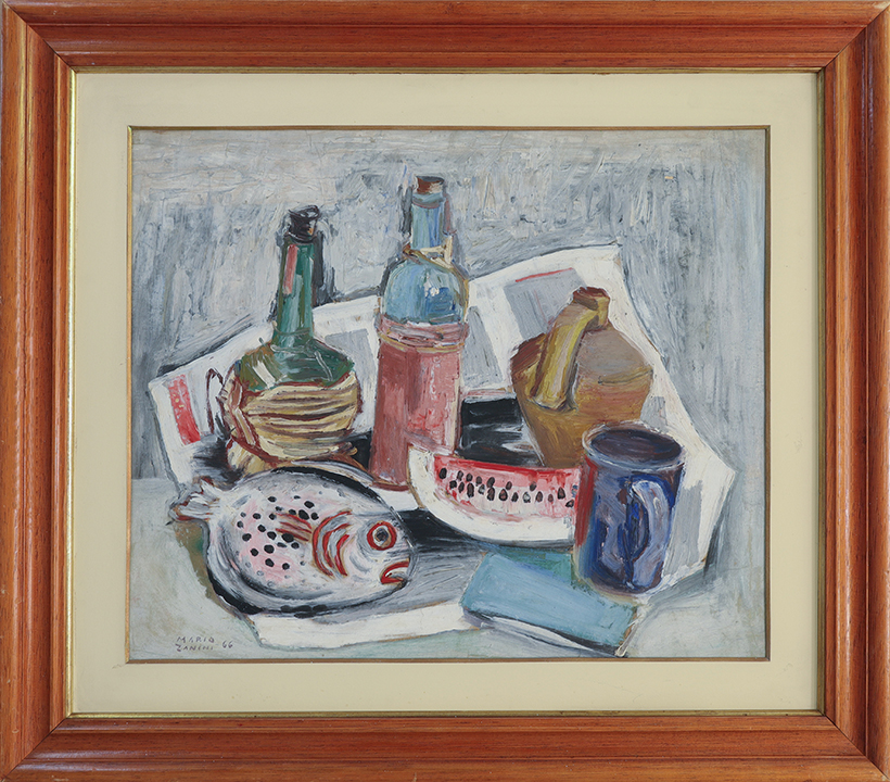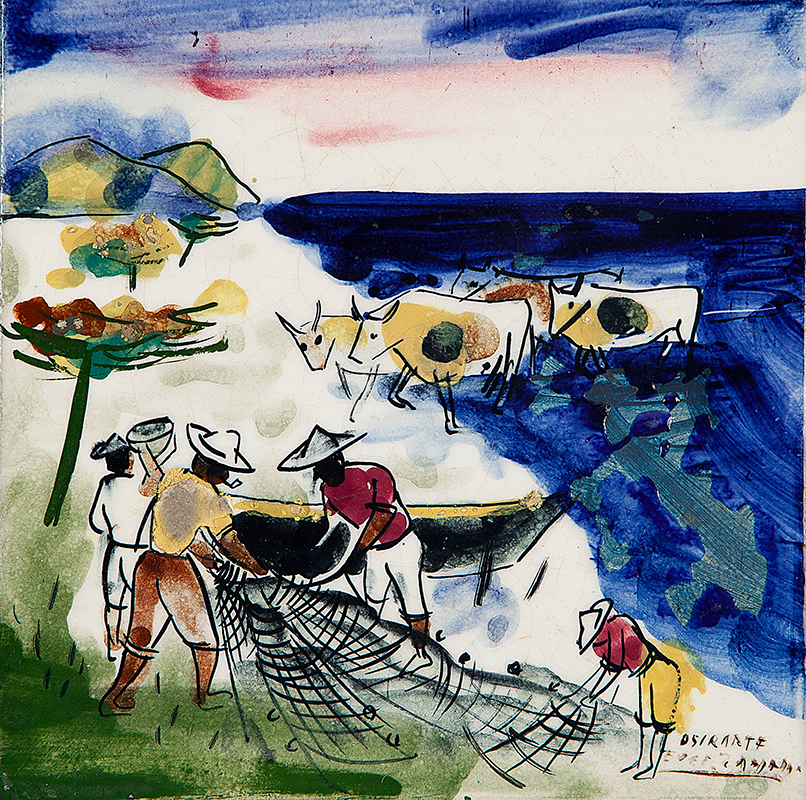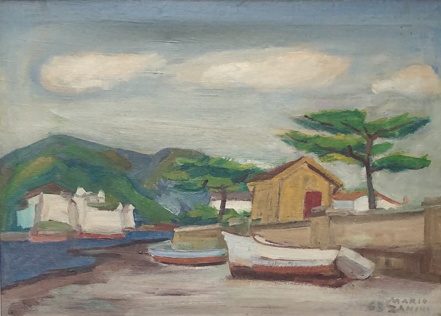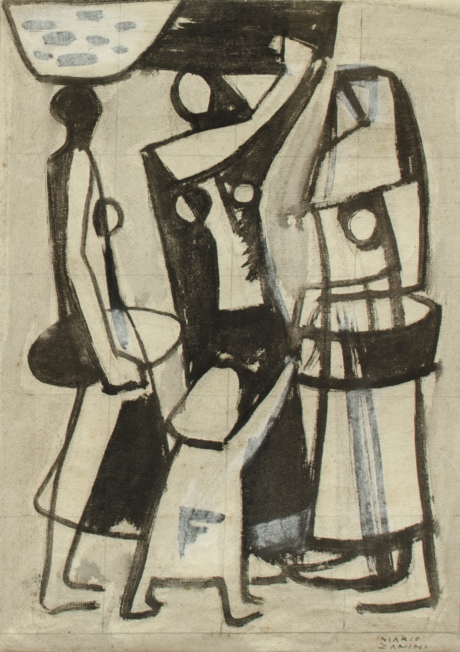 Mário Zanini (São Paulo SP 1907 - idem 1971). Pintor, decorador, ceramista, professor. Aos 13 anos, inicia curso de pintura da Escola Profissional Masculina do Brás, em São Paulo. Trabalha como letrista na Companhia Antarctica Paulista, entre 1922 e 1924. Em 1924, matricula-se no curso noturno de desenho e artes do Liceu de Artes e Ofícios de São Paulo - Laosp, que conclui em 1926. Conhece Alfredo Volpi em 1927 e no ano seguinte estuda com o pintor Georg Elpons. Trabalha no escritório de decoração de Francisco Rebolo entre 1933 e 1938. Em 1935, instala-se no palacete Santa Helena, na praça da Sé, onde divide, a partir de 1936, uma sala com Manoel Martins e Clóvis Graciano. Da reunião desses e de outros artistas, surge o Grupo Santa Helena. Em 1940 recebe medalha de prata no 46º Salão Nacional de Belas Artes - SNBA e é convidado por Rossi Osir a trabalhar em seu ateliê de azulejos artísticos, o Osirarte. Sua primeira exposição individual acontece em 1944, na galeria da Livraria Brasiliense, em São Paulo. Em 1950, viaja por seis meses pela Itália, em companhia de Volpi e Osir. Ensina gravura na Associação Paulista de Belas Artes e na Escola Carlos de Campos em 1958. A partir de 1968 leciona na Faculdade de Belas Artes de São Paulo. Sua família doa 108 de suas obras ao Museu de Arte Contemporânea da Universidade de São Paulo - MAC/USP em 1974.