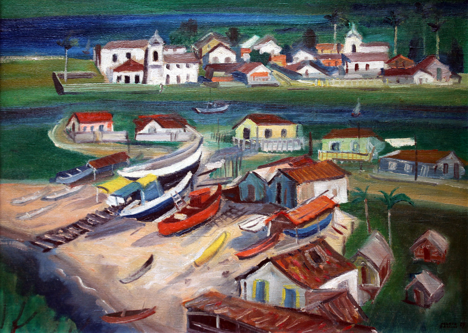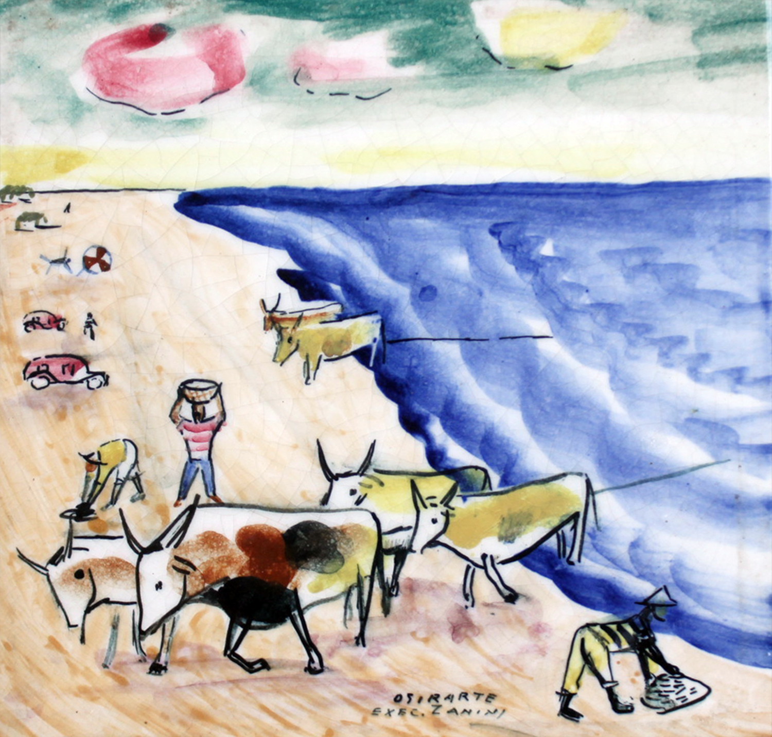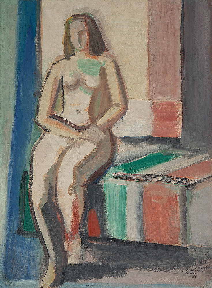 Mário Zanini (São Paulo SP 1907 - idem 1971). Pintor, decorador, ceramista, professor. Aos 13 anos, inicia curso de pintura da Escola Profissional Masculina do Brás, em São Paulo. Trabalha como letrista na Companhia Antarctica Paulista, entre 1922 e 1924. Em 1924, matricula-se no curso noturno de desenho e artes do Liceu de Artes e Ofícios de São Paulo - Laosp, que conclui em 1926. Conhece Alfredo Volpi em 1927 e no ano seguinte estuda com o pintor Georg Elpons. Trabalha no escritório de decoração de Francisco Rebolo entre 1933 e 1938. Em 1935, instala-se no palacete Santa Helena, na praça da Sé, onde divide, a partir de 1936, uma sala com Manoel Martins e Clóvis Graciano. Da reunião desses e de outros artistas, surge o Grupo Santa Helena. Em 1940 recebe medalha de prata no 46º Salão Nacional de Belas Artes - SNBA e é convidado por Rossi Osir a trabalhar em seu ateliê de azulejos artísticos, o Osirarte. Sua primeira exposição individual acontece em 1944, na galeria da Livraria Brasiliense, em São Paulo. Em 1950, viaja por seis meses pela Itália, em companhia de Volpi e Osir. Ensina gravura na Associação Paulista de Belas Artes e na Escola Carlos de Campos em 1958. A partir de 1968 leciona na Faculdade de Belas Artes de São Paulo. Sua família doa 108 de suas obras ao Museu de Arte Contemporânea da Universidade de São Paulo - MAC/USP em 1974.