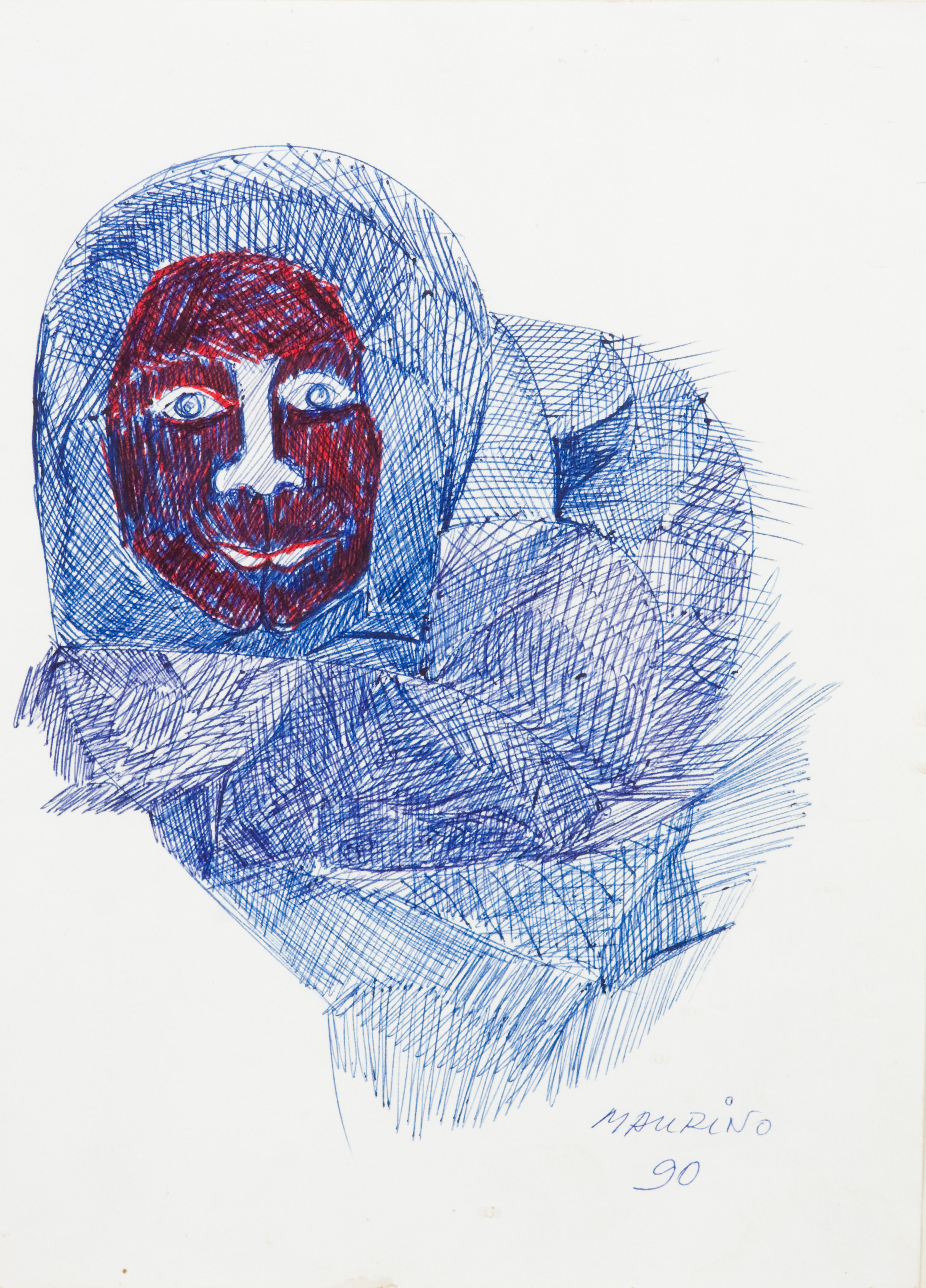 Maurino Araújo - Anjo negro - 30 x 20 cm - Desenho a caneta - Assinatura canto inferior direito e Data 2017