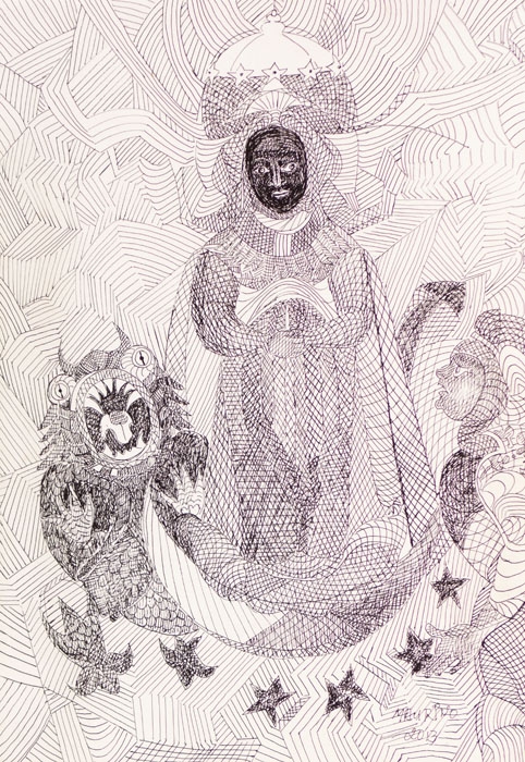 Maurino Araújo - Santana Mestra - 30 x 20 cm - Desenho a caneta - Assinatura canto inferior direito e Data 2017