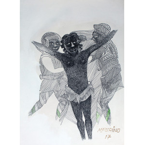 Maurino de Araujo - Três Figuras - Técnica mista sobre papel - 42 alt x 30 larg (cm) - acid - 2017