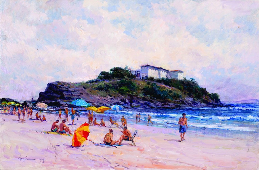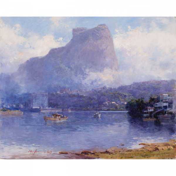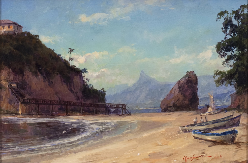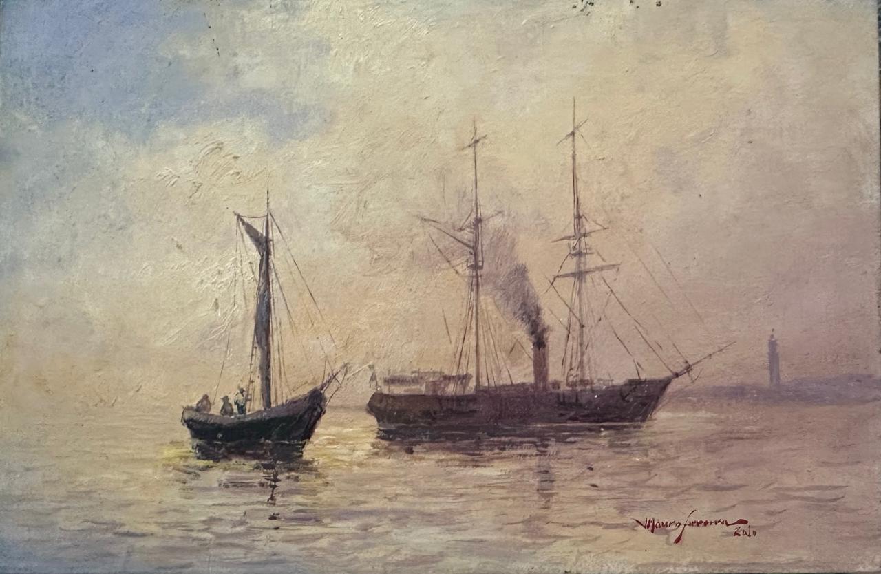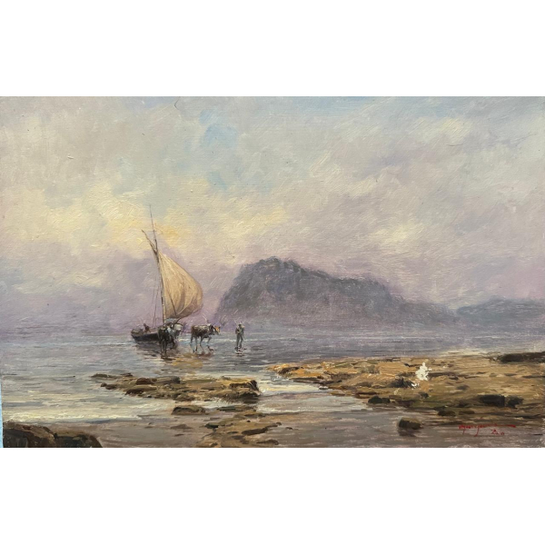 Mauro Ferreira - Puxando a falua - Homenagem a Raimundo Cela - 20 x 30 cm - Óleo sobre eucatex - Assinatura canto inferior direito e Data 2010