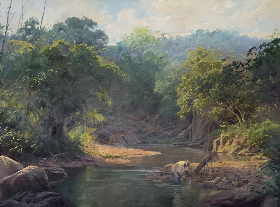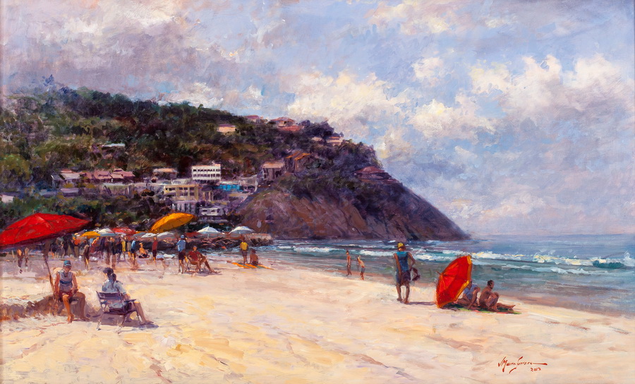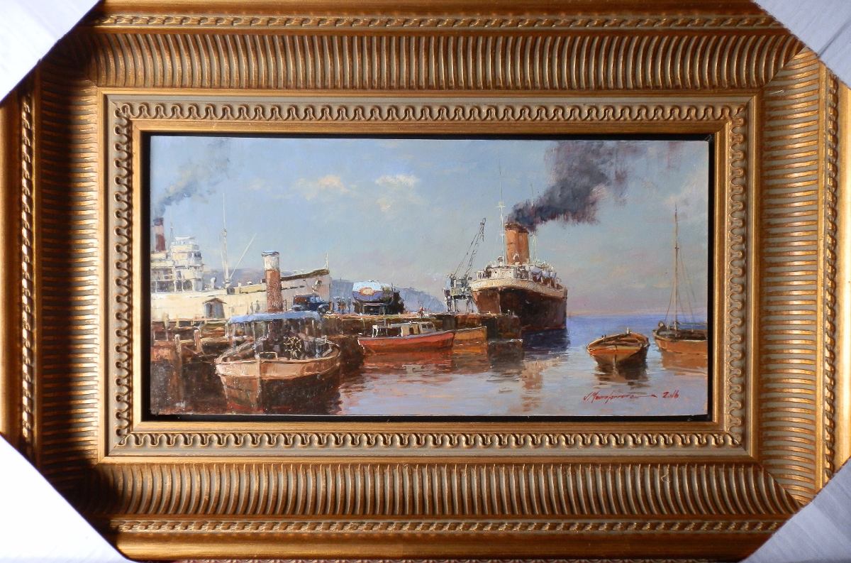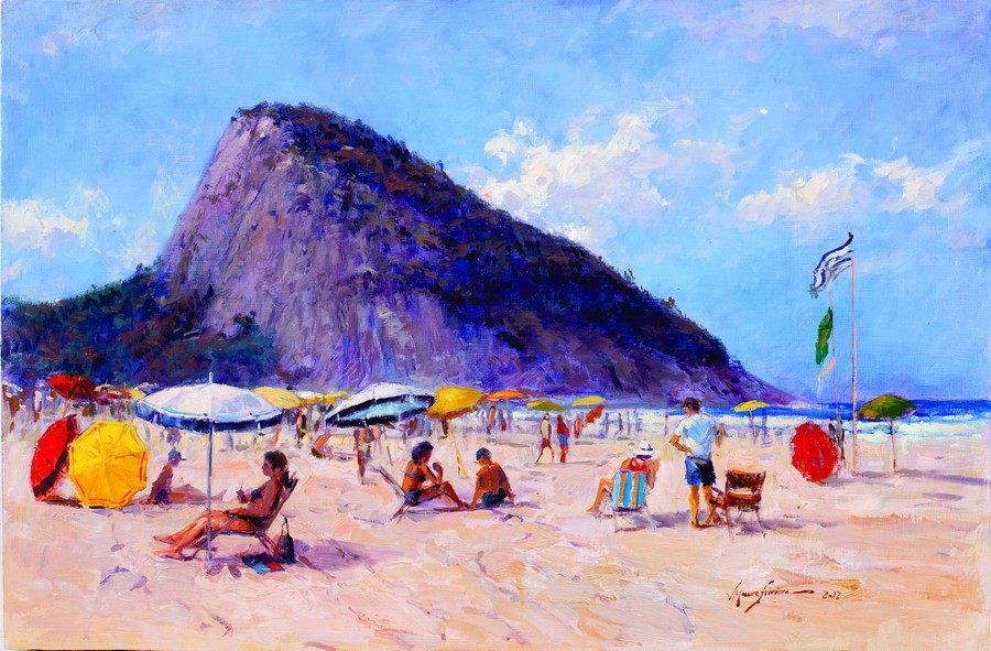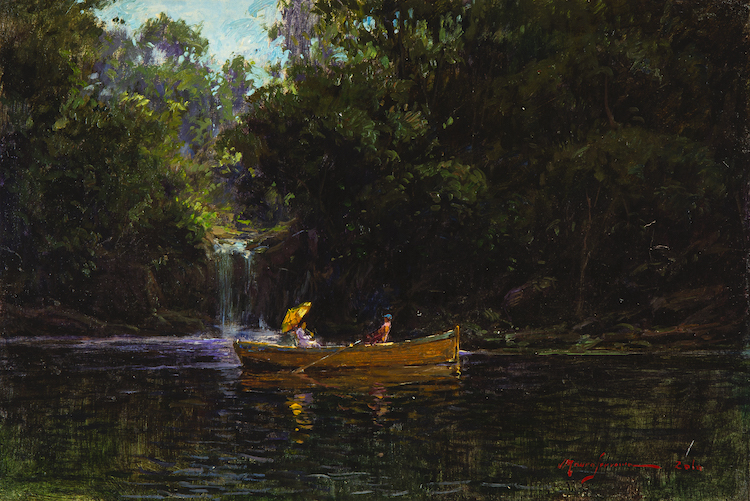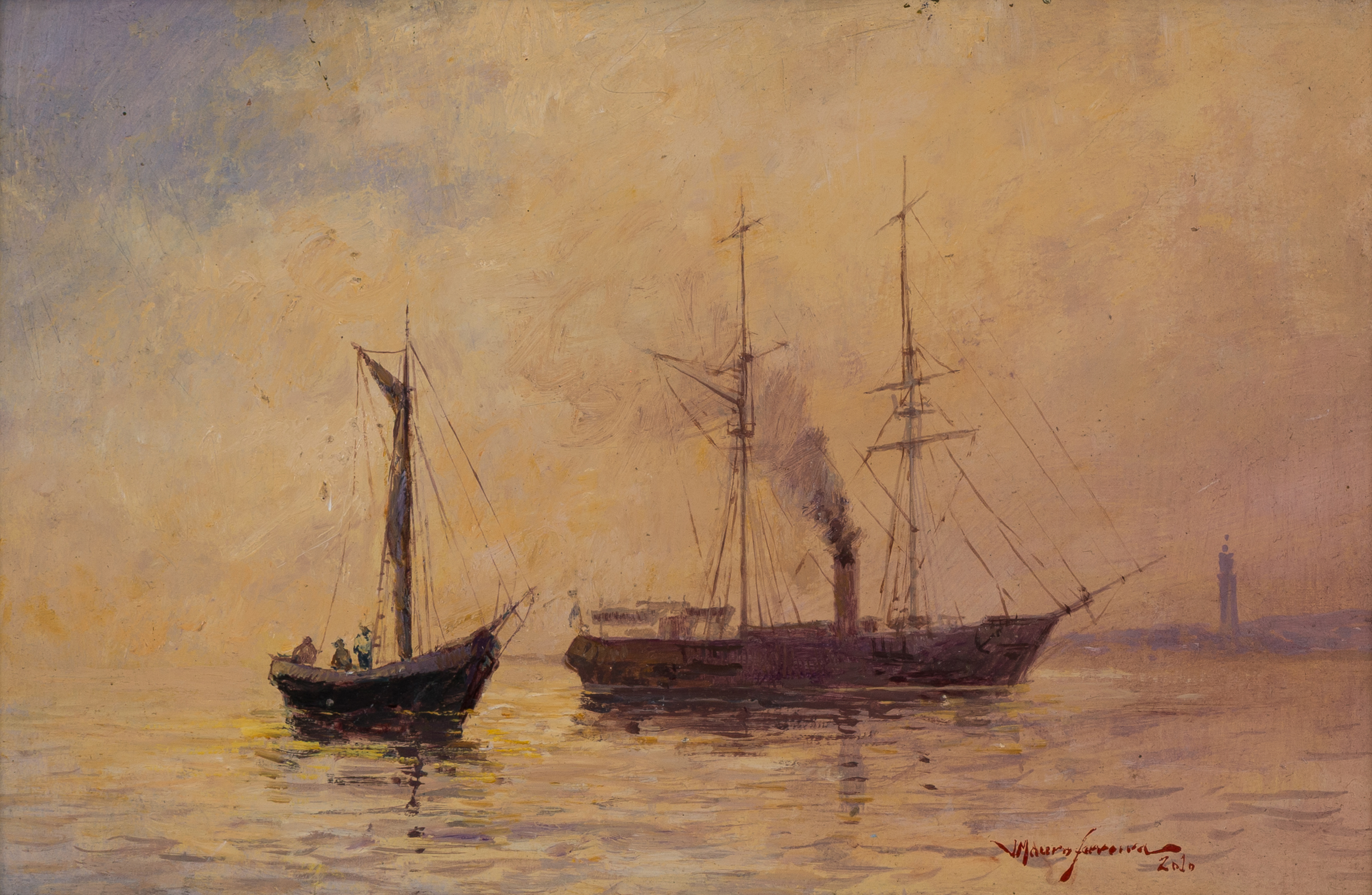 Mauro Ferreira - Puxando a falua - Homenagem a Raimundo Cela - 20 x 30 cm - Óleo sobre eucatex - Assinatura canto inferior direito e Data 2010