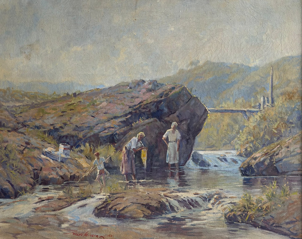 Mauro Ferreira - Lavadeiras ao Sol - 49 x 61 cm - Óleo Sobre Tela - Ass. Canto Inferior Esquerdo e Dat. 1985