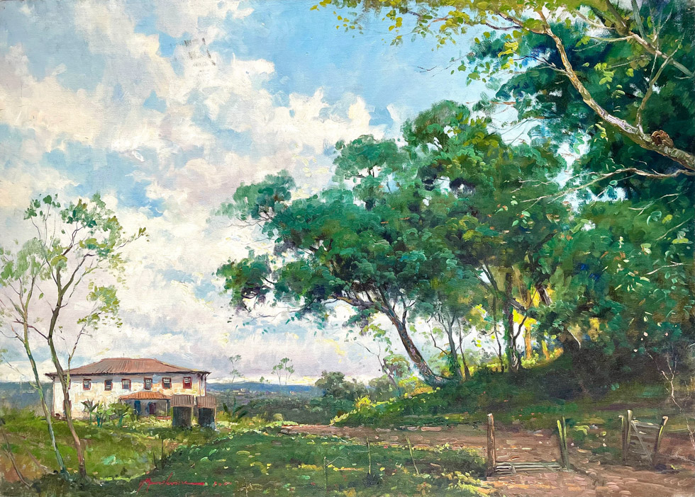 Mauro Ferreira - Fazenda Mineira - 50 x 70 cm - Óleos Sobre Tela Sobre Eucatex - Ass. Canto Inferior Esquerdo e Dat. 2000