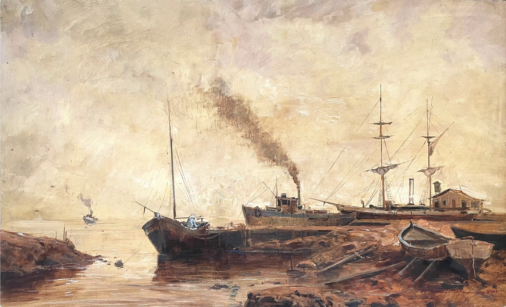 Mauro Ferreira - Cais de Desembarque - 46 x 75 cm - Óleo Sobre MDF - Ass. Canto Inferior Direito e Dat. 2000