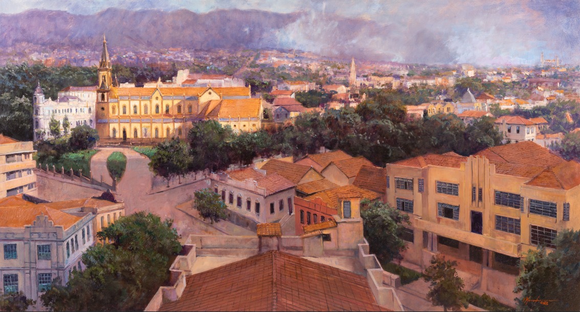 Mauro Ferreira - Vista da Igreja São José (BH/MG) – Circa 1930 – 75,5 x 140 cm – Óleo Sobre Tela – Ass. Canto Inferior Direito e Dat. 2018