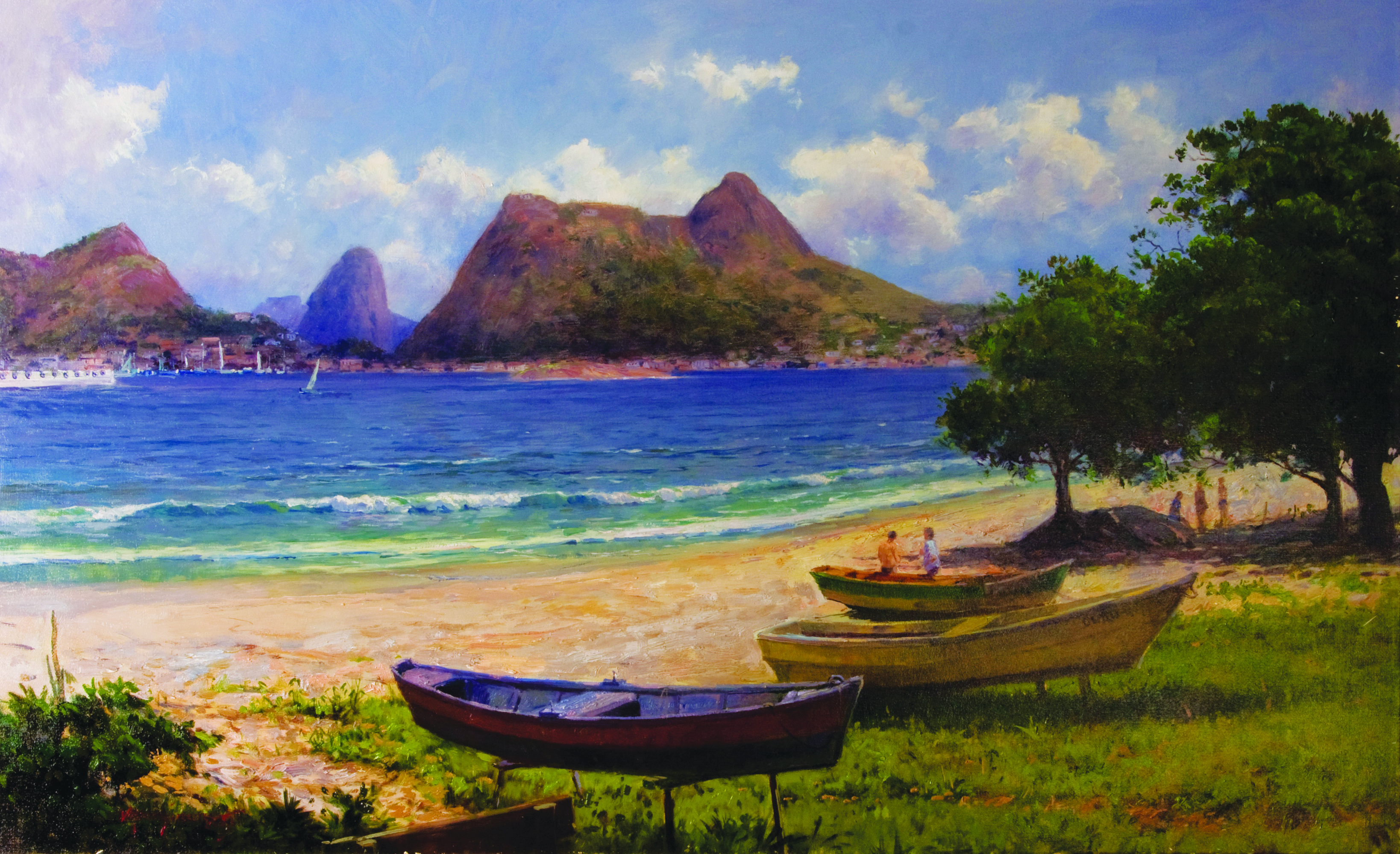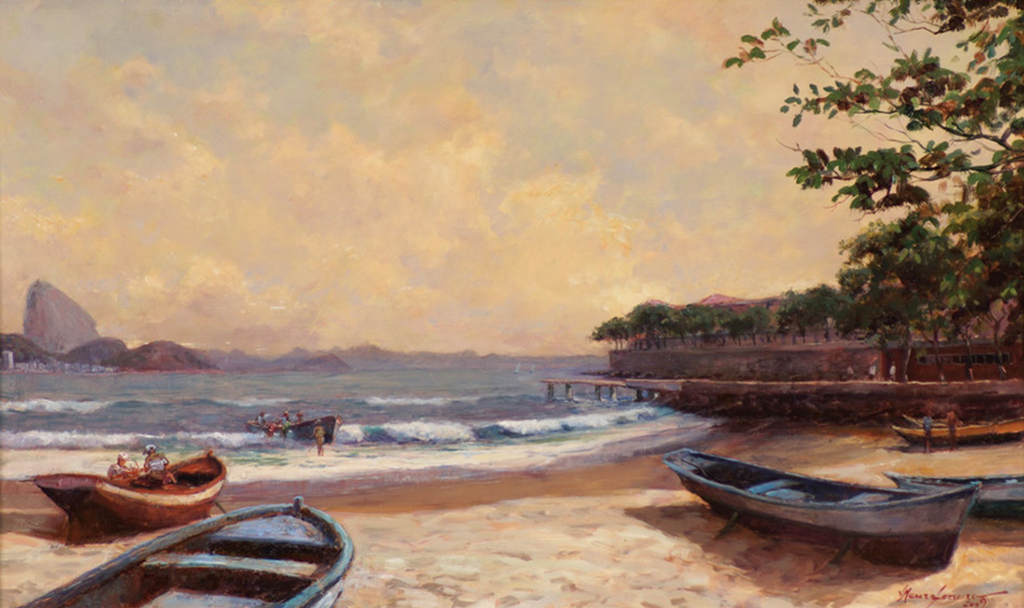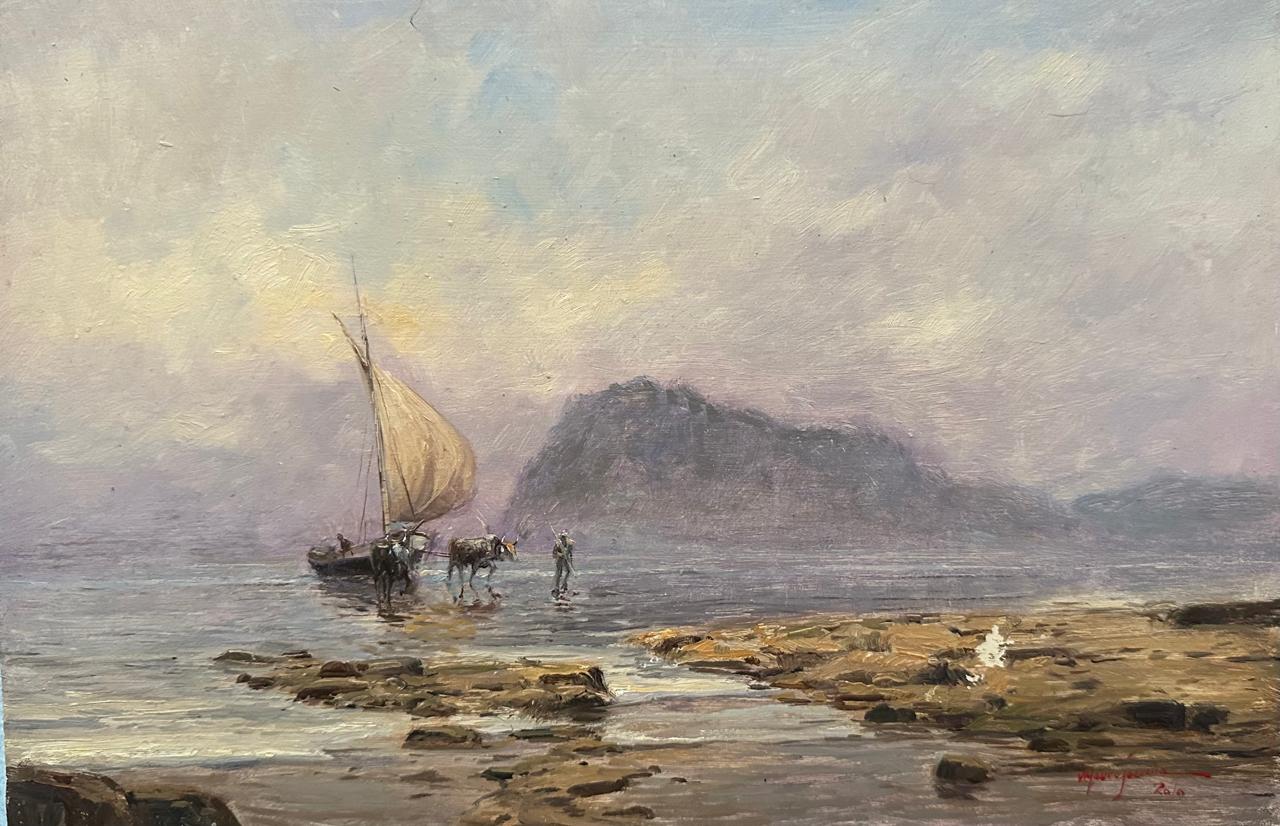 Mauro Ferreira - Puxando a falua - Homenagem a Raimundo Cela - 20 x 30 cm - Óleo sobre eucatex - Assinatura canto inferior direito e Data 2010