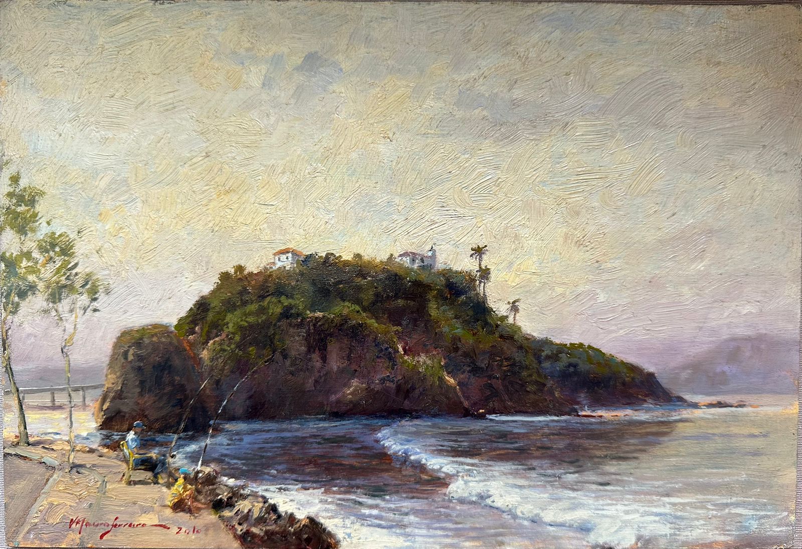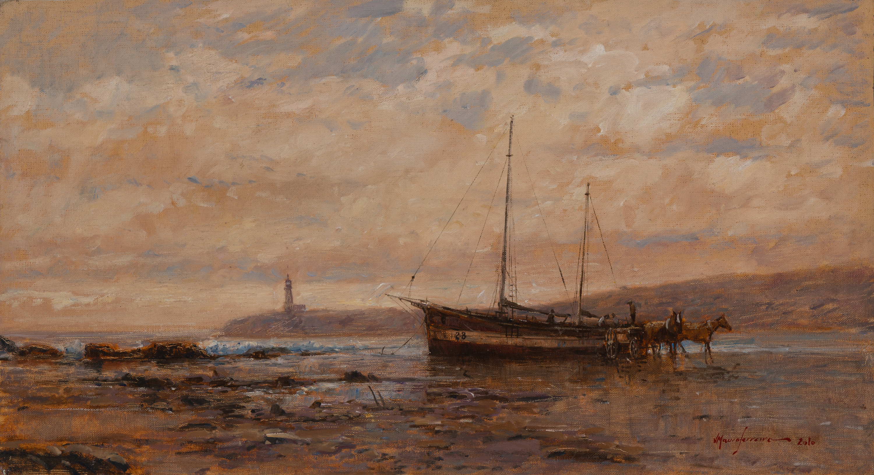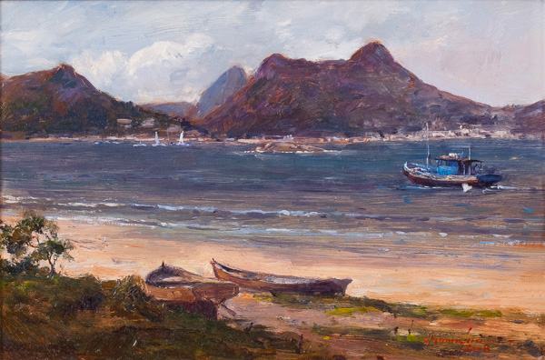 Mauro Ferreira - Puxando a falua - Homenagem a Raimundo Cela - 20 x 30 cm - Óleo sobre eucatex - Assinatura canto inferior direito e Data 2010