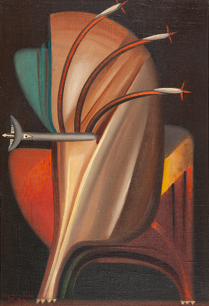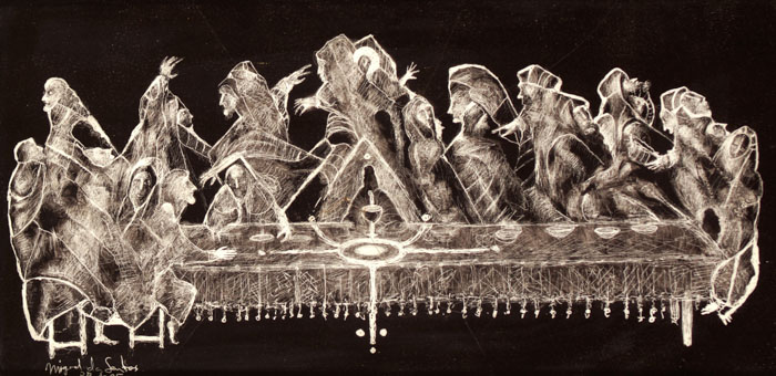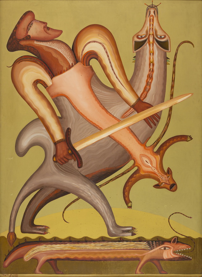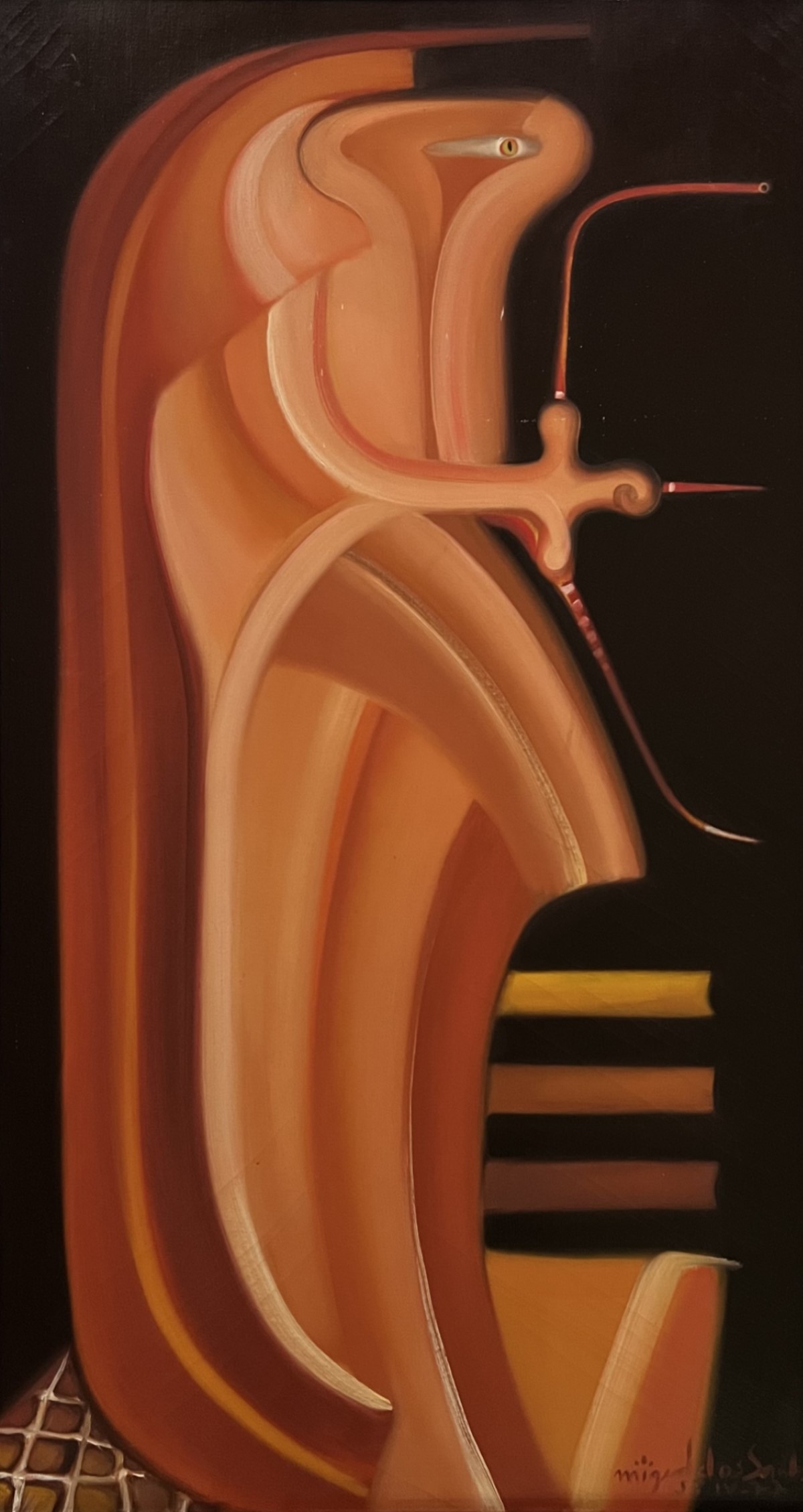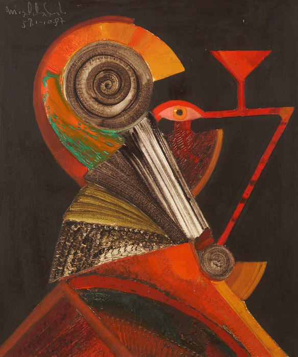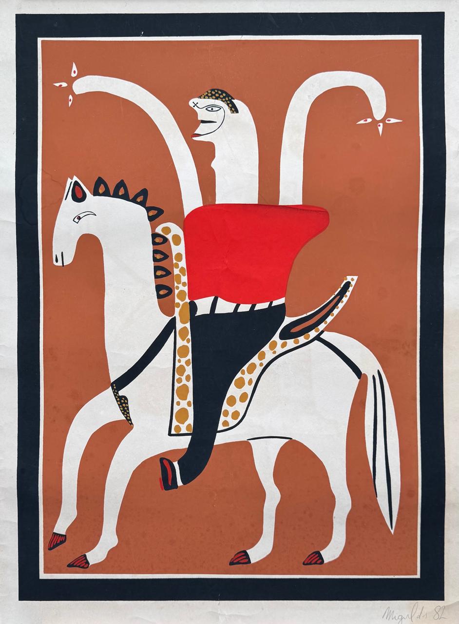 Miguel Dos Santos (1944) nasceu Caruaru-PE mas, desde 1960, reside em João Pessoa, PB, onde possui ateliê. O versátil artista (ceramista e pintor) também esculpe peças em mármore e madeira. Já participou de dezenas de exposições individuais e coletivas em importantes galerias e museus no Brasil e no exterior: Rio de Janeiro, São Paulo, Porto Alegre, João Pessoa, Brasília e também na Argentina, Bélgica, Chile, Colômbia, Dinamarca, Estados Unidos e Nigéria. Miguel libera sua fantasia criando esculturas personalíssimas voltadas para o realismo mágico, enamorado pelos mitos nordestinos, explorando com competência a composição figurativa de animais míticos ou fantásticos vestígios do passado com saudações a muitos deuses. A influência Africana é patente com a confecção de mascaras ritualísticas. O esmero de sua técnica de modelagem e de decoração se traduz em peças de pequenas e grandes dimensões.