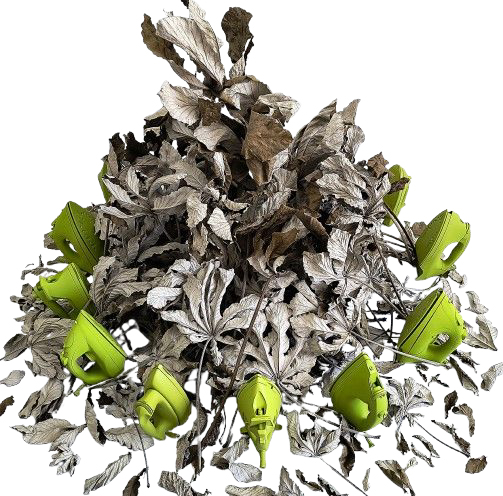 Milton Blaser Antropo Morfias (avessos) 2025 folhas de embúba ferros elétricos e esmalte em spray 140x180x90