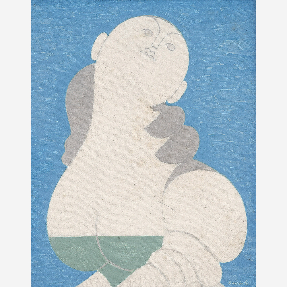 MILTON DACOSTA (1915–1988) – Figura na cidade. Óleo sobre placa. Pintor, desenhista, gravador e ilustrador brasileiro, um dos fundadores do Núcleo Bernardelli, com formação e atuação no Brasil, Estados Unidos e Europa, participante do Salon d’Automne e figura central do modernismo brasileiro, com fases que vão do construtivismo ao retorno ao figurativo a partir da década de 1960. Ass. CID. Dimensões: 24 × 34 cm.