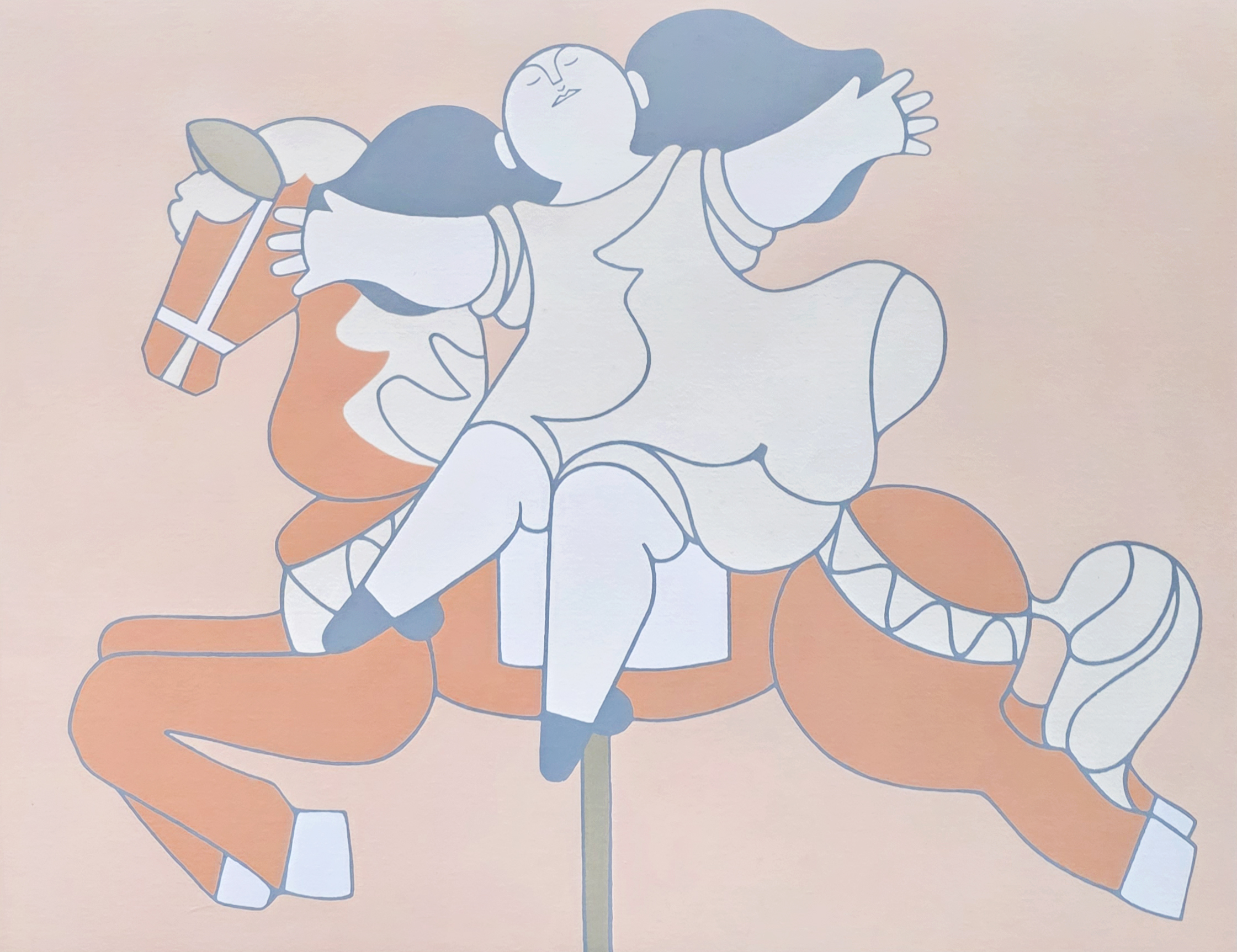 Milton Dacosta - Menina no carrossel - 102-175. Serigrafia, 70x85 cm, sem data, A.C.I.D. a lápis. Sem moldura