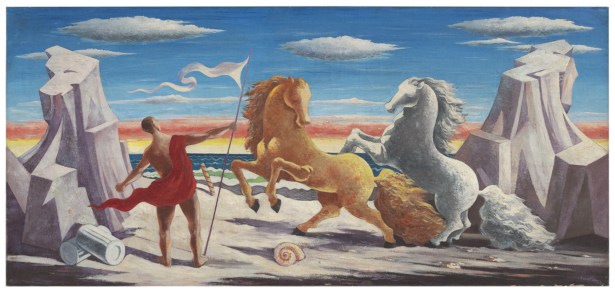 Milton Dacosta - Óleo sobre tela. - Assinado e datado 48 inferior direito. - 75 x 160 cm.