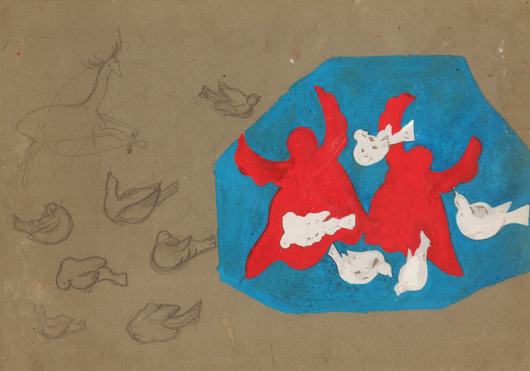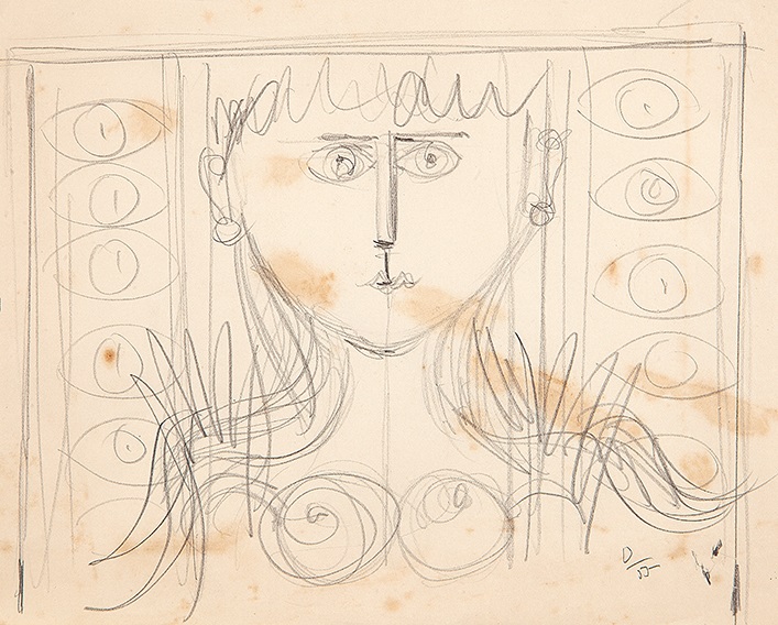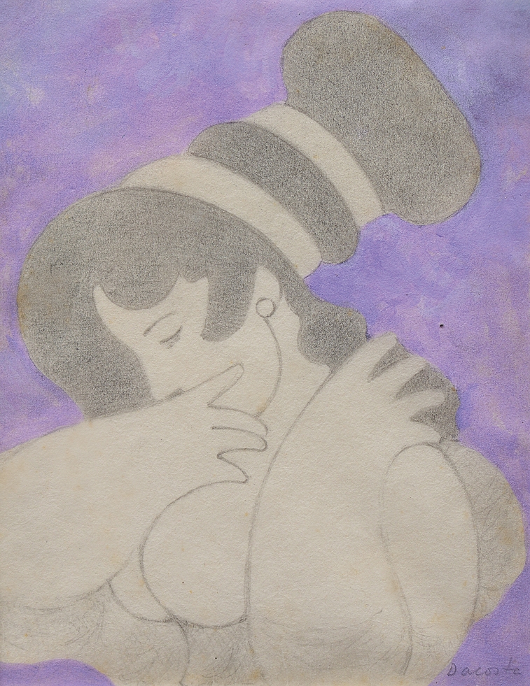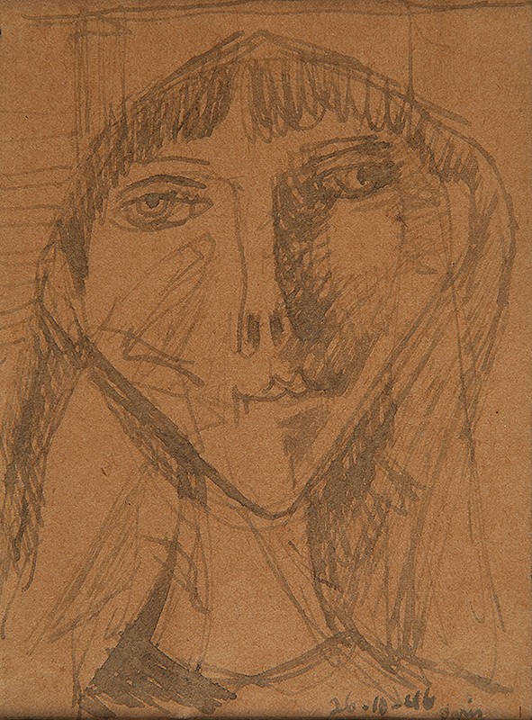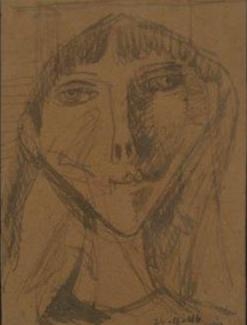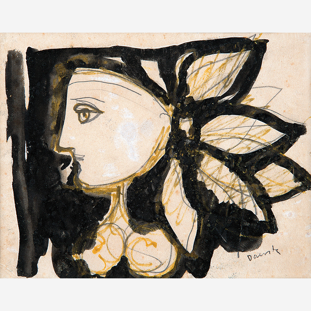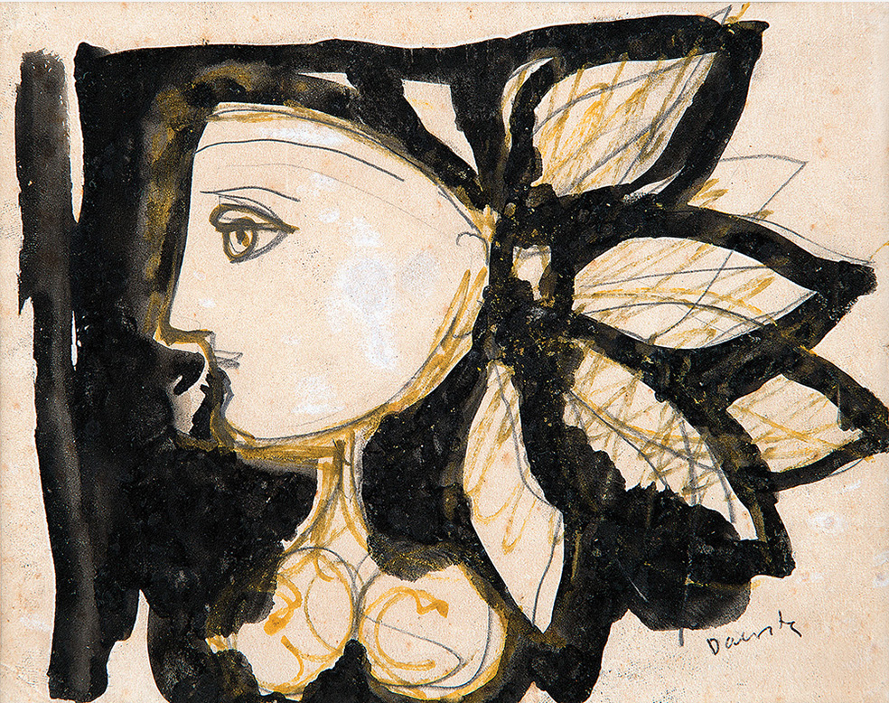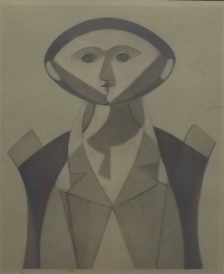 Milton Dacosta - Cabeça de Alexandre. Guache sobre papel, 18x11 cm, sem data, A.C.I. Com moldura