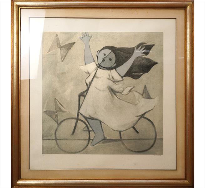 MILTON DACOSTA, Menina e Bicicleta, Serigrafia, Tiragem 109/150, ACID, 53 x 53cm (m.i) (com timbre do MAM na parte inferior direita)