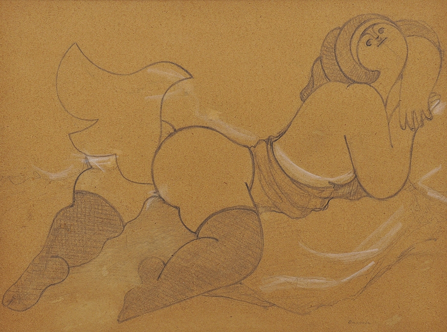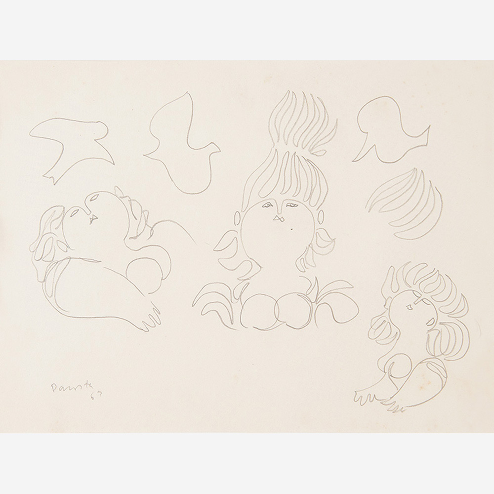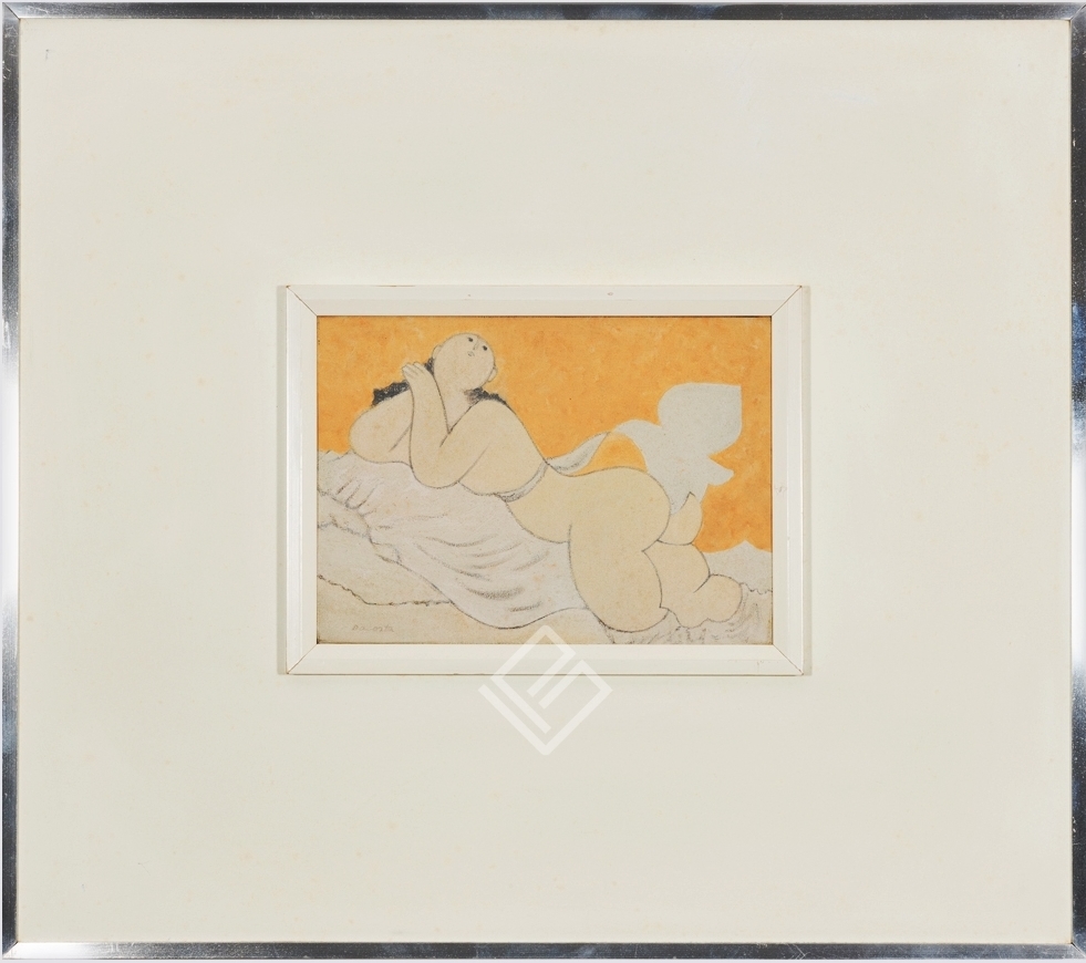 Milton Dacosta - Cabeça de Alexandre. Guache sobre papel, 18x11 cm, sem data, A.C.I. Com moldura