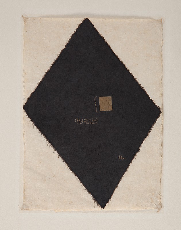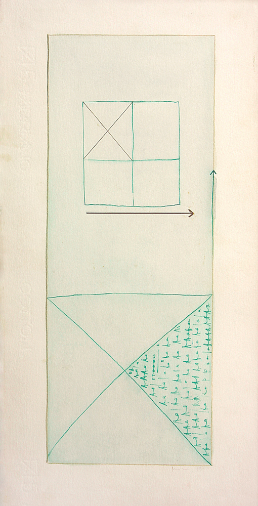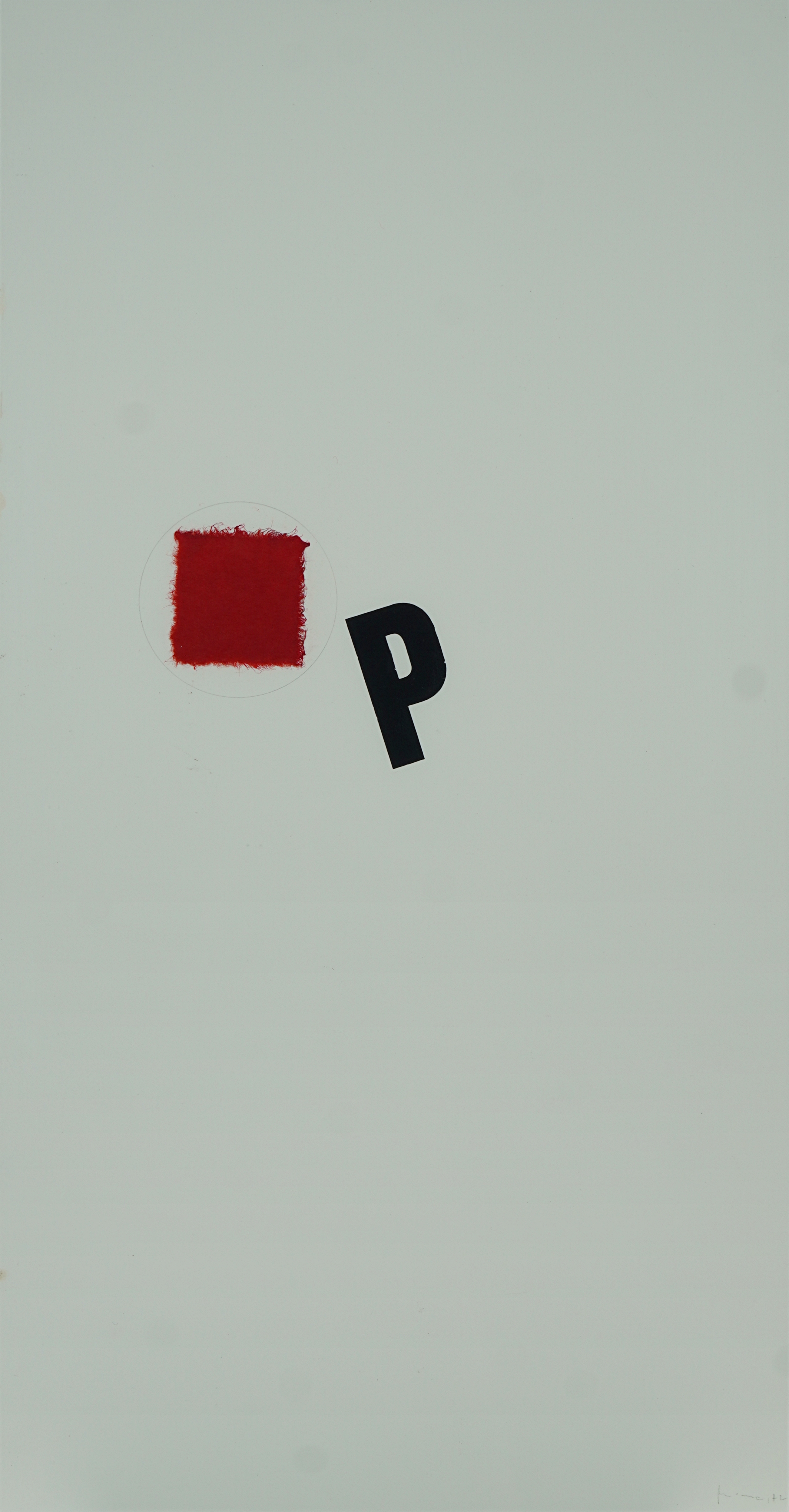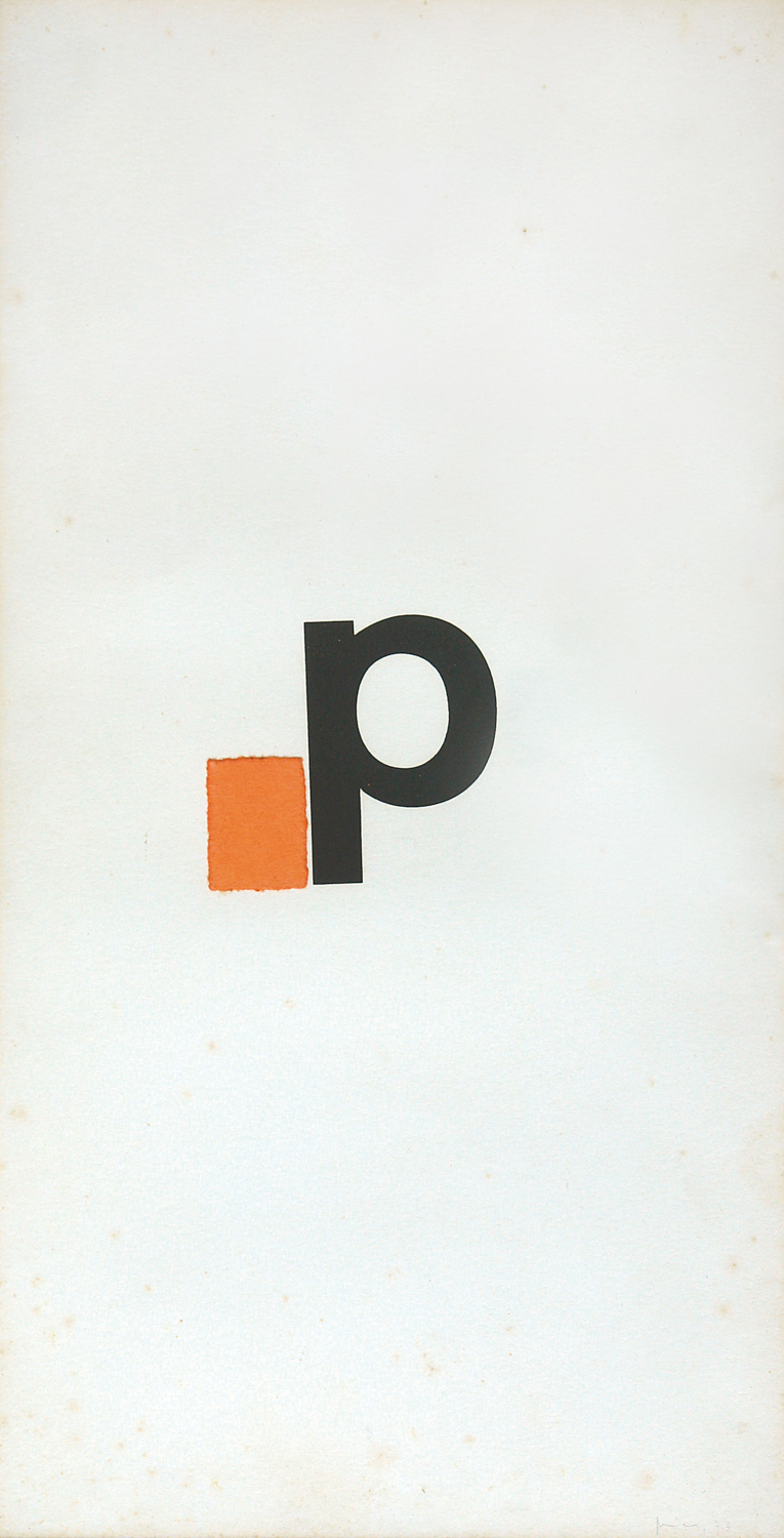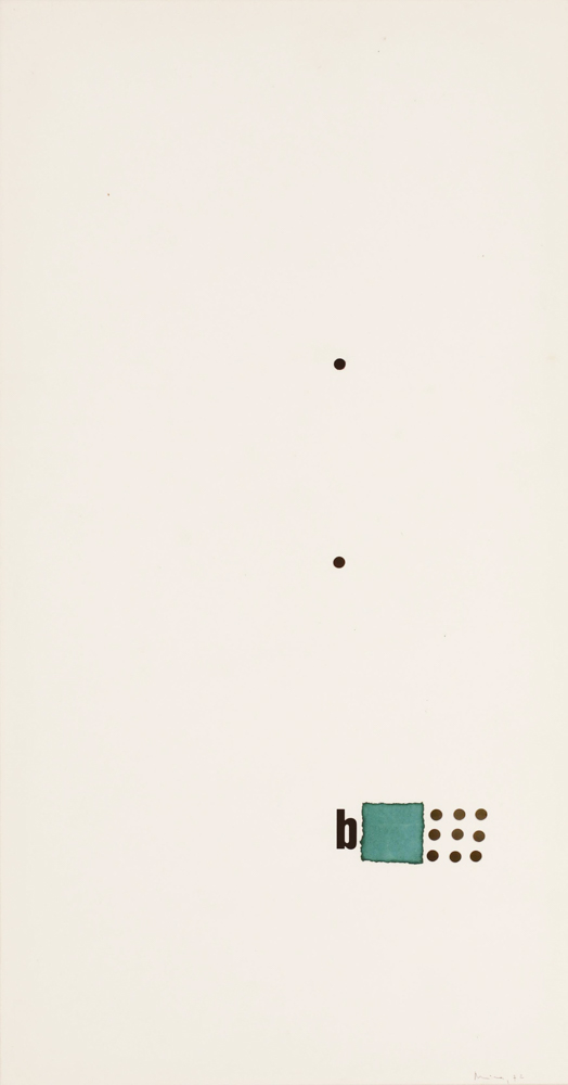Mira Schendel - Sem título, série Toquinho P - 1972 - Letraset e papel artesanal tingido com ecoline sobre papel - Assinado canto inferior direito - 48 x 24 cm.
