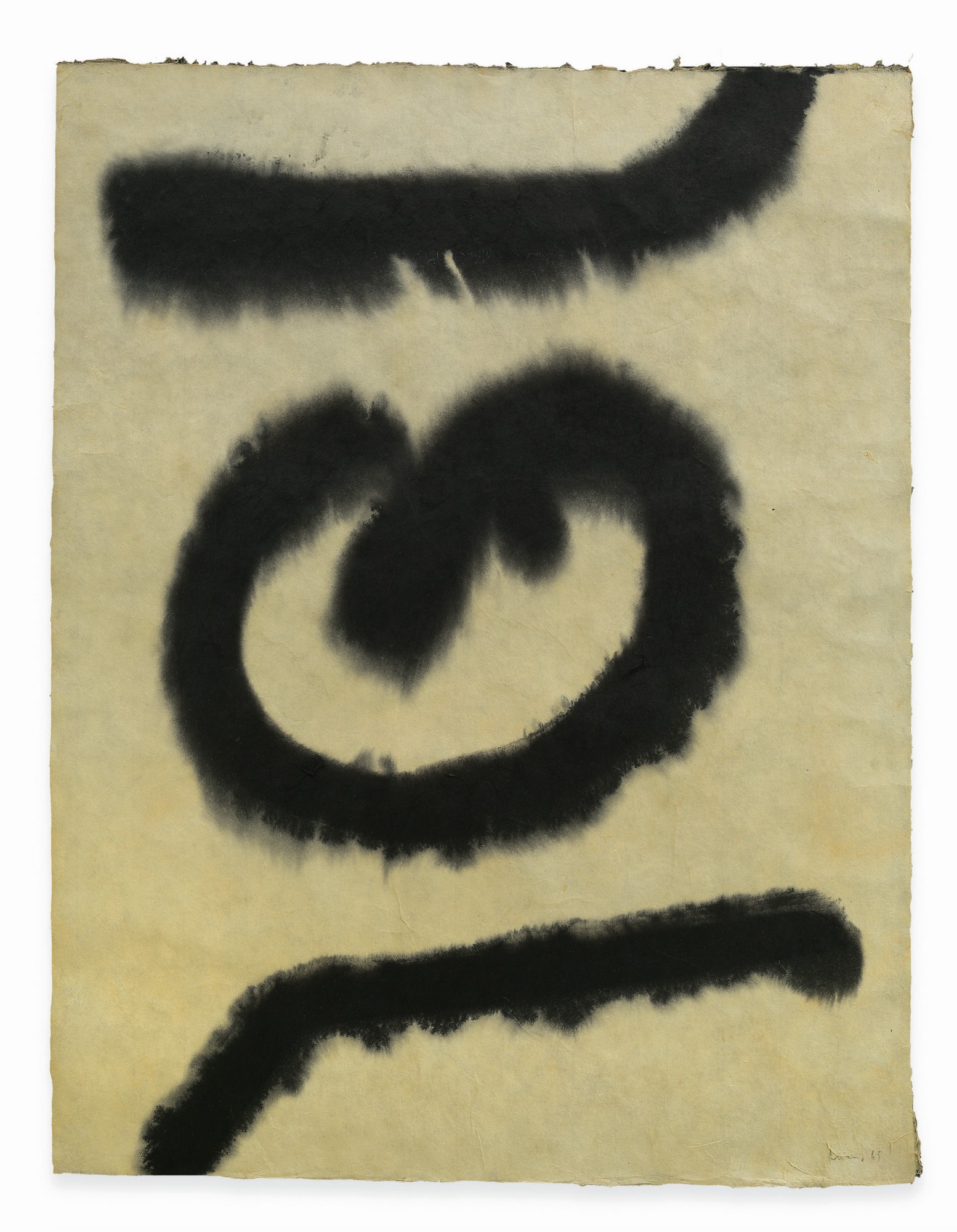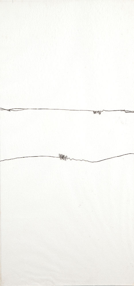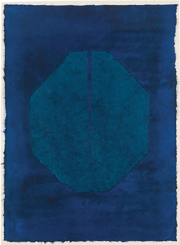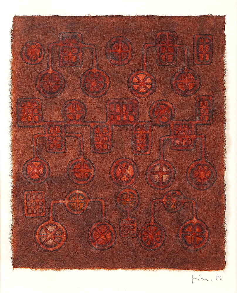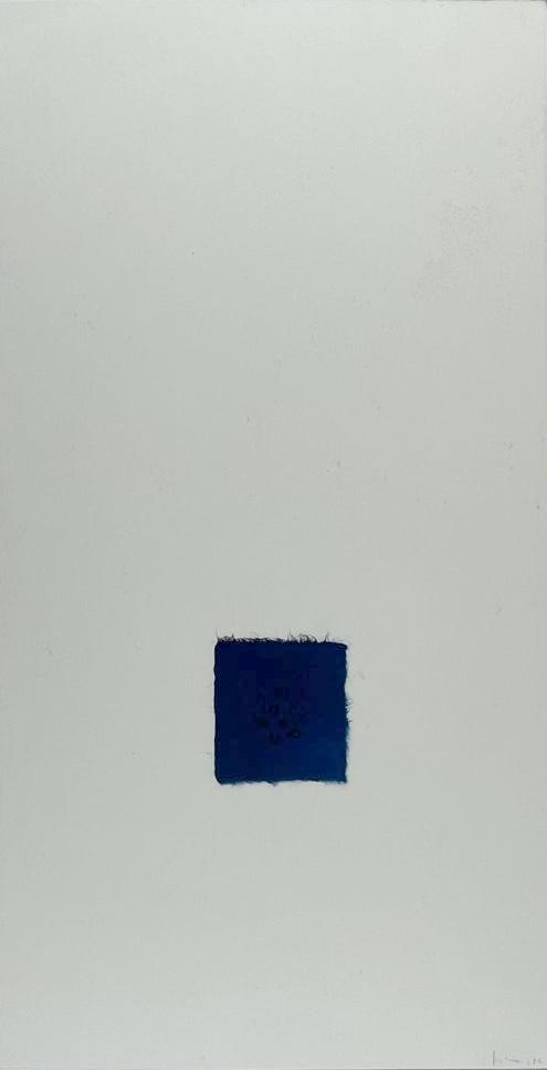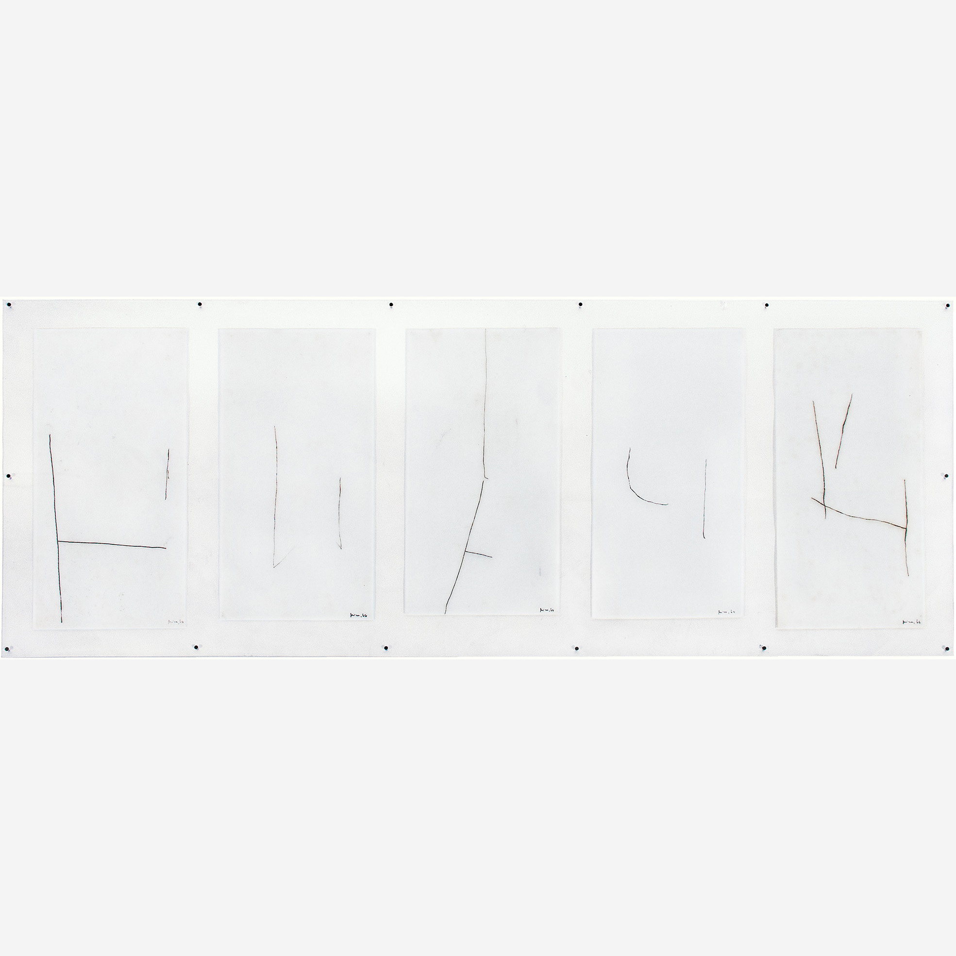 Mira Schendel - Sem título, série Toquinho P - 1972 - Letraset e papel artesanal tingido com ecoline sobre papel - Assinado canto inferior direito - 48 x 24 cm.