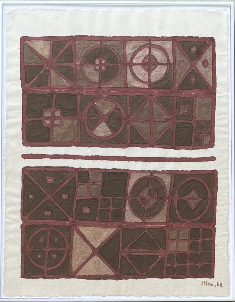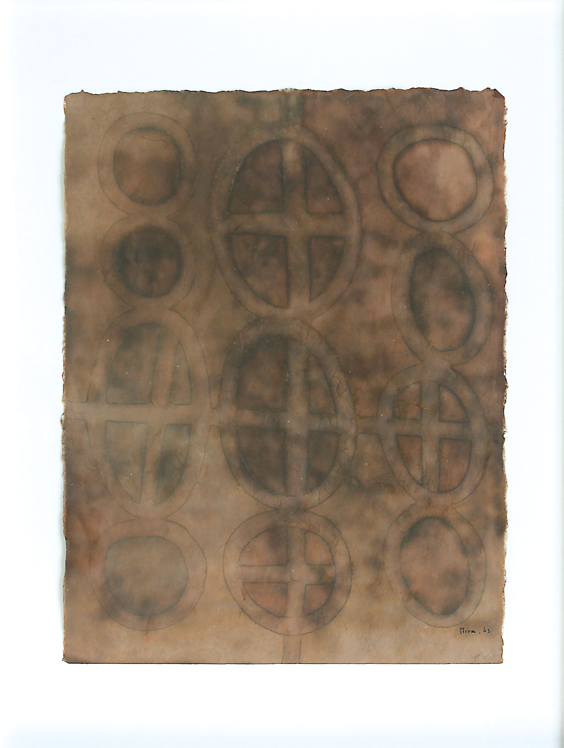 A produção artística de Mira Schendel, marcada pela constante experimentação, é constituída por múltiplas séries de trabalhos, experiências bastante diversas quanto a formato e dimensões, aos suportes escolhidos e à técnica adotada, mas que guardam entre si uma coerência no que diz respeito às questões por eles suscitadas. As obras de Mira Schendel geralmente não têm títulos, mas ela nomeia as séries, que funcionam como apelidos aos trabalhos. Na década de 1950, sua linguagem pictórica simplifica-se progressivamente, em trabalhos que exploram o tratamento dado à superfície.