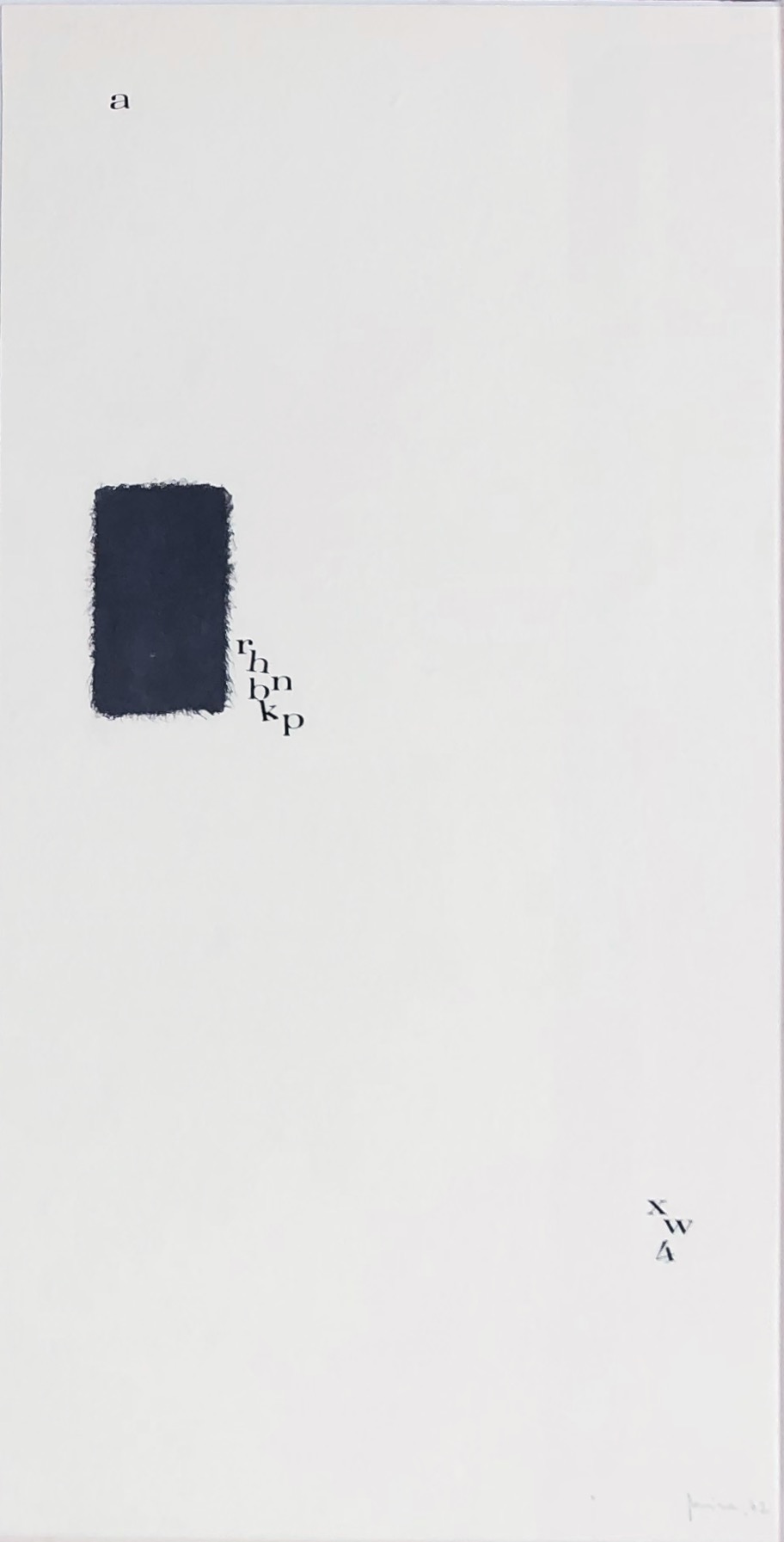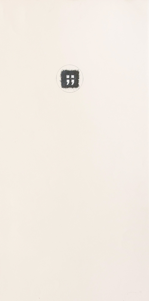 Mira Schendel - Sem título, série Toquinho P - 1972 - Letraset e papel artesanal tingido com ecoline sobre papel - Assinado canto inferior direito - 48 x 24 cm.