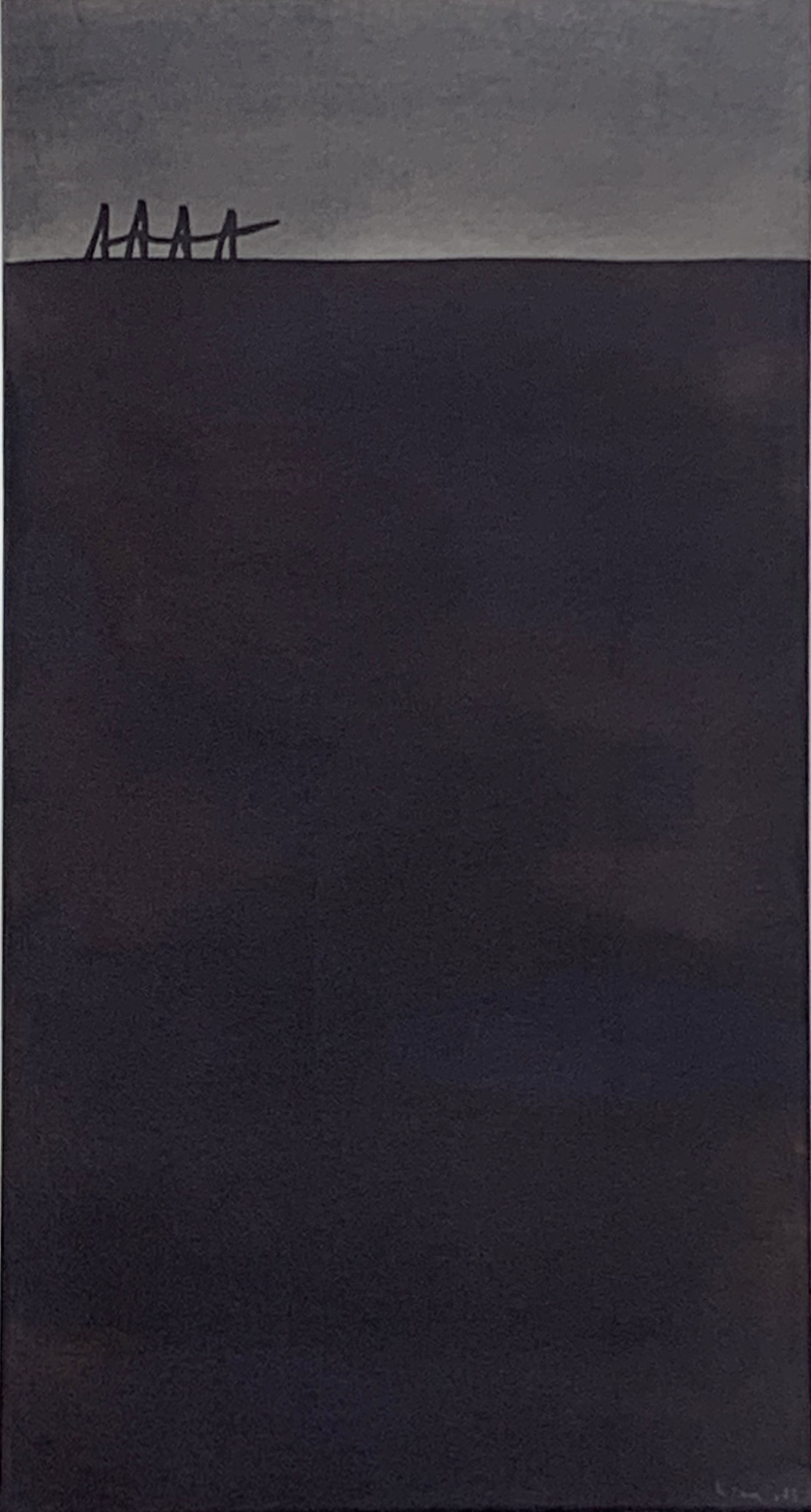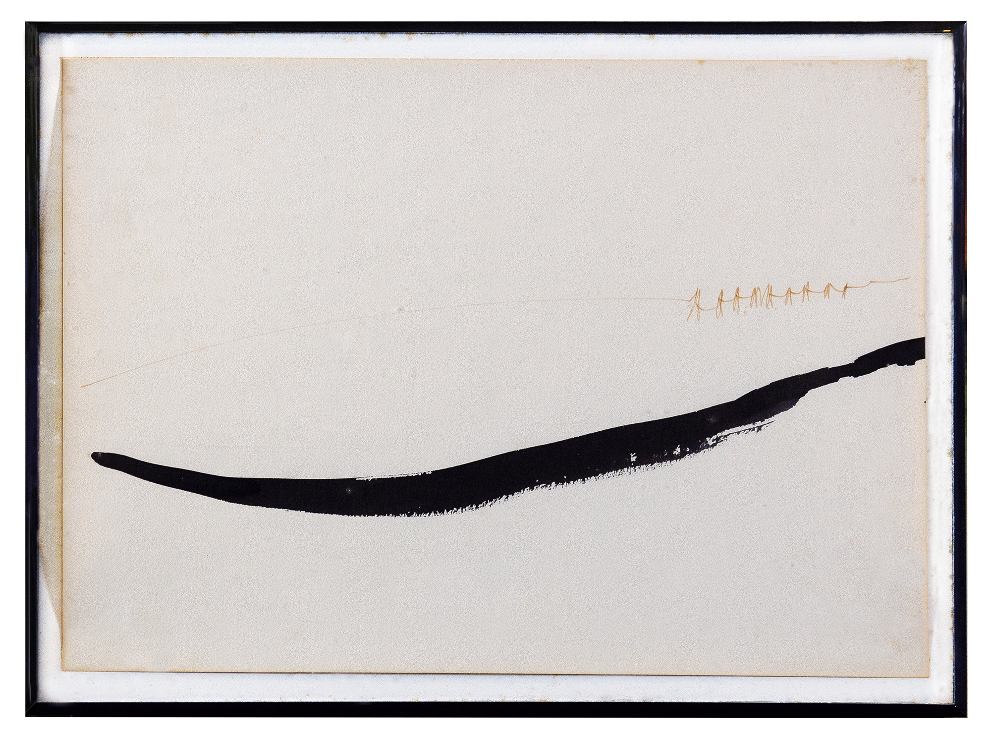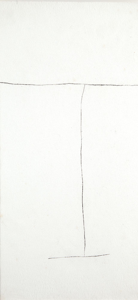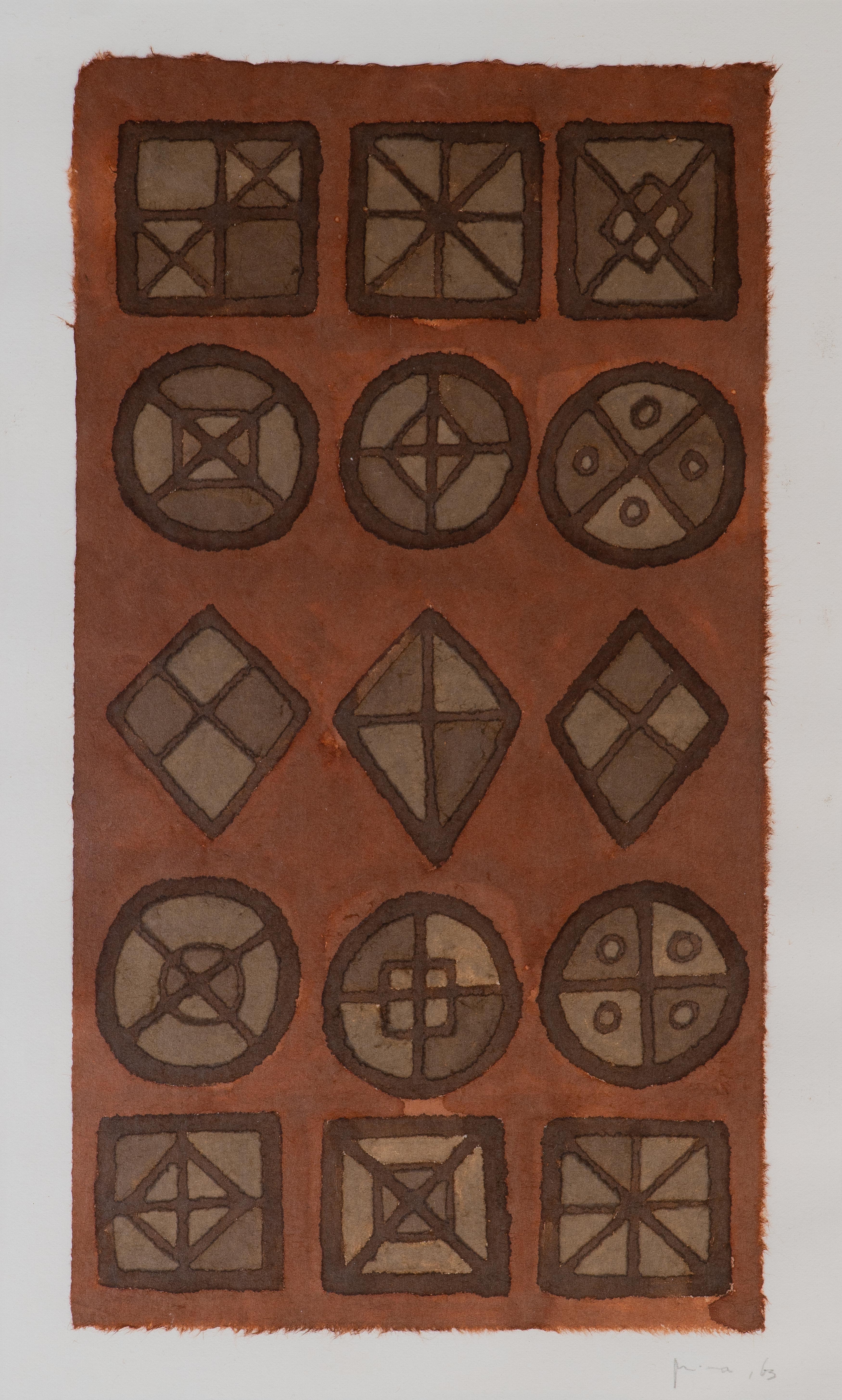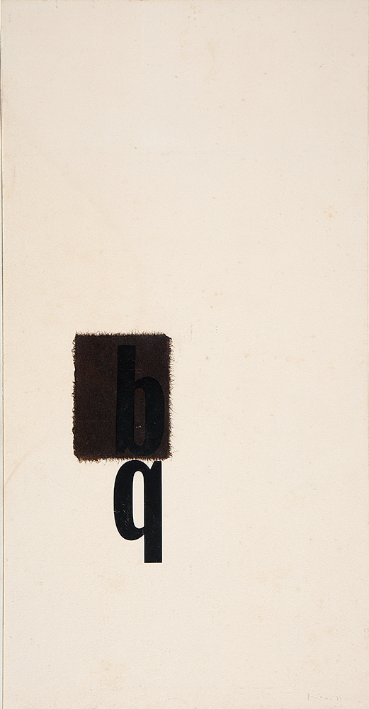 Mira Schendel - Sem título, série Toquinho P - 1972 - Letraset e papel artesanal tingido com ecoline sobre papel - Assinado canto inferior direito - 48 x 24 cm.